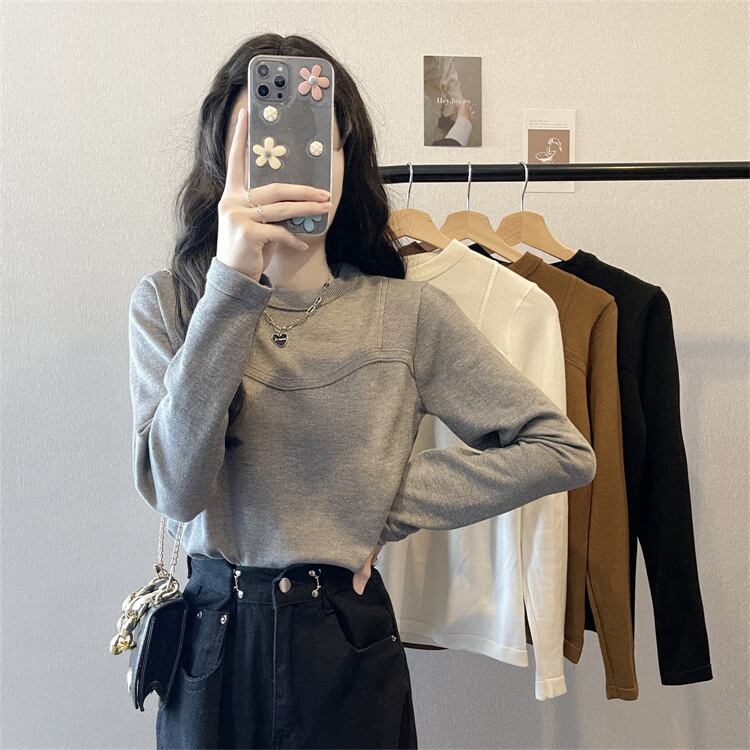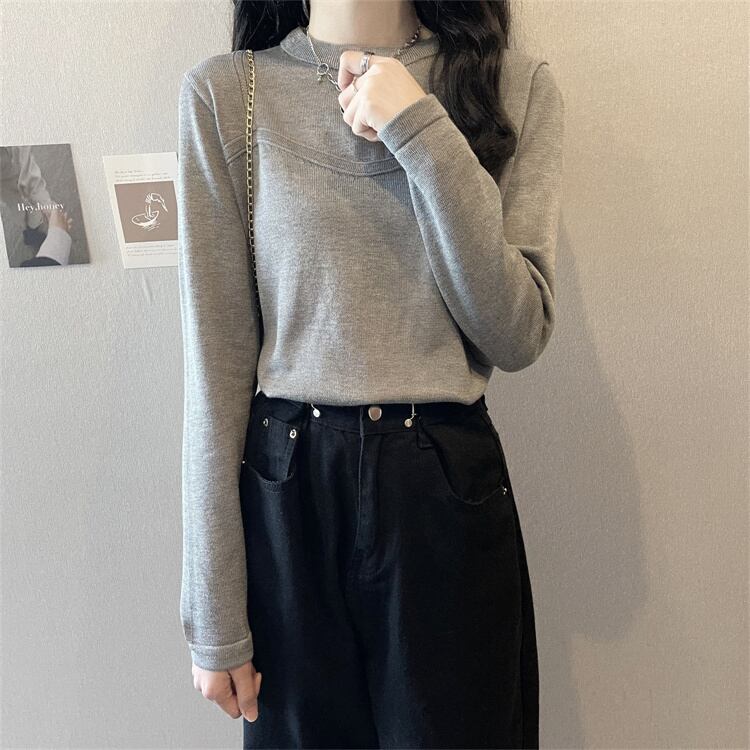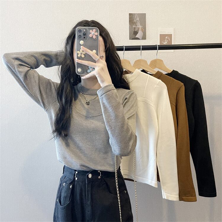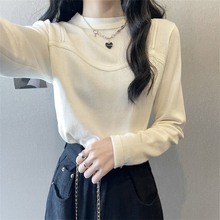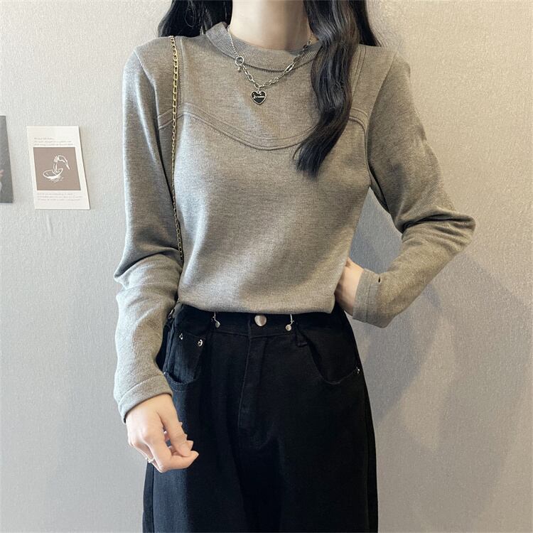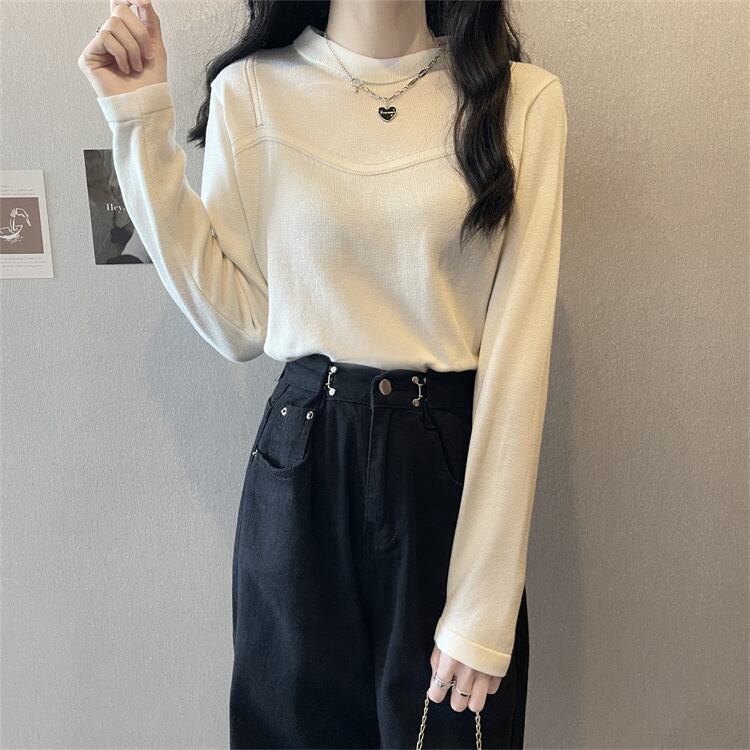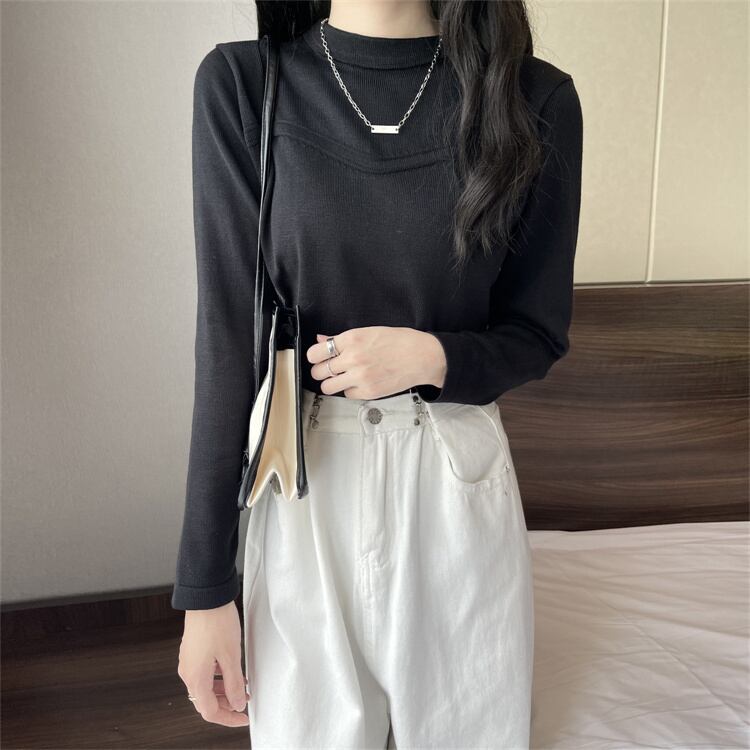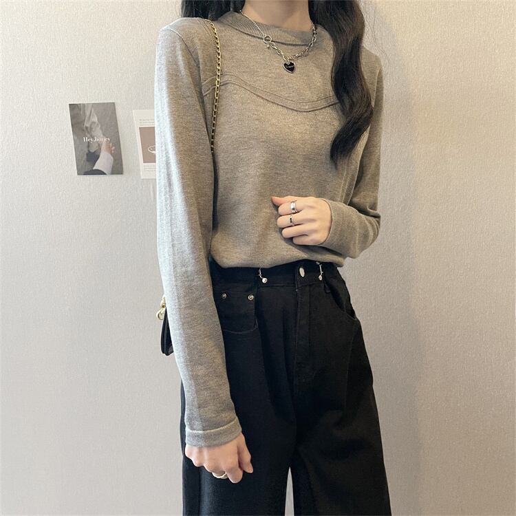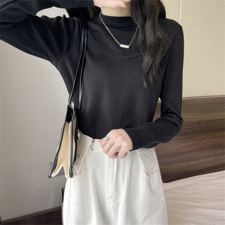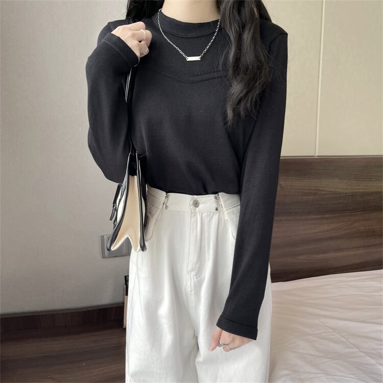 夏のフェイクツーピース長袖フロントショルダーTシャツレディースルーズハイエンドユニークなユニークな美しいトップデザインのニッチ ロング サマー 夏物 7460030376968985 | framboise21