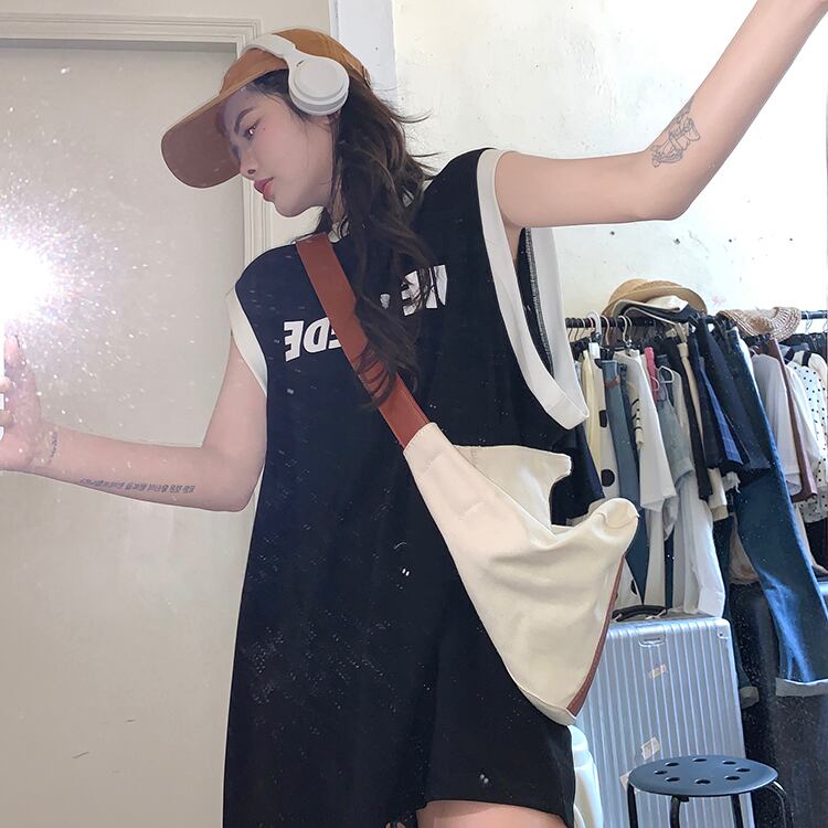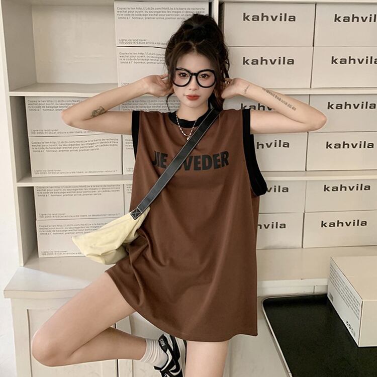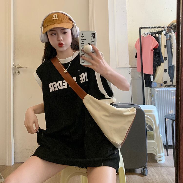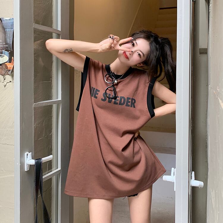アメリカンスタイルの白いスポーツキャミソールのベストの女性の夏のハイエンドのシックな緩いベストノースリーブ t シャツトップ ホワイト サマー 夏物 Tシャツ 7460085225412988 | framboise21