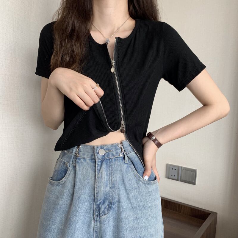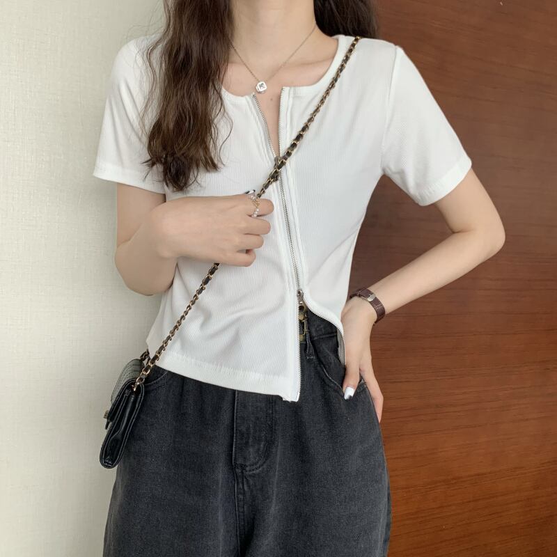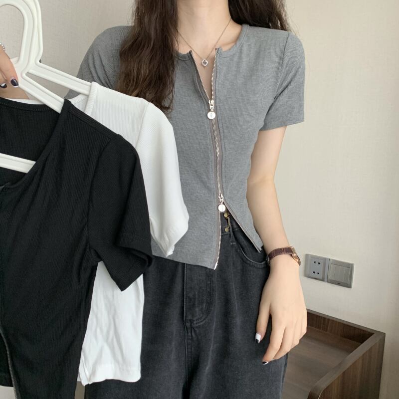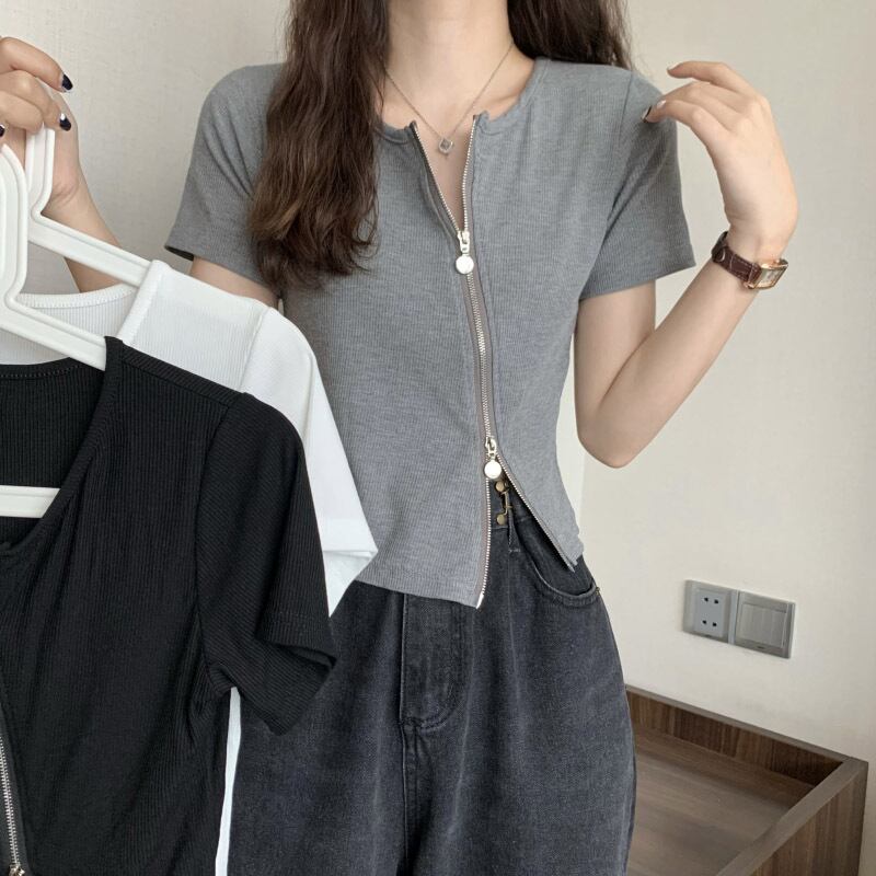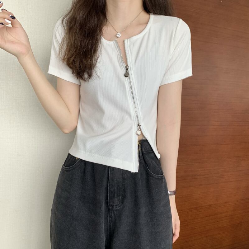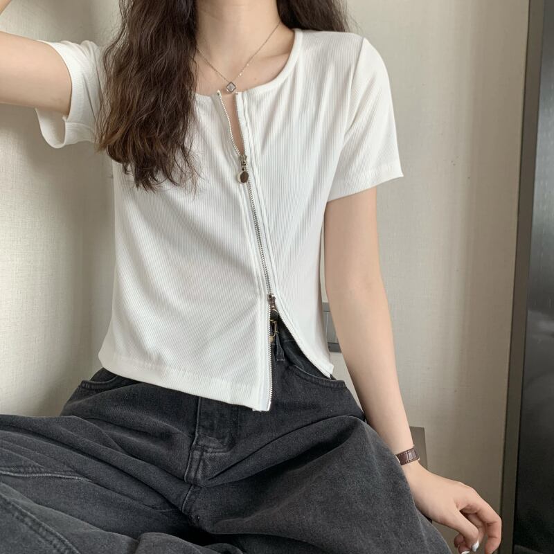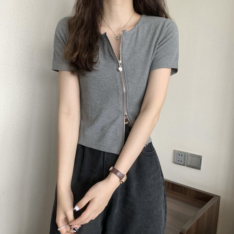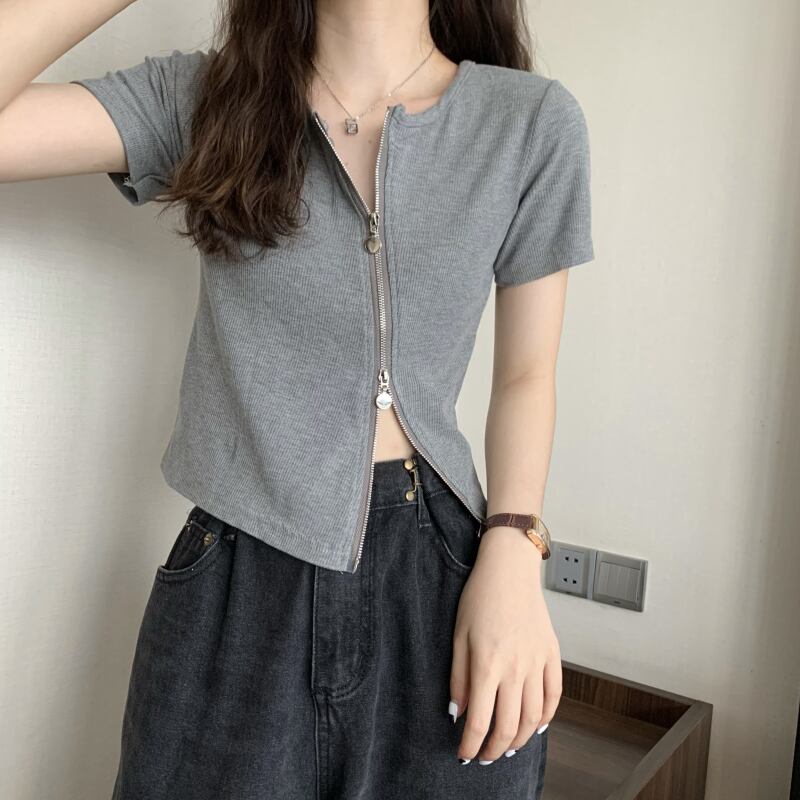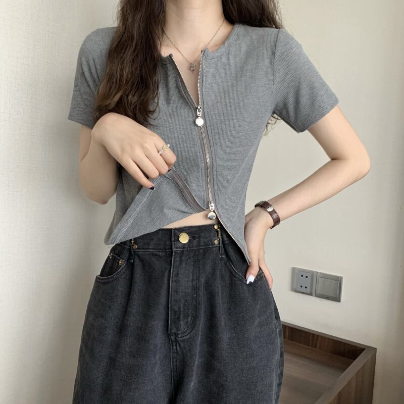 グレーの不規則なアイス シルク半袖 t シャツ女性の夏のスリム フィットと薄い純粋な欲望ショート ショルダー薄いニット トップ サマー 夏物 Tシャツ ピュア 7460049203151209 | framboise21