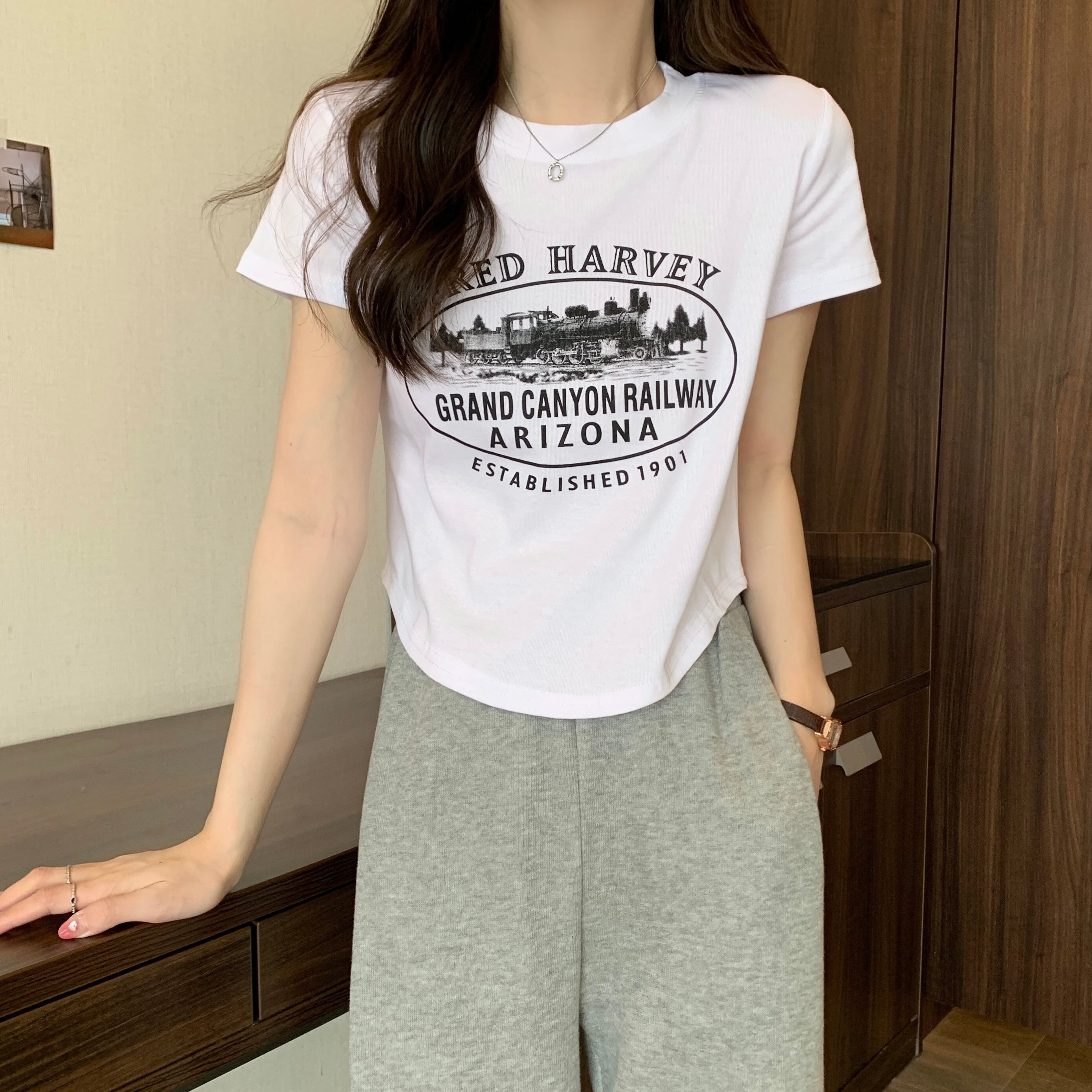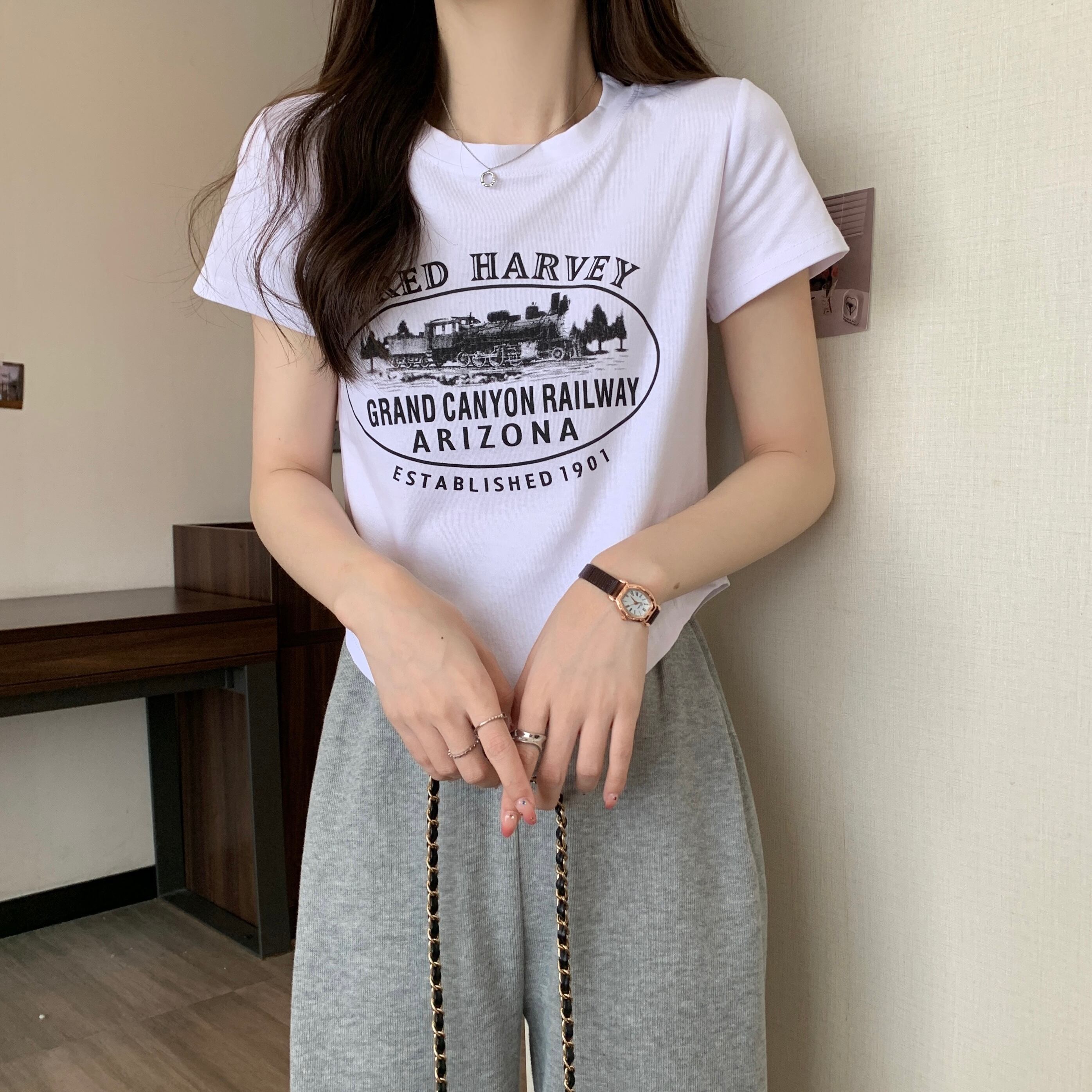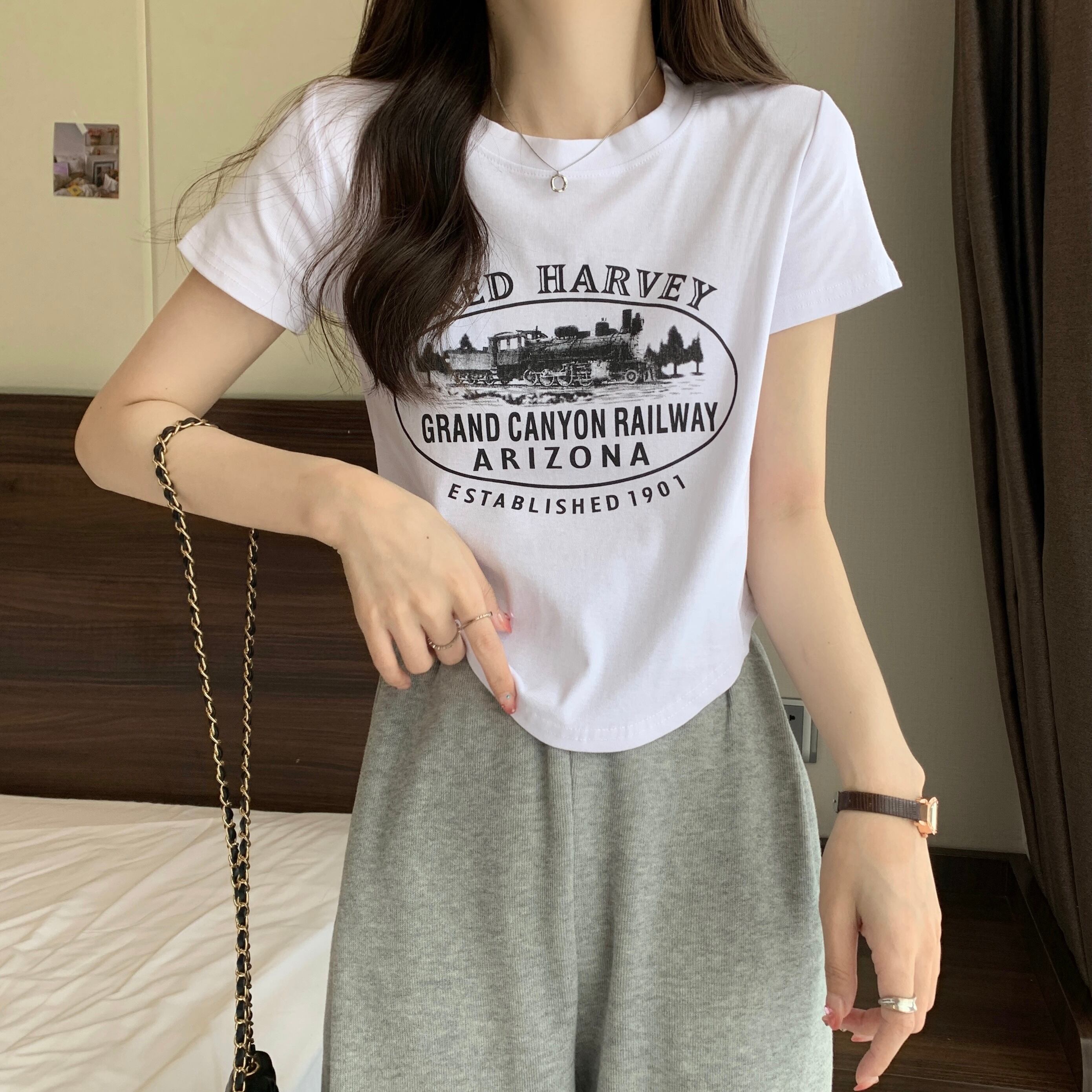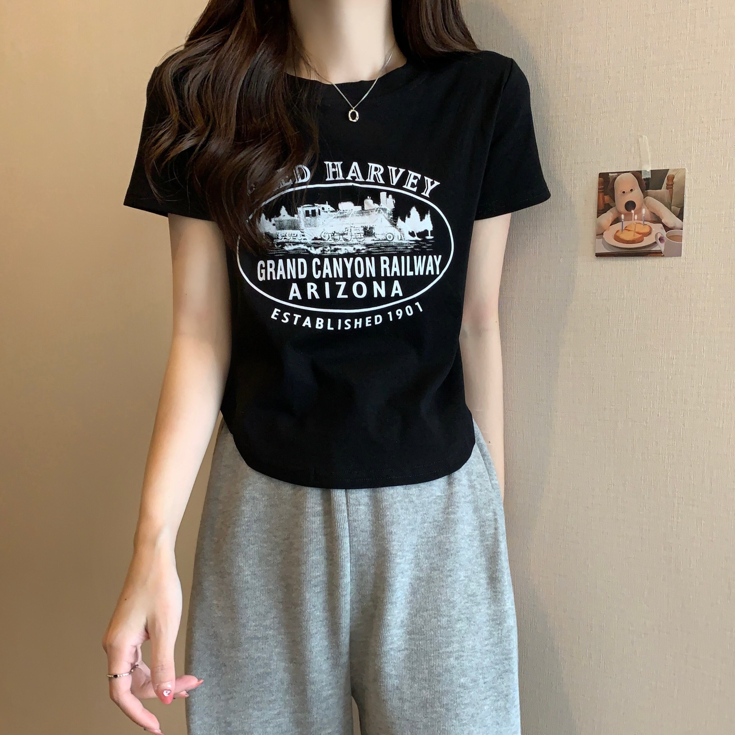半袖Tシャツ レディース 2022年夏 新デザイン ニッチ感 ピュアコットン アインスタイル ショートファッション トップス トレンドイン サマー 夏物 74600489020186 | framboise21
