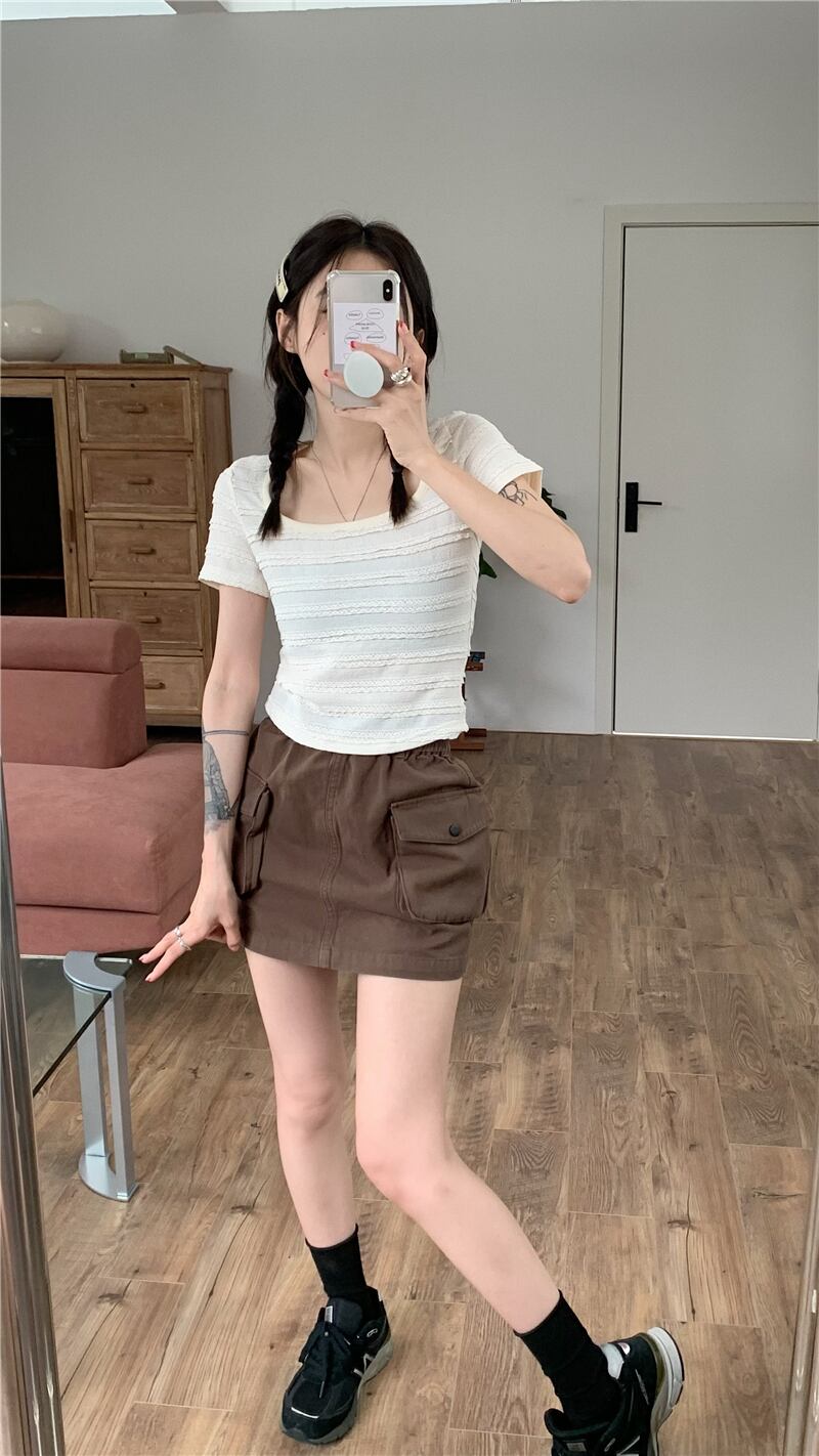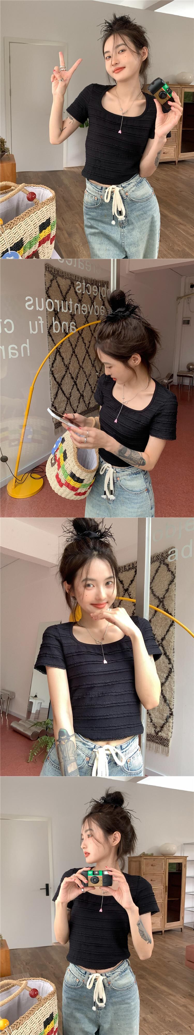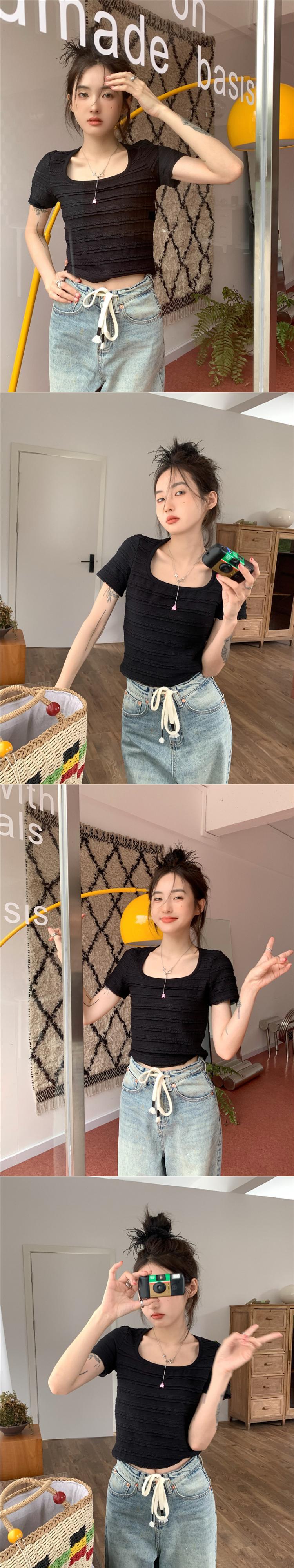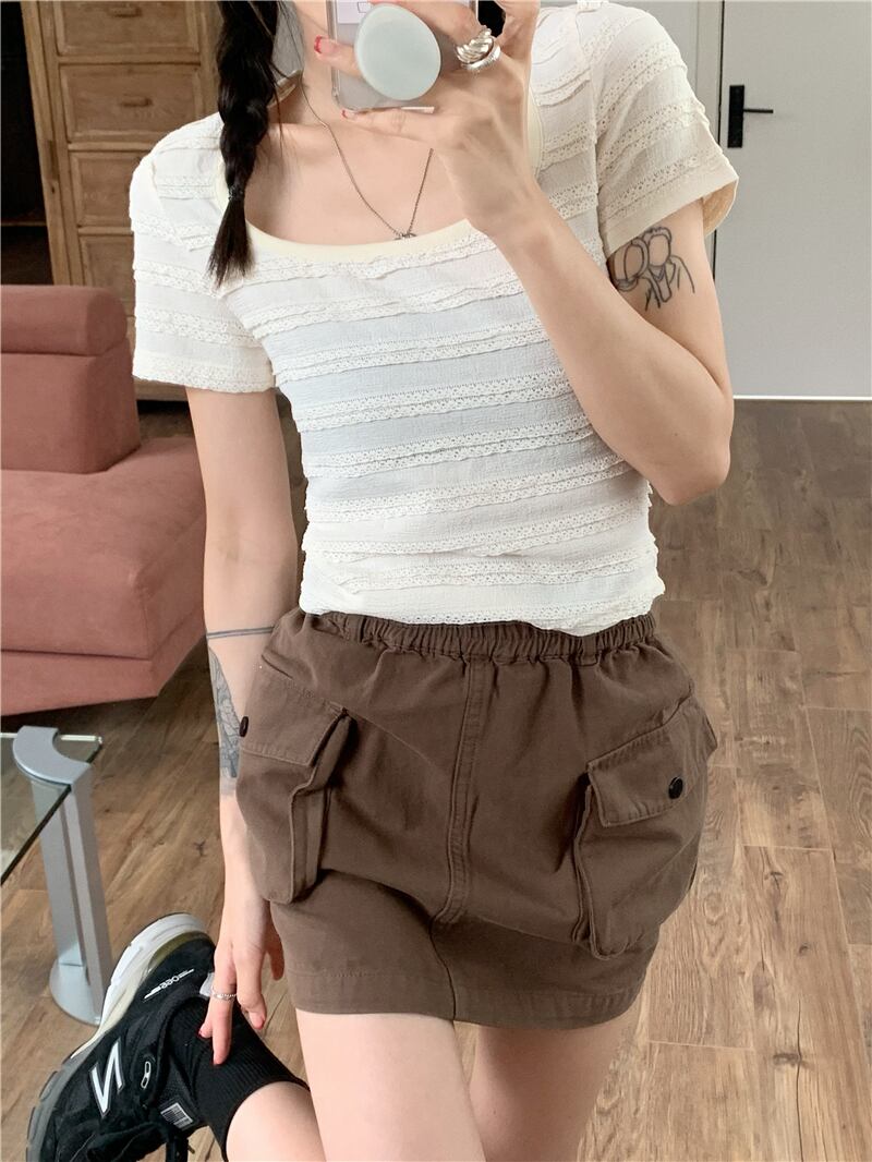 甘風レーススクエアカラー半袖Tシャツレディースサマーデザインセンスニッチ気質スリムショートトップ女性 大人ガーリー スウィート キュート カジュアル 夏物 スクウェア 7460079991427868 | framboise21