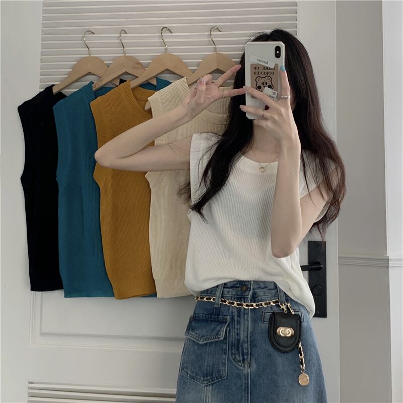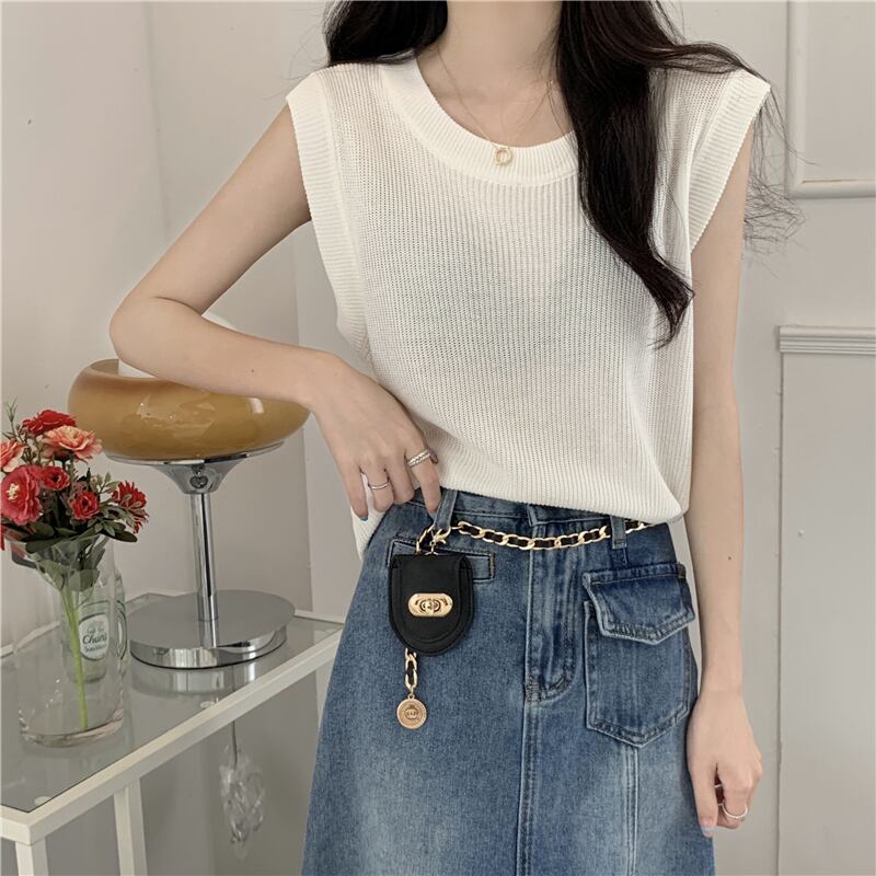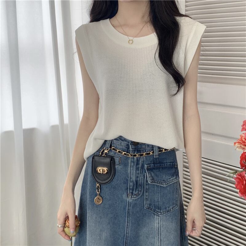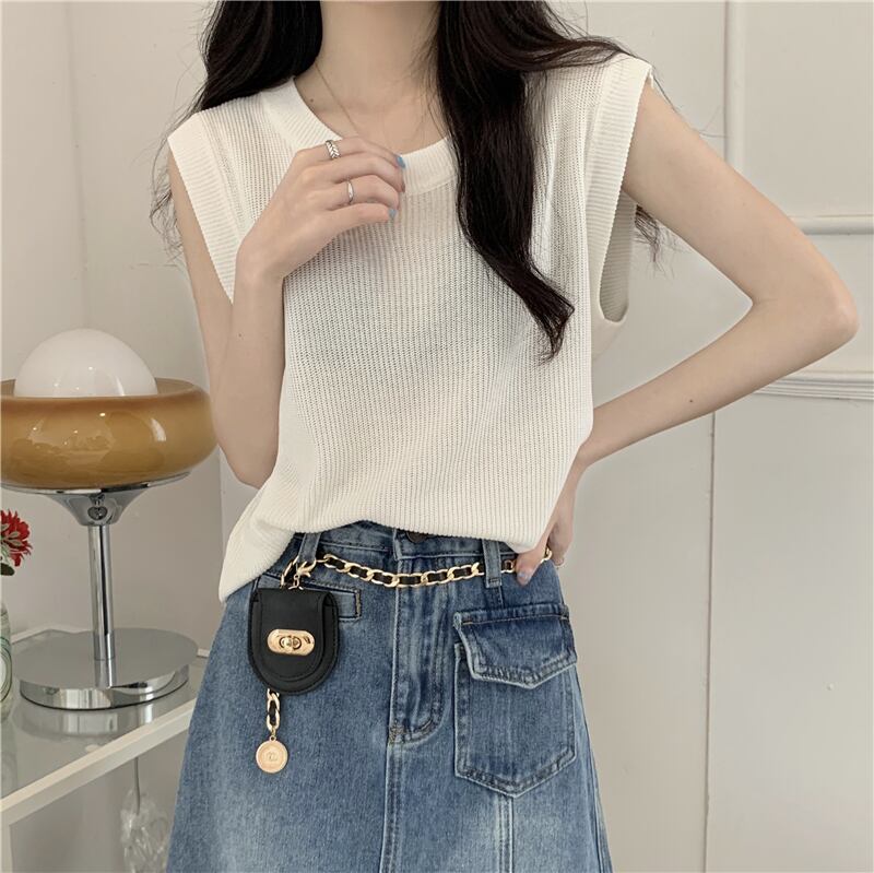 フレンチ スモール フレグランス ノースリーブ ニット セーター ベスト レディース トップス レディース 夏 アウター アウター スリング ゆったり インナー ボトムス サマー 夏物 7460012594023410 | framboise21