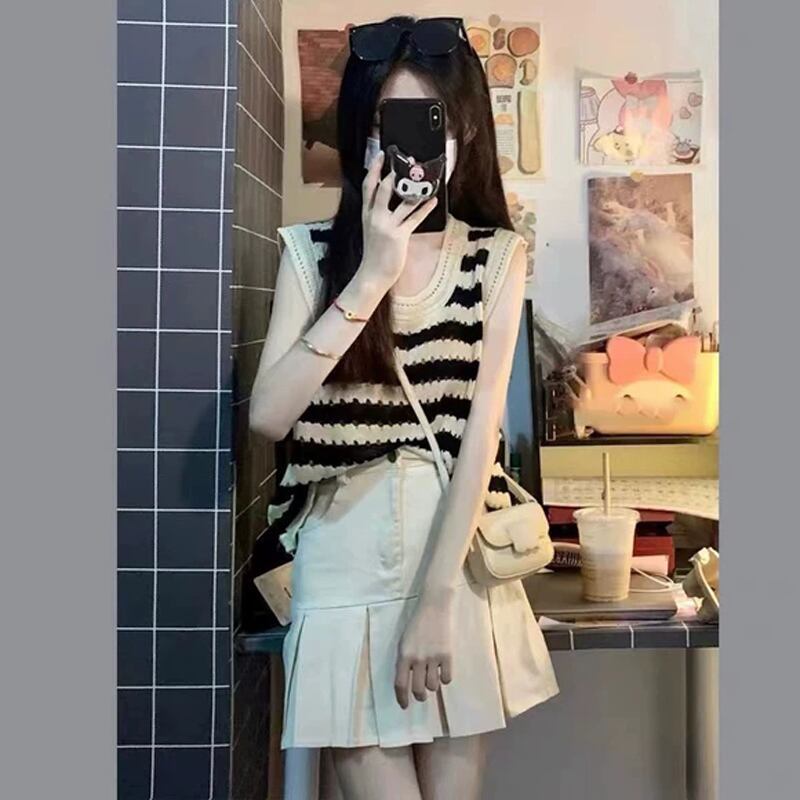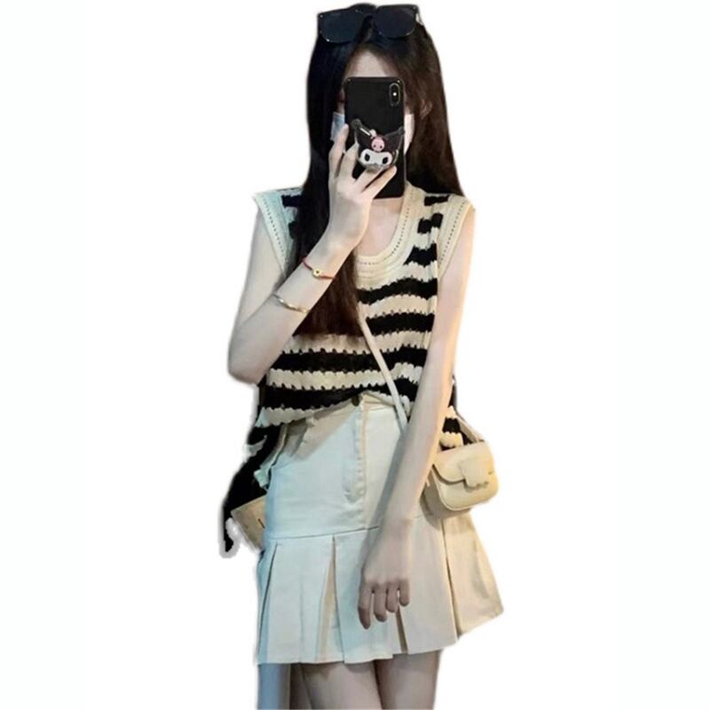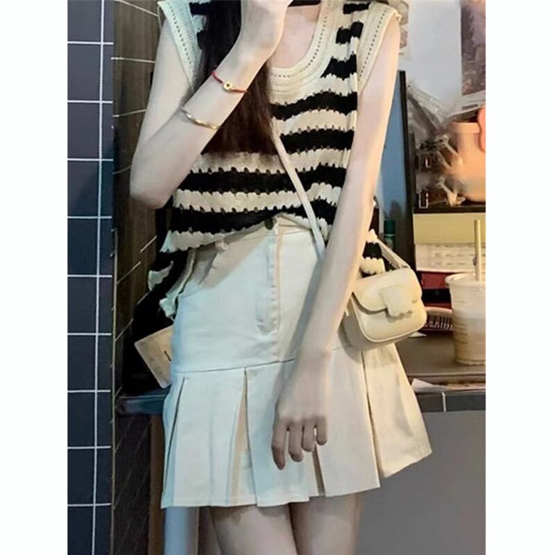 ストライプ ベスト、プリーツ スカート、ツーピース スーツ、香港スタイル、小さい、eign、年齢を減らす、揚げ物、ストリート ソルト、ウェア、スーツ、スカート、夏 サマー 夏物 746007056854090 | framboise21