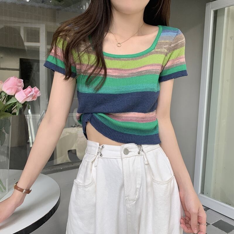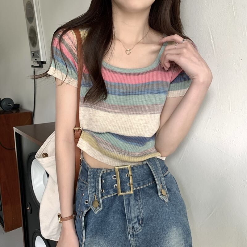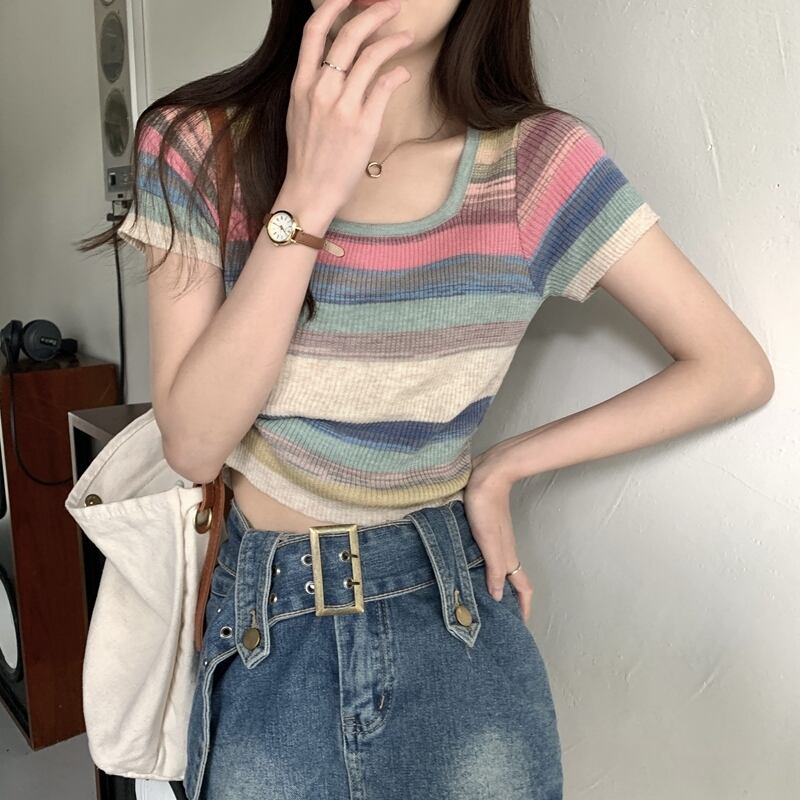 ショートトップス 個性的なレディース半袖Tシャツ デザインセンスのあるニッチなフロントショルダー 甘くてスパイシーな2022年新作サマーインタイド 大人ガーリー スウィート キュート カジュアル 夏物 7460028107251494 | framboise21