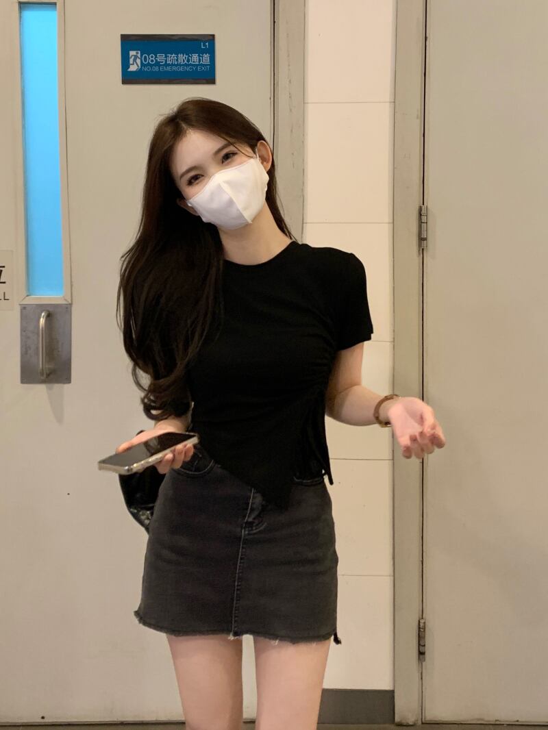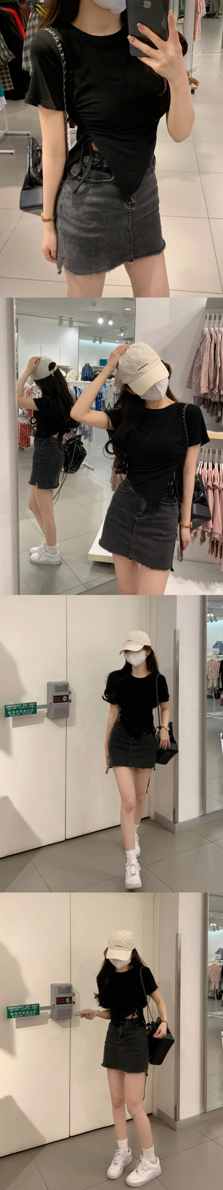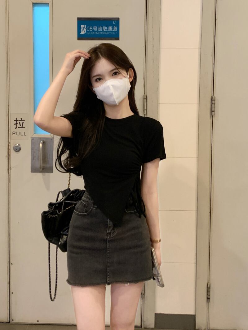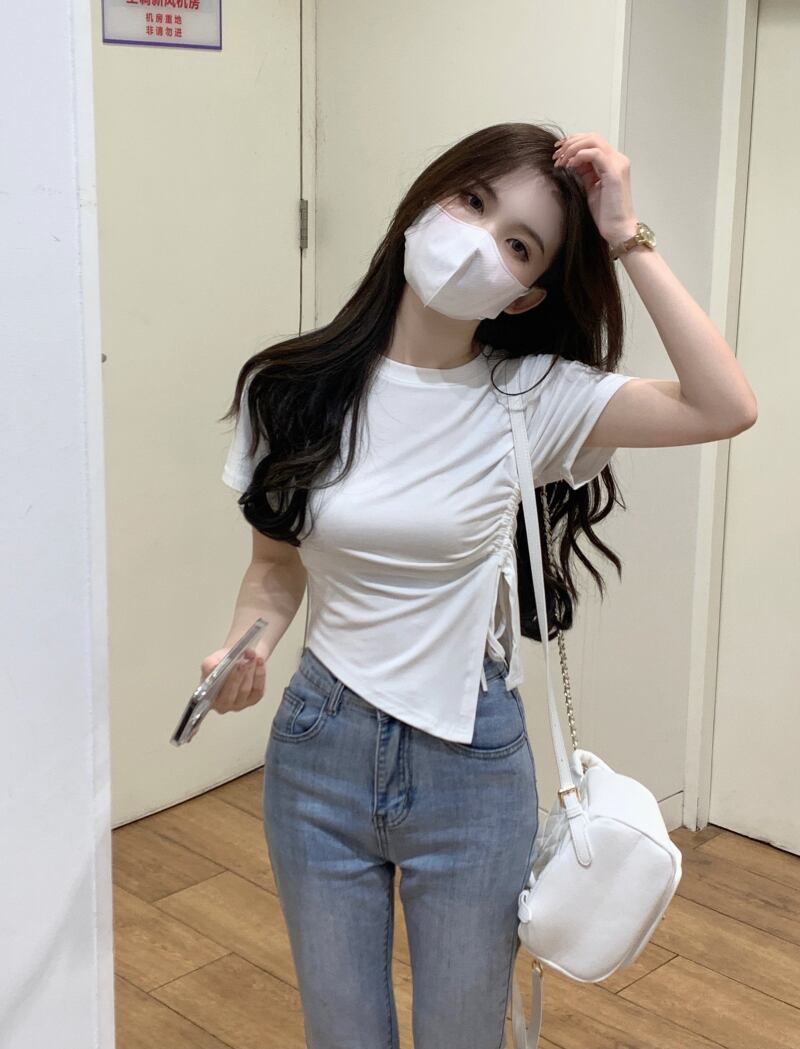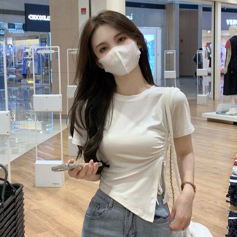 センス ニッチ ドローストリング ショート tシャツ レディース 夏 半袖 イン トレンド スリム フィット 薄い イレギュラー スリット ハイウエスト トップス サマー 夏物 7460010175689127 | framboise21