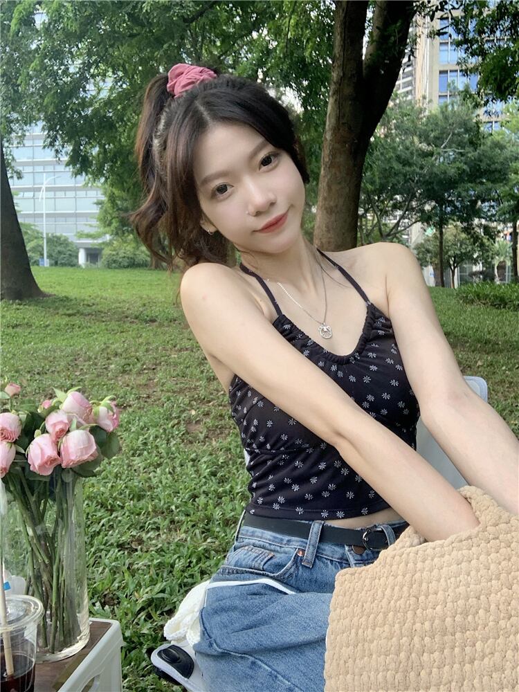 センス 花柄 ホルターネック 小さめ キャミソール レディース インナー 夏 純情風 自己修養 アウター 半袖 ノースリーブ トップス ショート ハーフスリーブ サマー 夏物 ピュア 7460059170510715 | framboise21