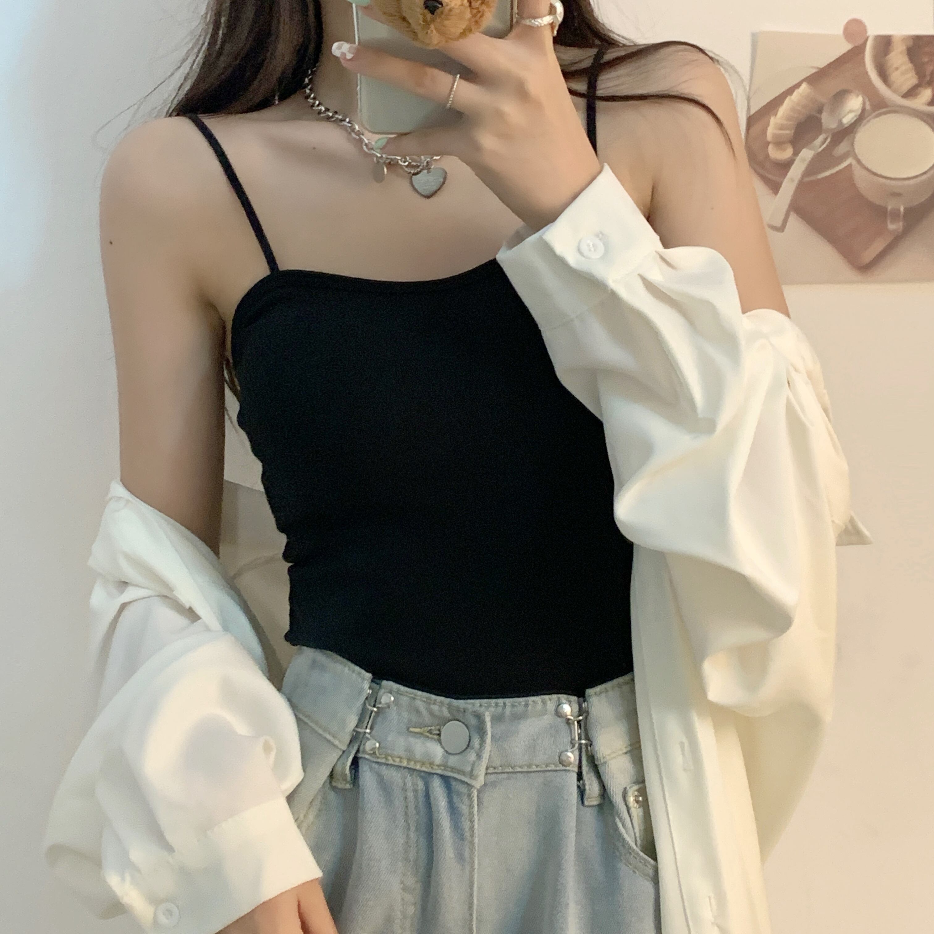白綿美バック下着 レディース 夏アウター キャミソール チェストパッド付き ショートチューブトップ ボトムス 上着 ホワイト コットン サマー 夏物 7460048371615183 | framboise21