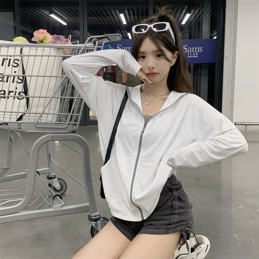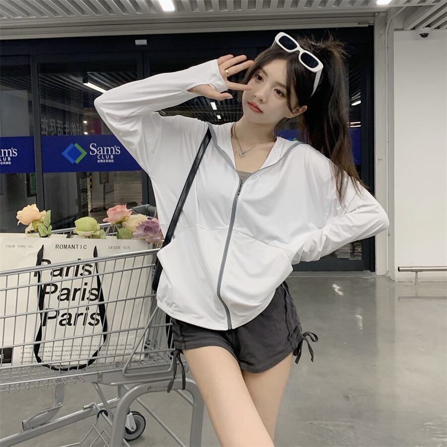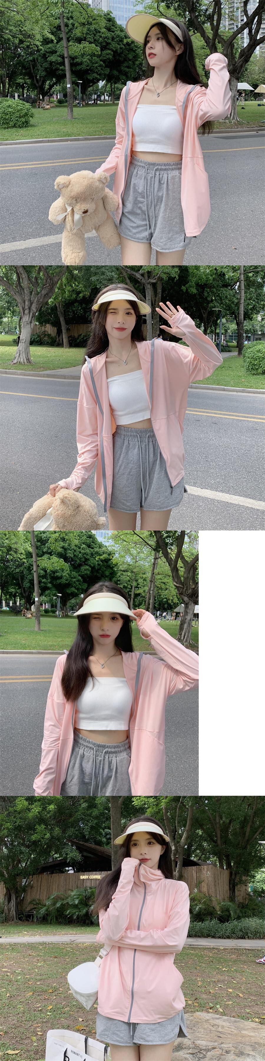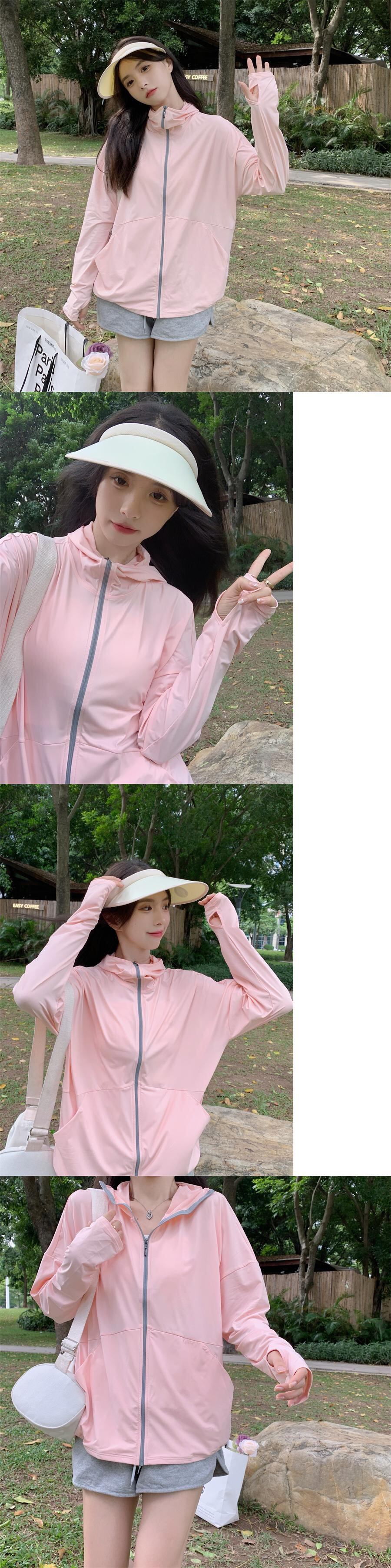 アイスシルク 日焼け止め レディース 夏 薄手 UVカット 通気性 ゆったり カジュアル オールマッチ フード付き ピンク カーディガン ジャケット サマー 夏物 7460062351124535 | framboise21