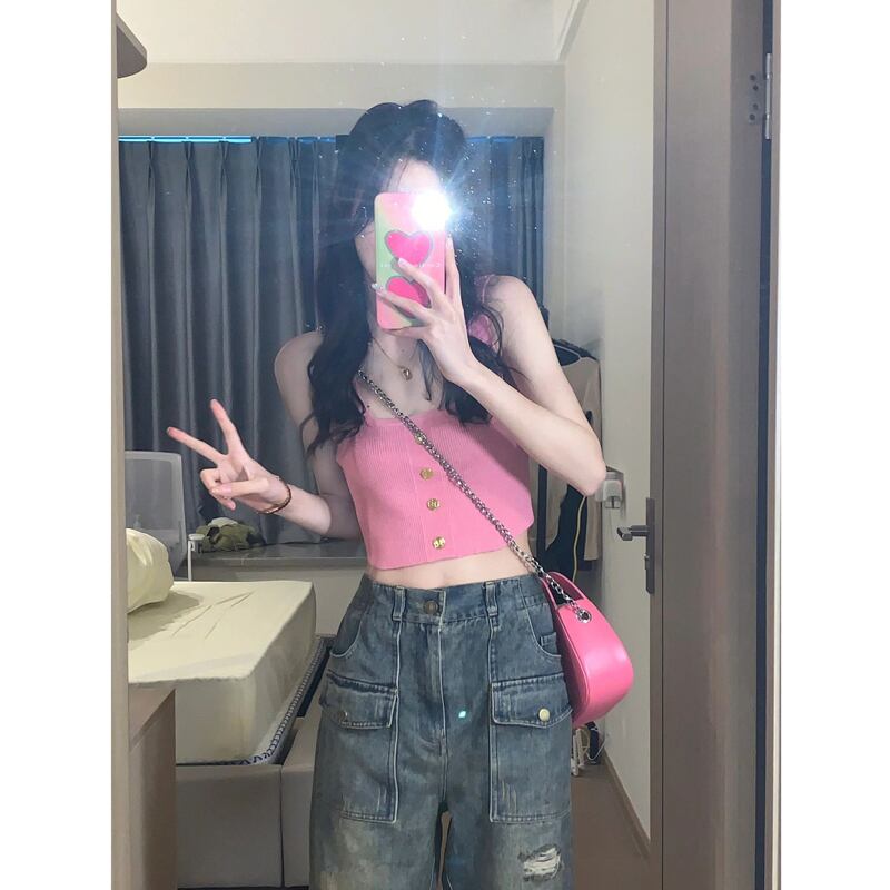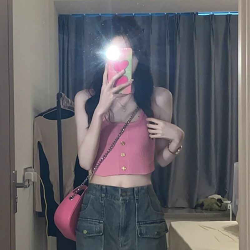 ピンクの夏の甘い小さなキャミソール女性の夏のデザイン感覚のニッチな外着はインスーパートップと一緒に着ます 大人ガーリー スウィート キュート カジュアル サマー 夏物 7460030943111893 | framboise21