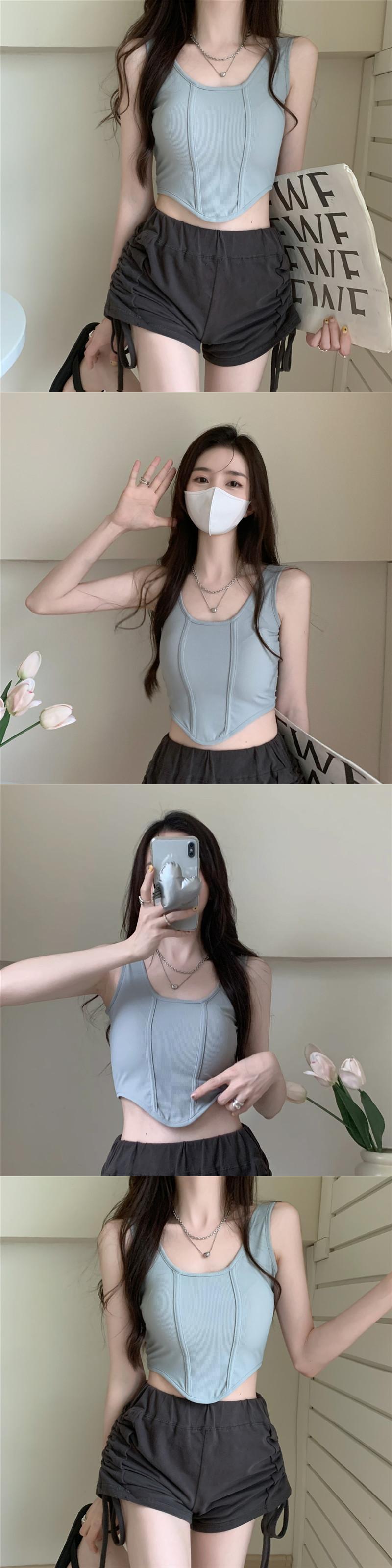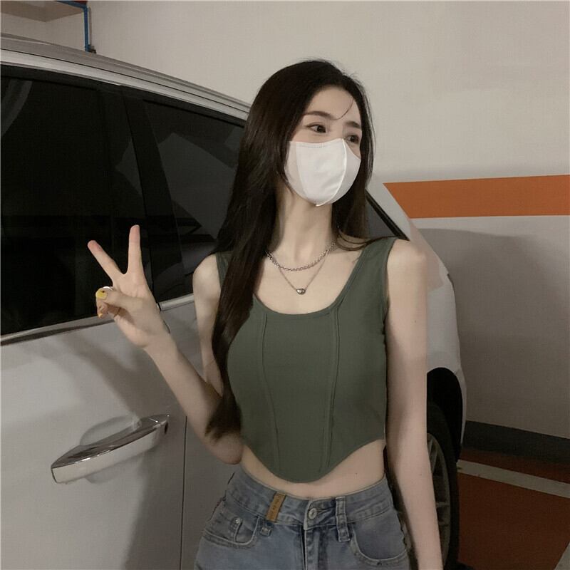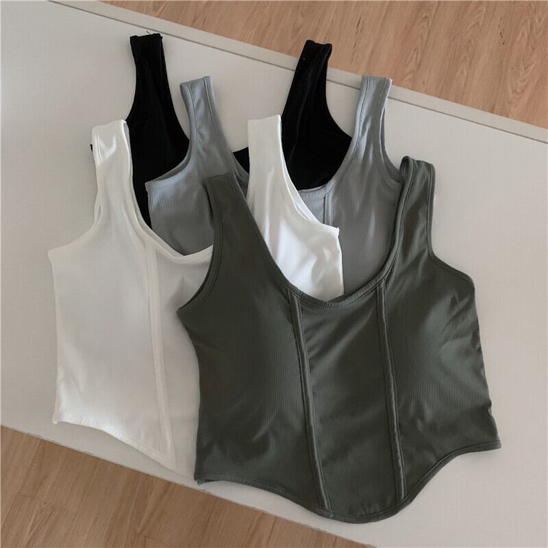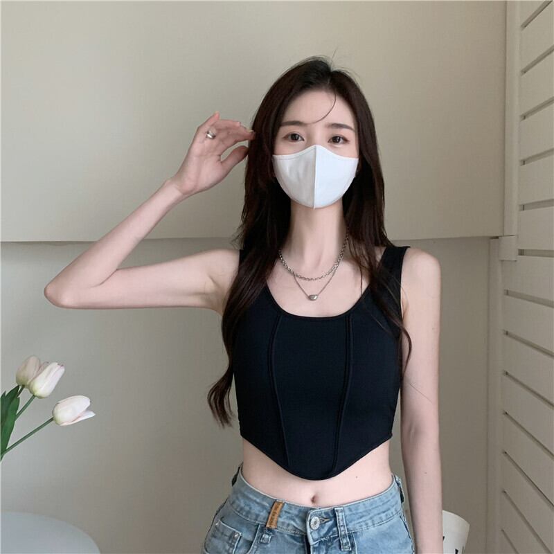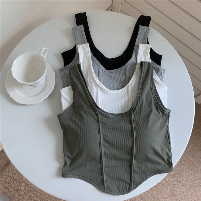 無地ベスト チェストパッド付き スリング 女性 夏 アウター デザインイレギュラー bm 薄手 フィッシュボーン トップス インナー サマー 夏物 ソリッドカラー 7460025875128064 | framboise21