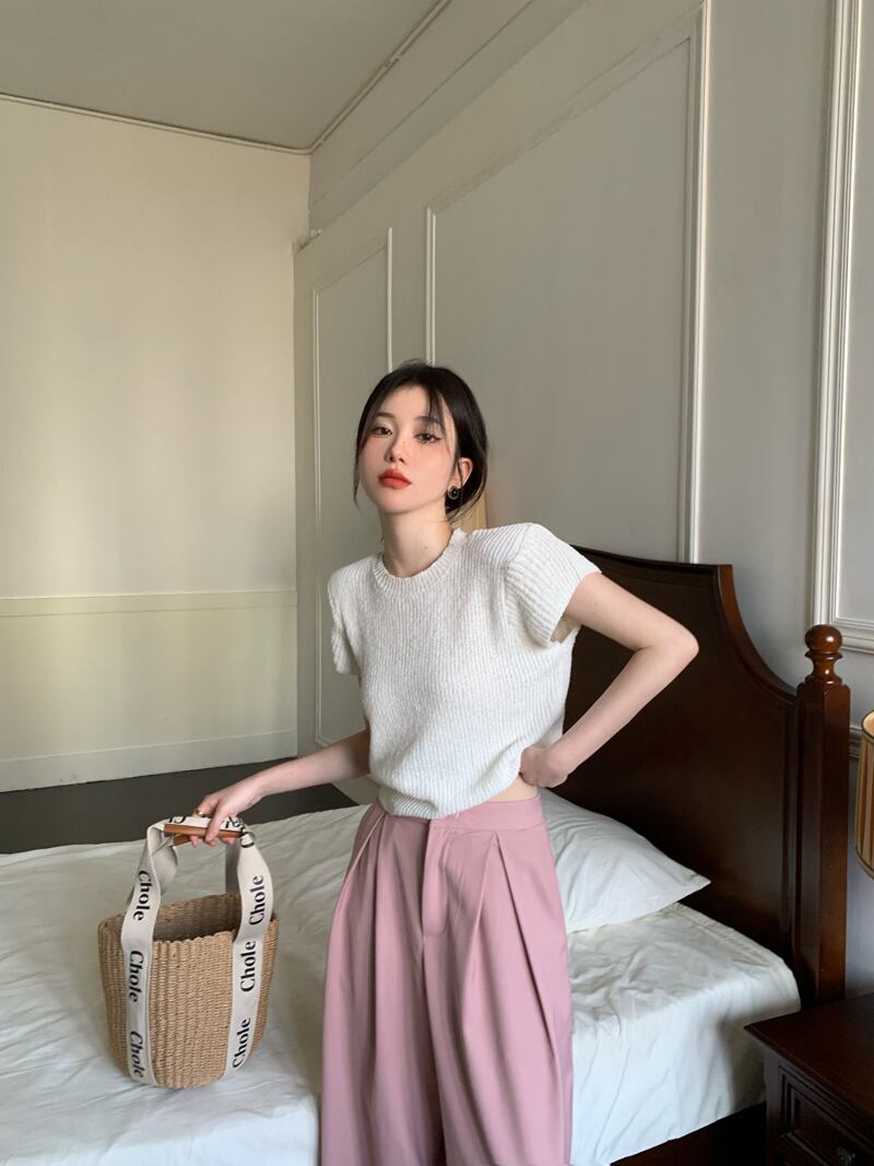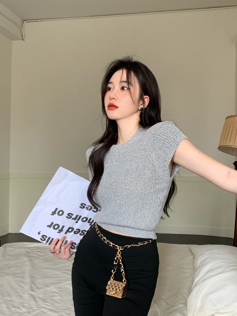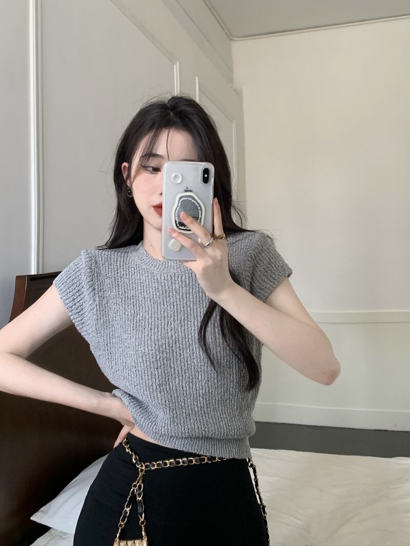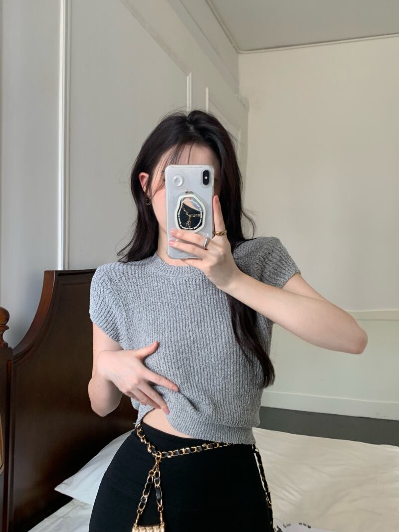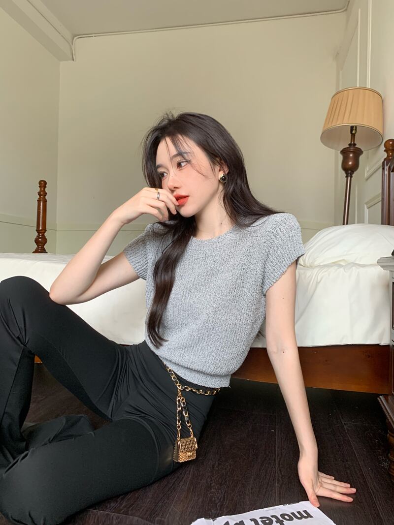 グレー スリム フィット 薄い ニット セーター 2022 新しい 半袖 tシャツ レディース サマー ショート オールマッチ スモール フライング スリーブ トップ ホワイト 夏物 7460036709425191 | framboise21
