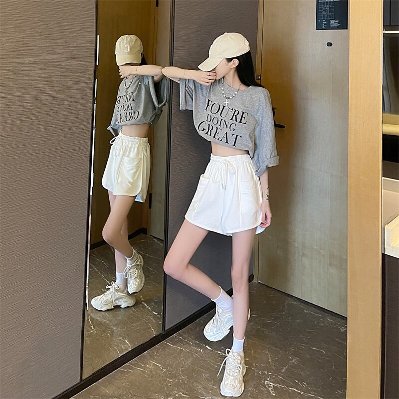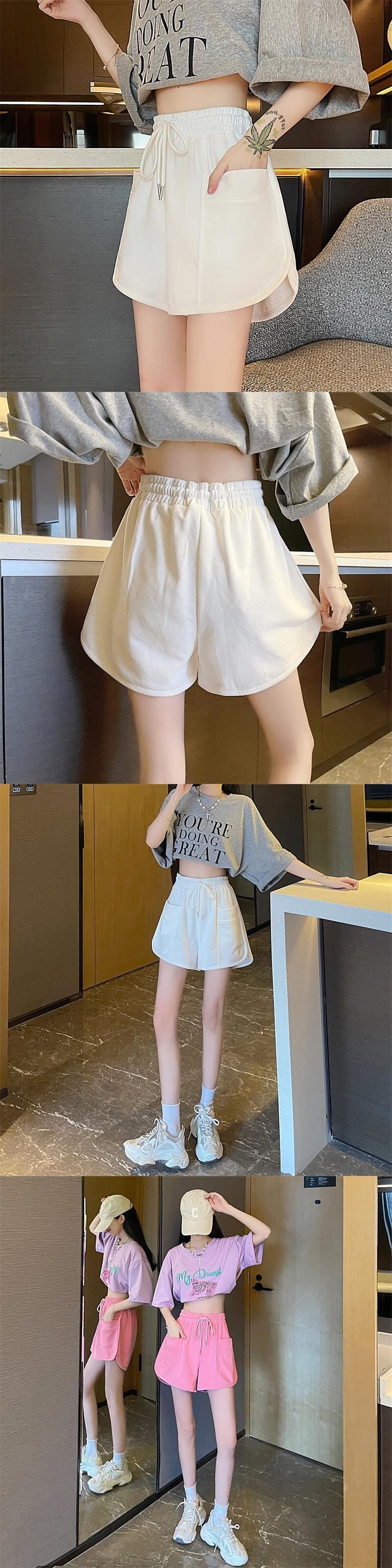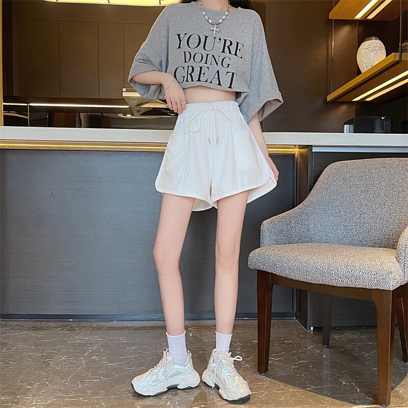 ホワイト スポーツショーツ レディース 夏 ホームカジュアル パジャマ ハイウエスト Aライン ワイドレッグ 薄手 パンツ ヨーロピアン雑貨 夏 巾着 ハイウェスト サマー 夏物 ブルマー 7460091683634820 | framboise21