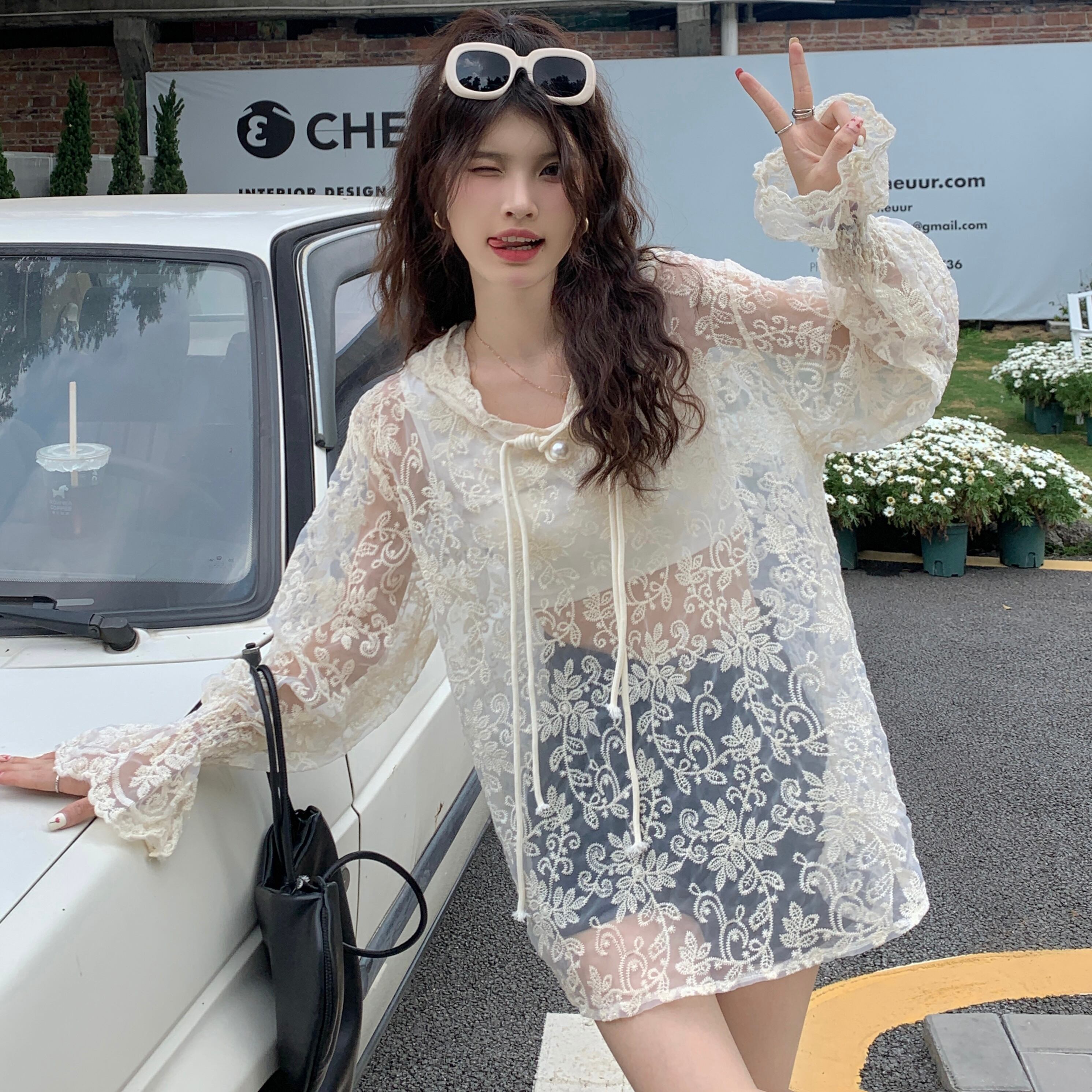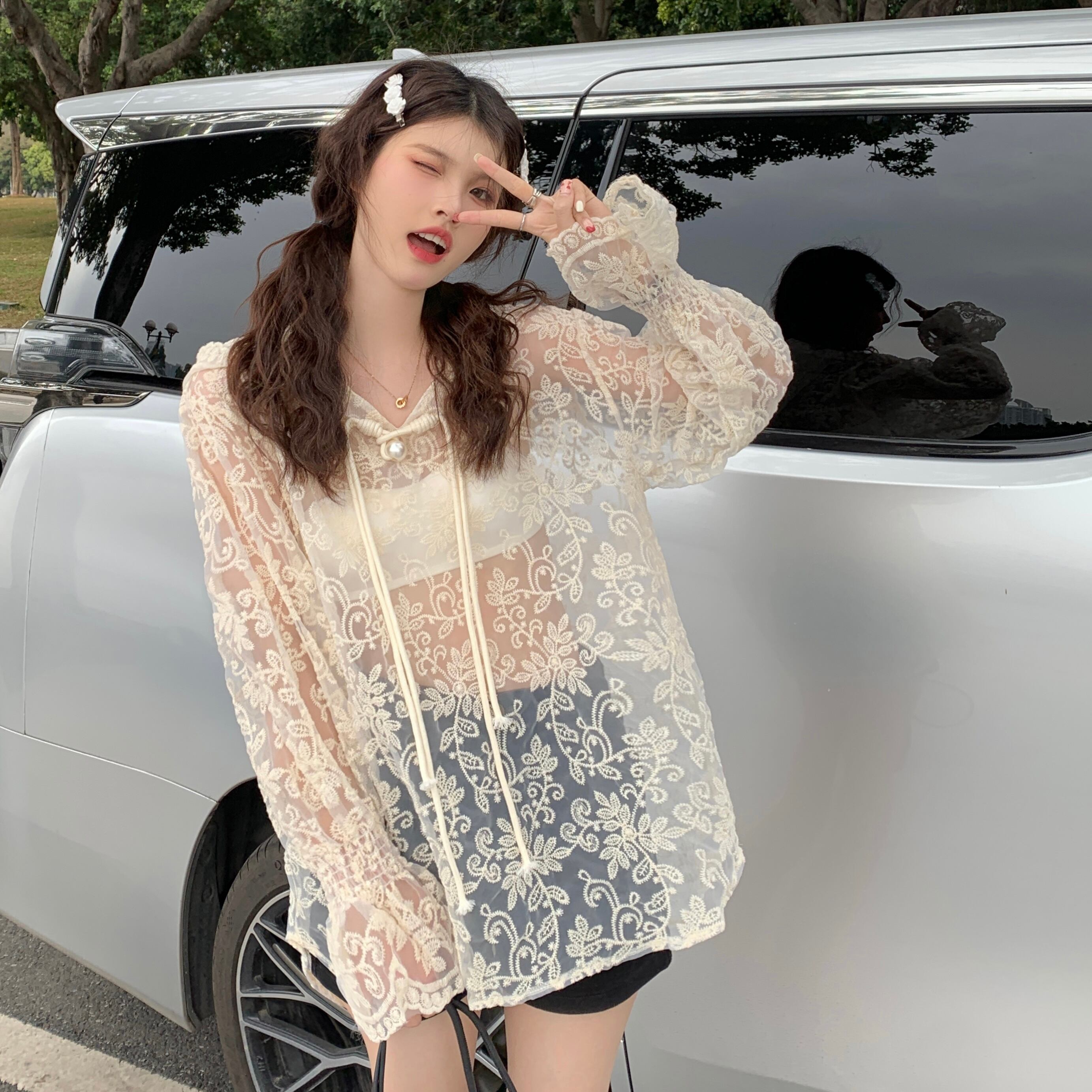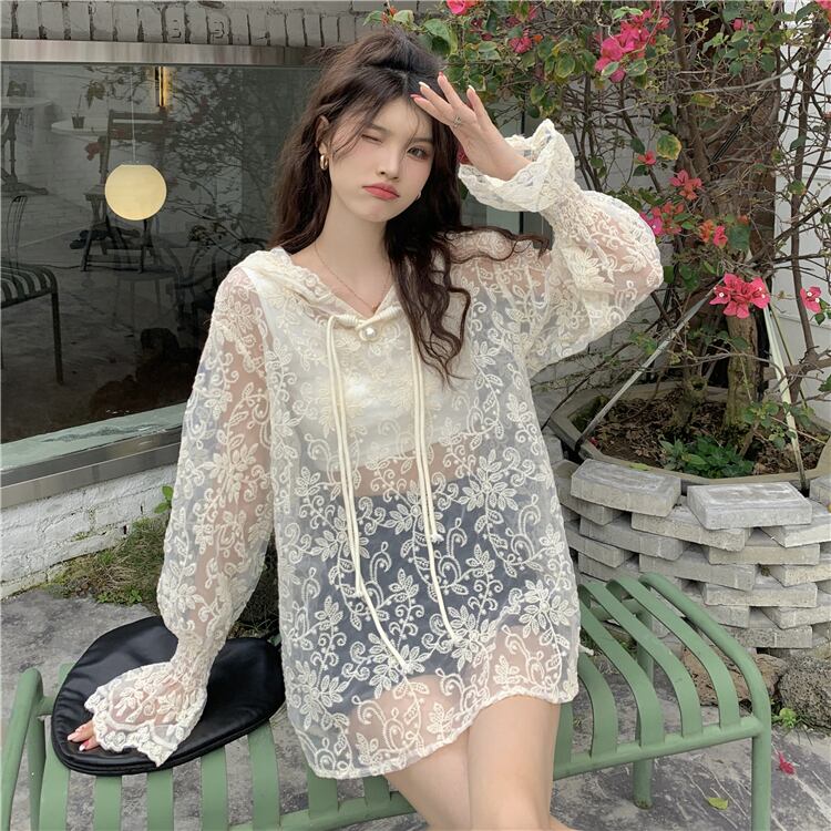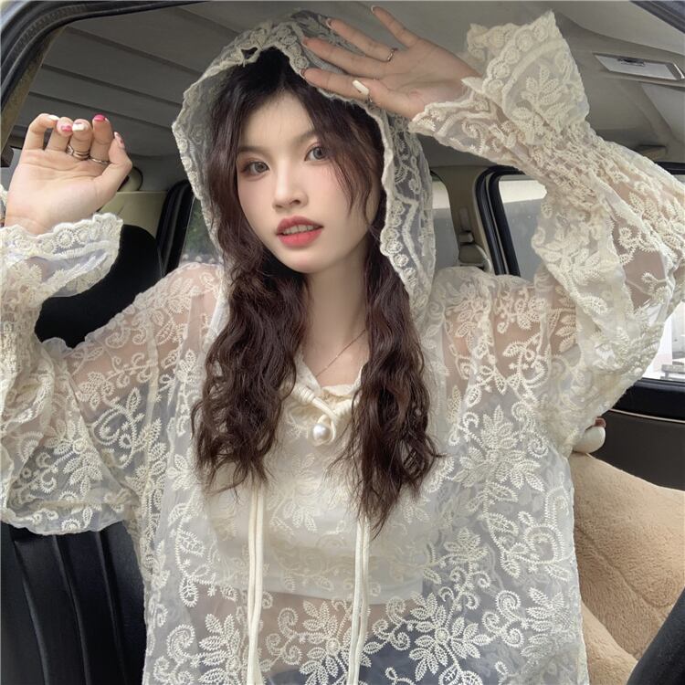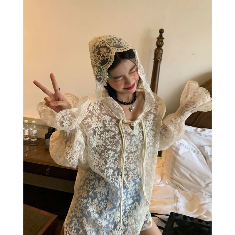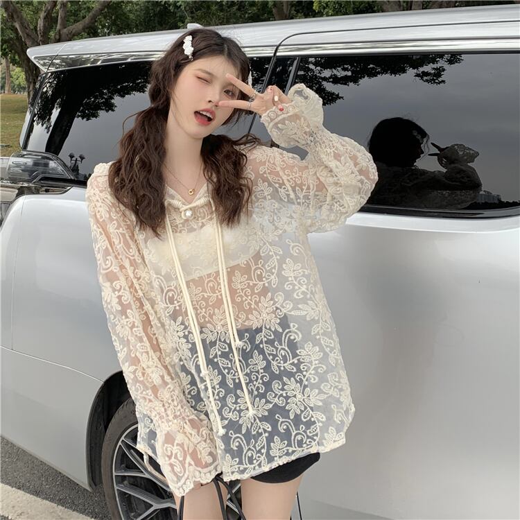 レース フード付き 日焼け止め シャツ レディース 夏 洋風 デザイン ゆったり 薄手 薄手 透け ホック 花 外側 シフォン トップス トレンド サマー 夏物 フラワーデザイン 7460087427364747 | framboise21