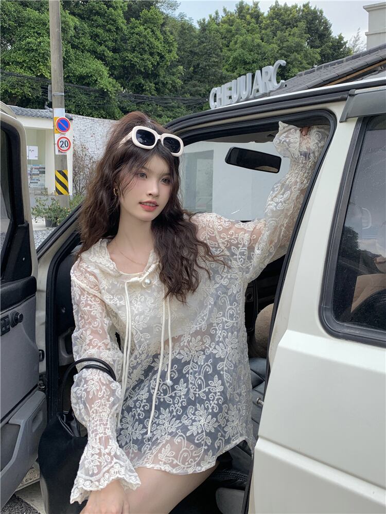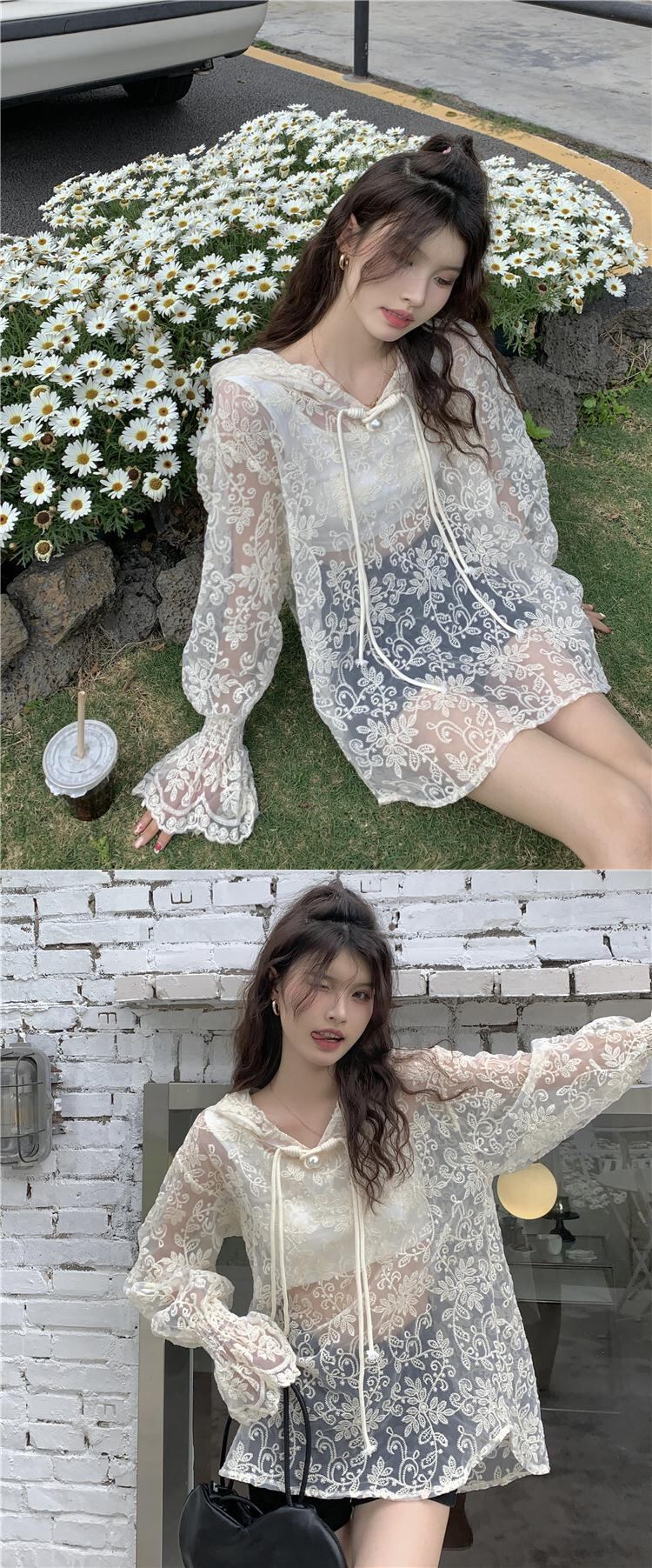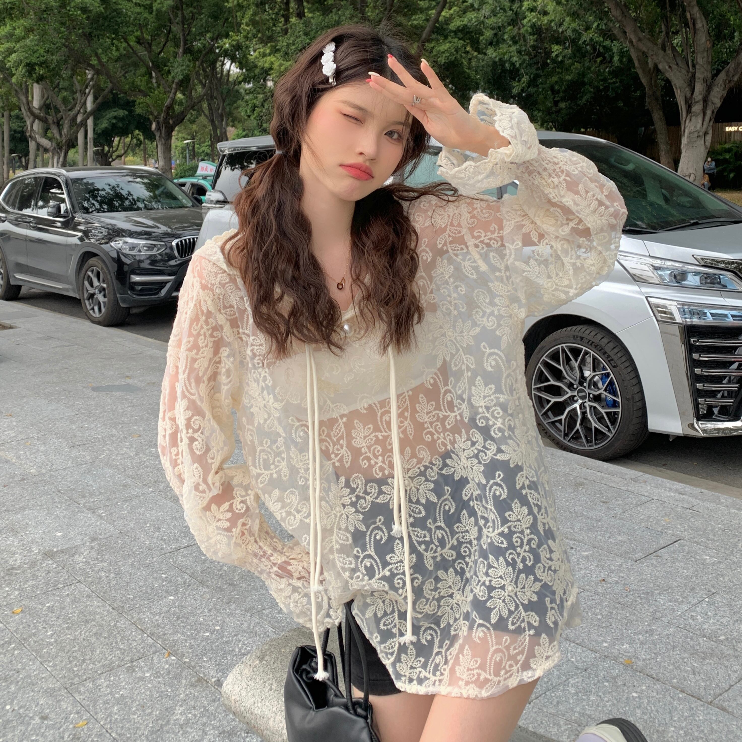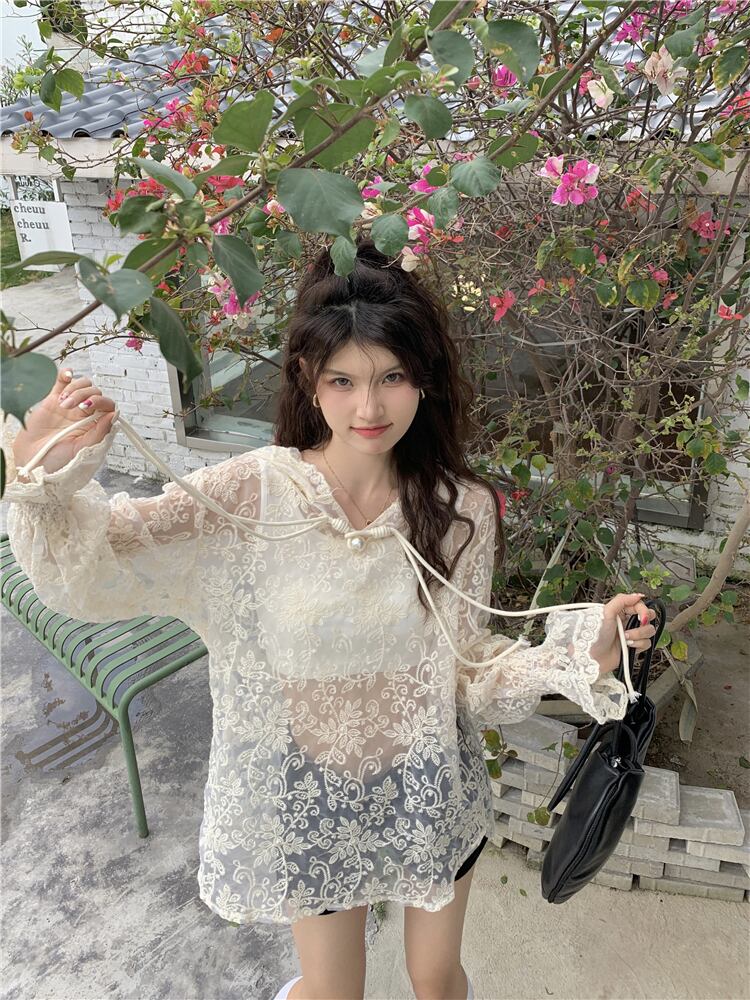 レース フード付き 日焼け止め シャツ レディース 夏 洋風 デザイン ゆったり 薄手 薄手 透け ホック 花 外側 シフォン トップス トレンド サマー 夏物 フラワーデザイン 7460087427364747 | framboise21