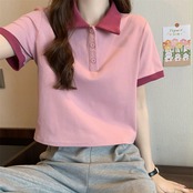ポロシャツ 襟 半袖 tシャツ レディース 夏 デザイン センス 小さめ 小男 肩幅 ゆったり 薄手 ハイウエスト ショート トップス ハイウェスト サマー 夏物 7460031382499072