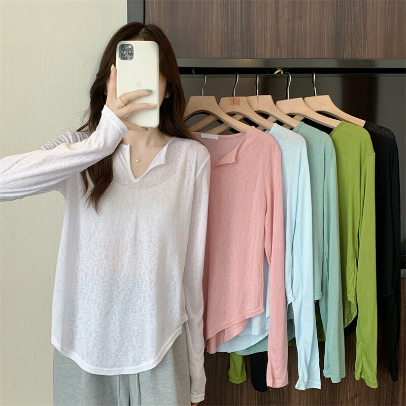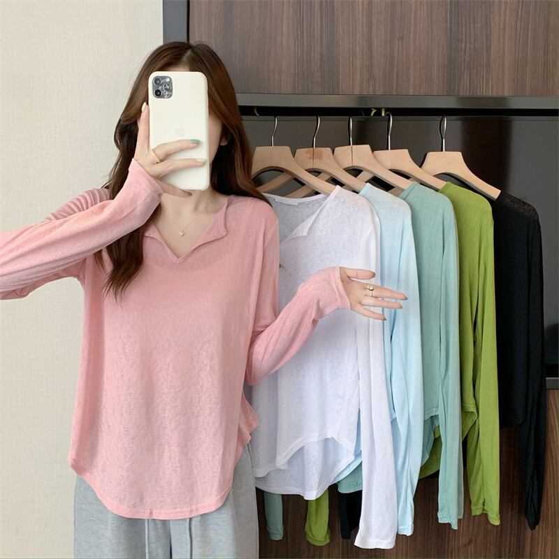 グリーン 長袖 tシャツ レディース 夏風 ゆったり アウター 薄手 ゆったり風 アイスシルク ニット 日焼け止め ブラウス トップス ロング サマー 夏物 7460042648867274 | framboise21