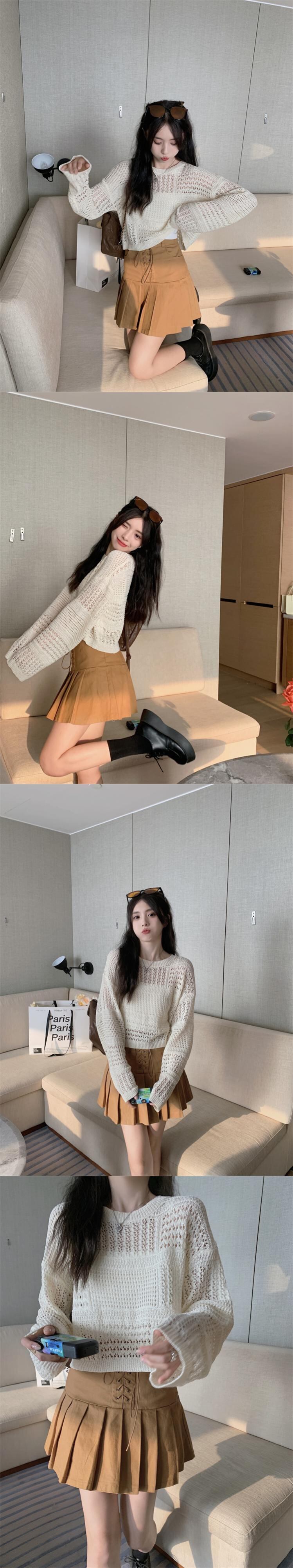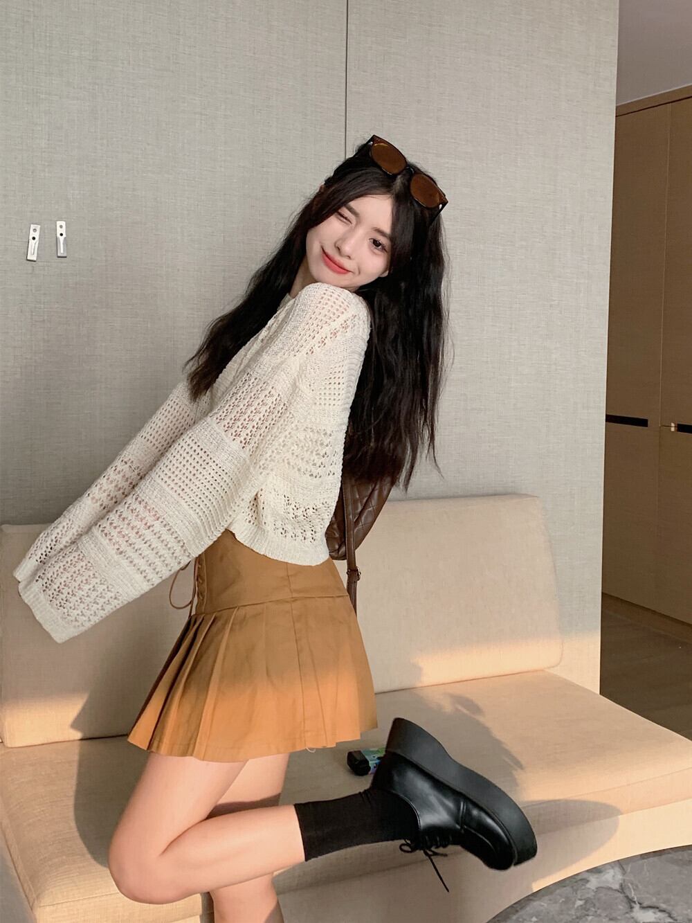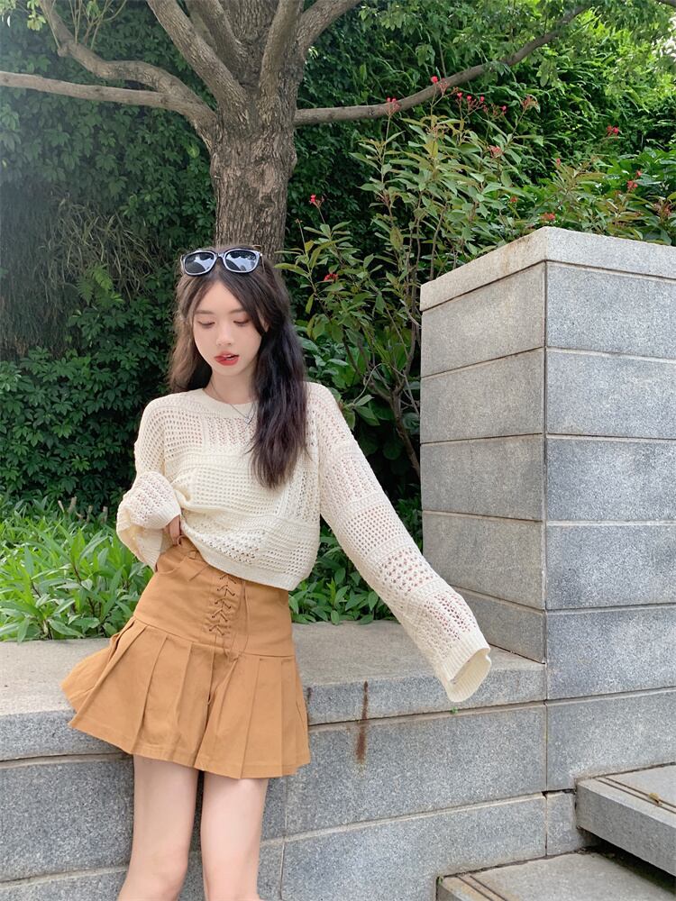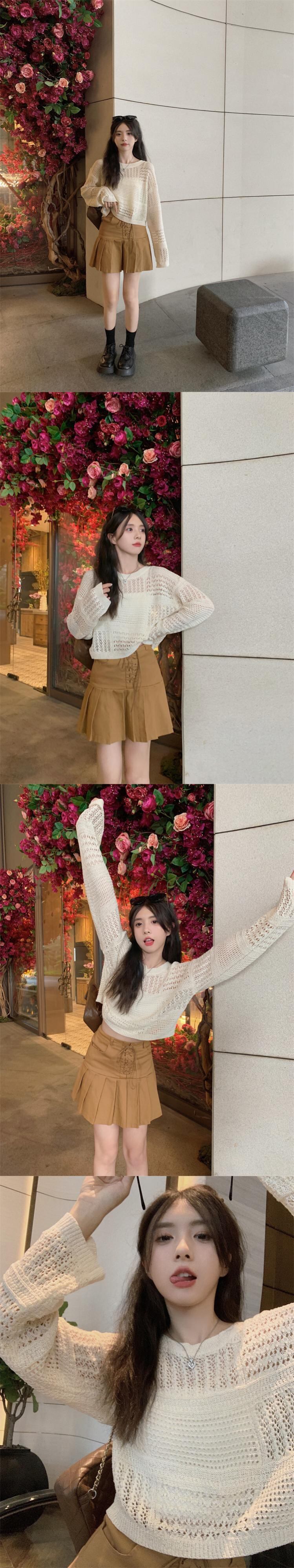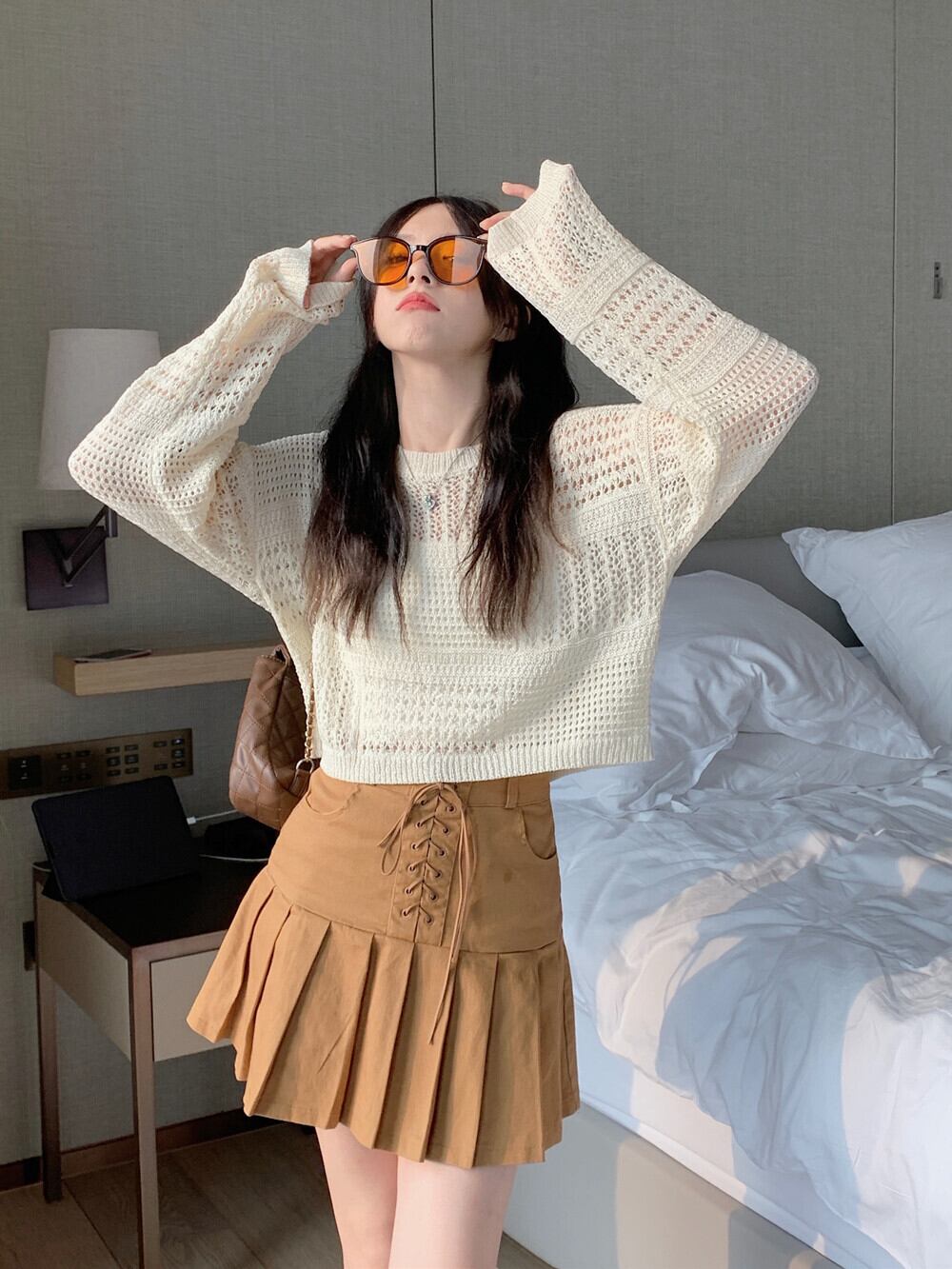 スウィートスパイスガールズレトロレイヤードブラウス中空アウト長袖ニットショートトップ女性の夏の小さな日焼け止めシャツ ロング レッド 大人ガーリー キュート カジュアル サマー 夏物 7460045188961693 | framboise21