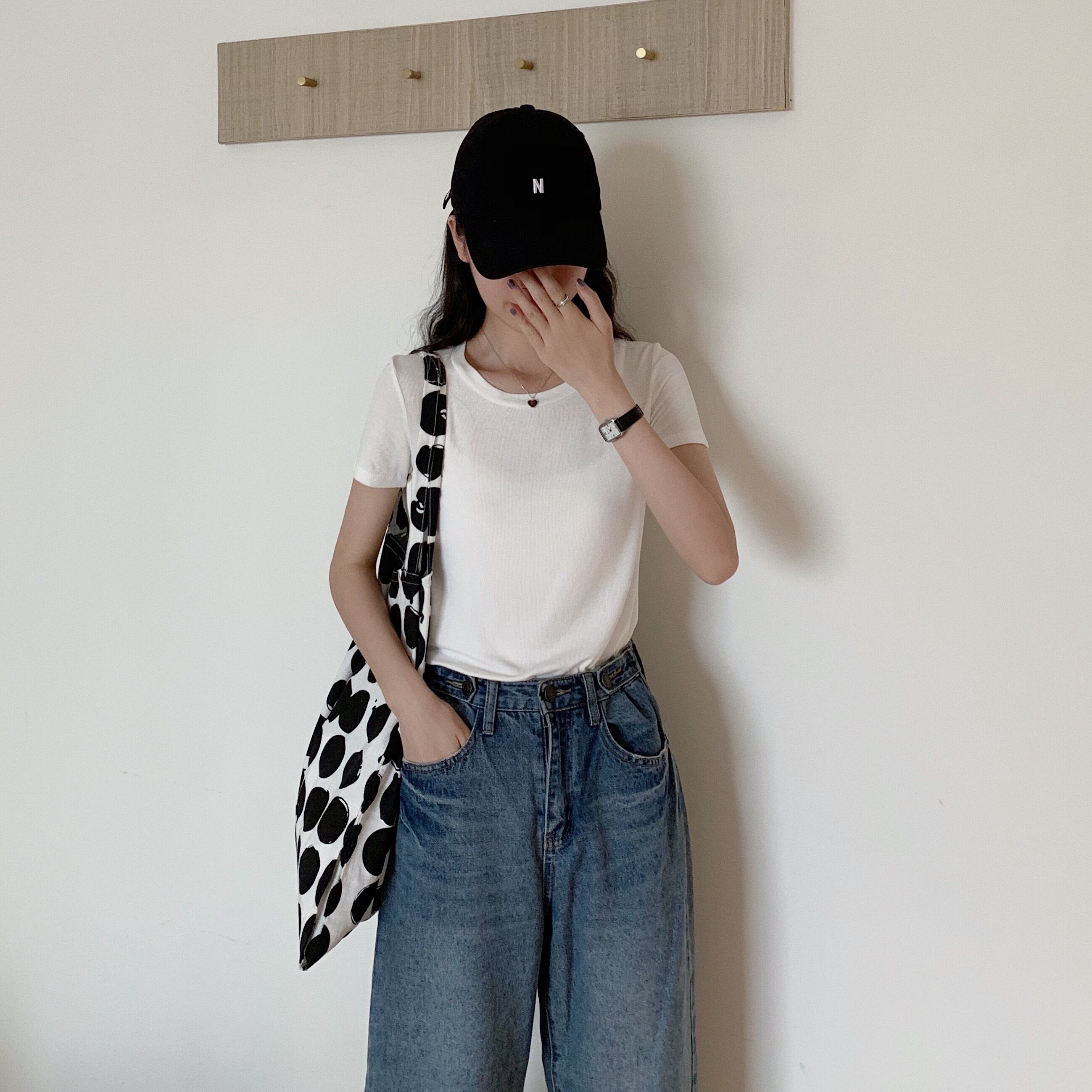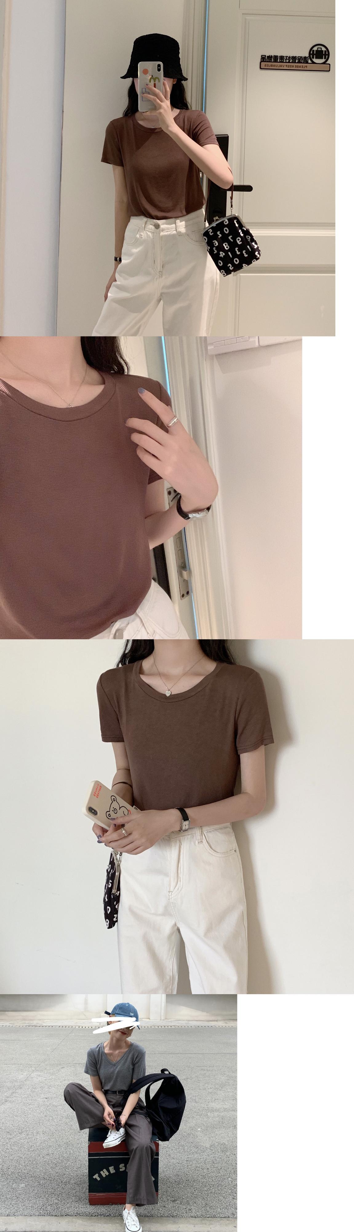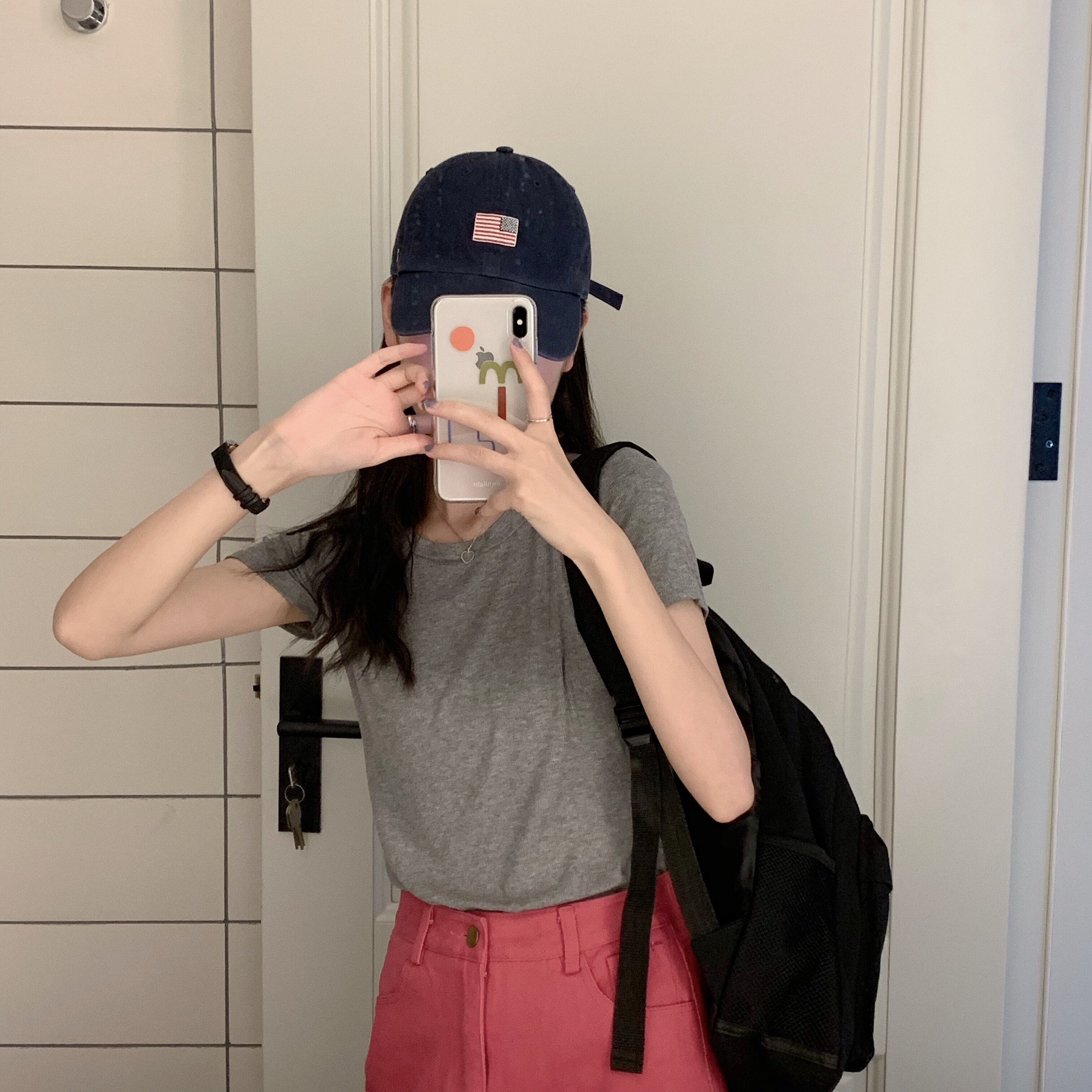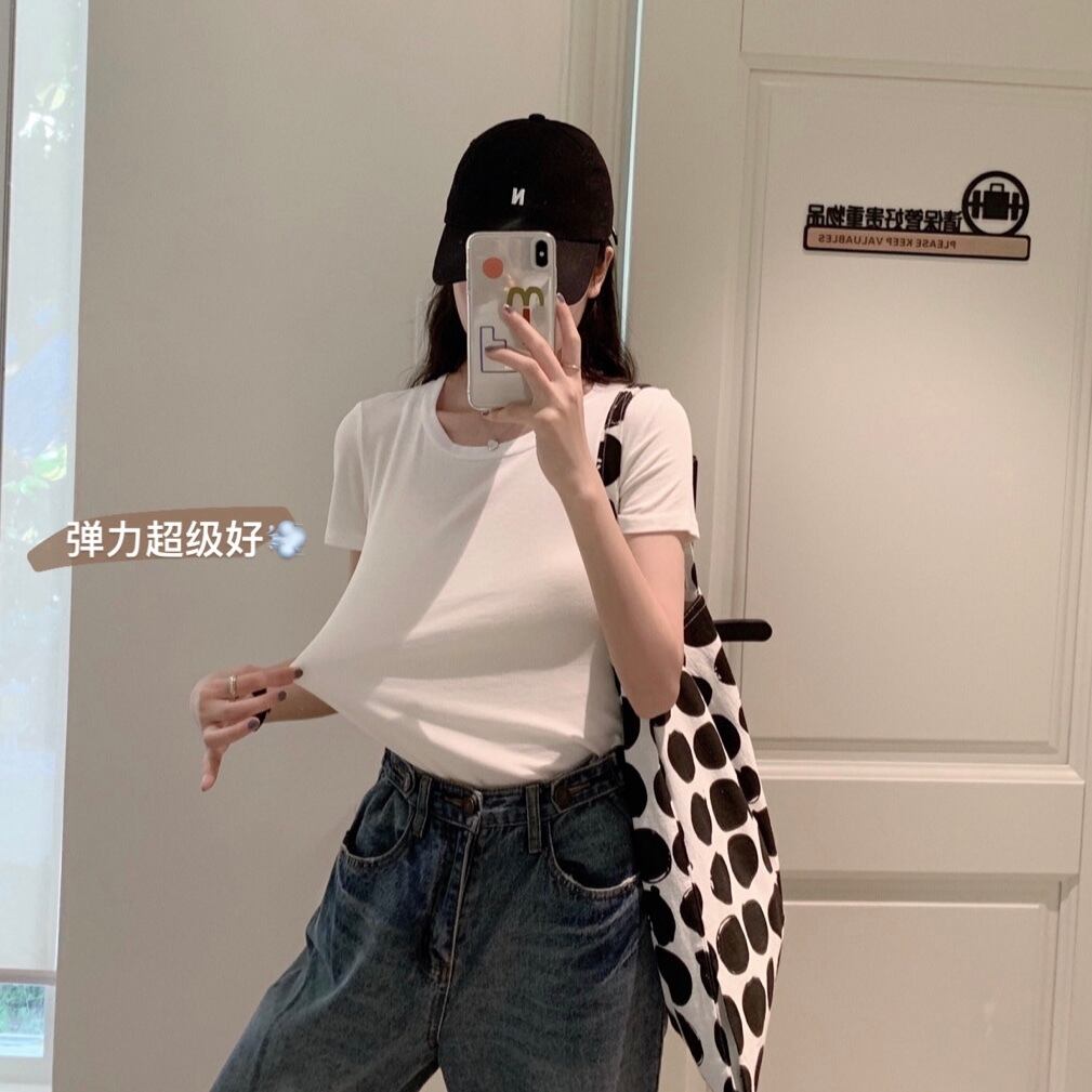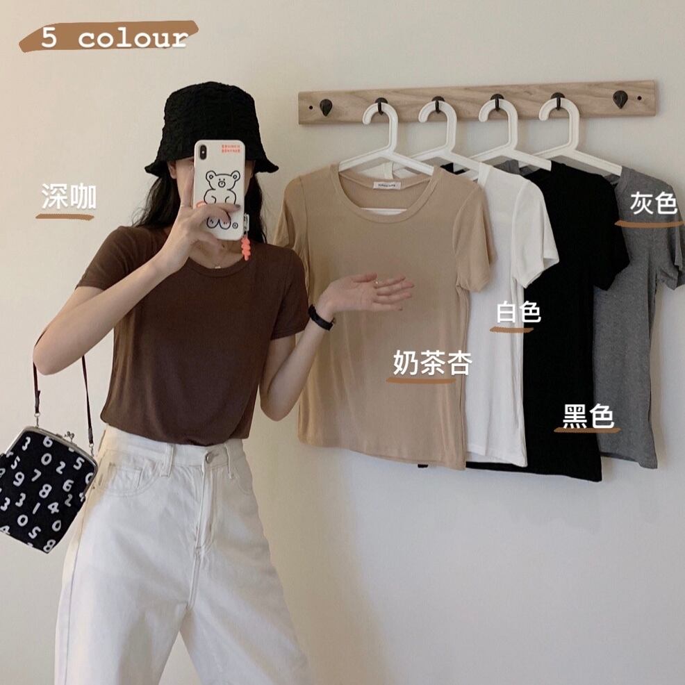 アイスシルクモーダルマスクTシャツ レディース 半袖 薄手 夏 無地 ストリート系 甘辛トップ デザイン ニッチ 大人ガーリー スウィート キュート カジュアル サマー 夏物 ソリッドカラー 7460047785437168 | framboise21