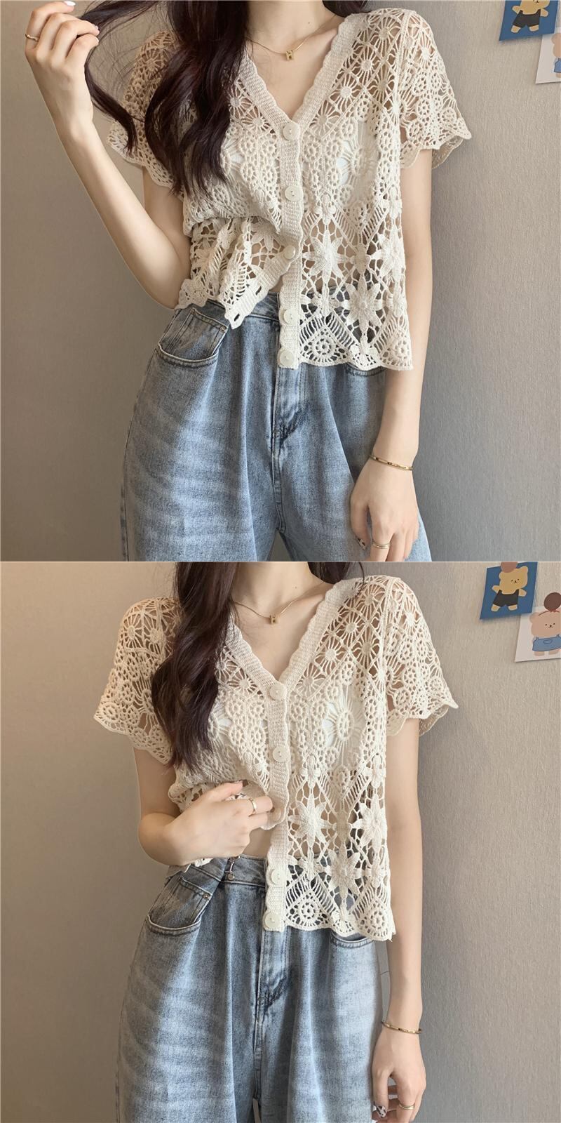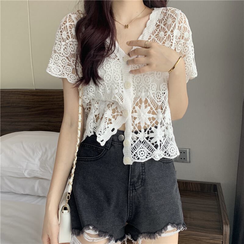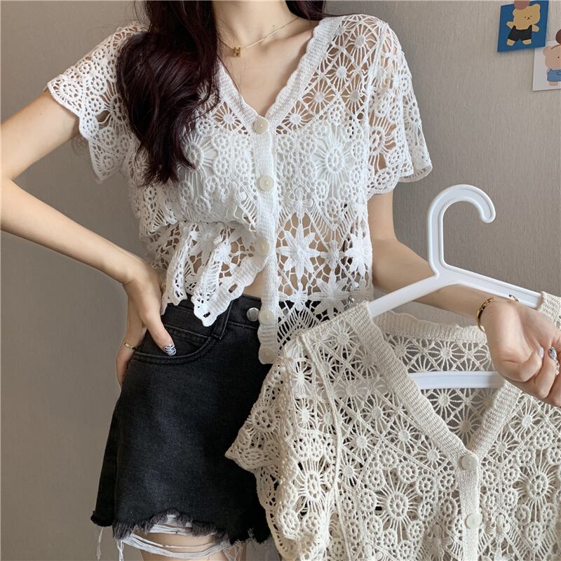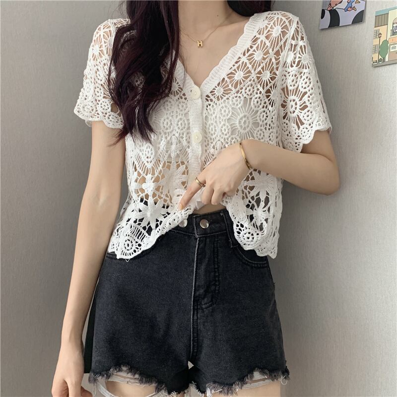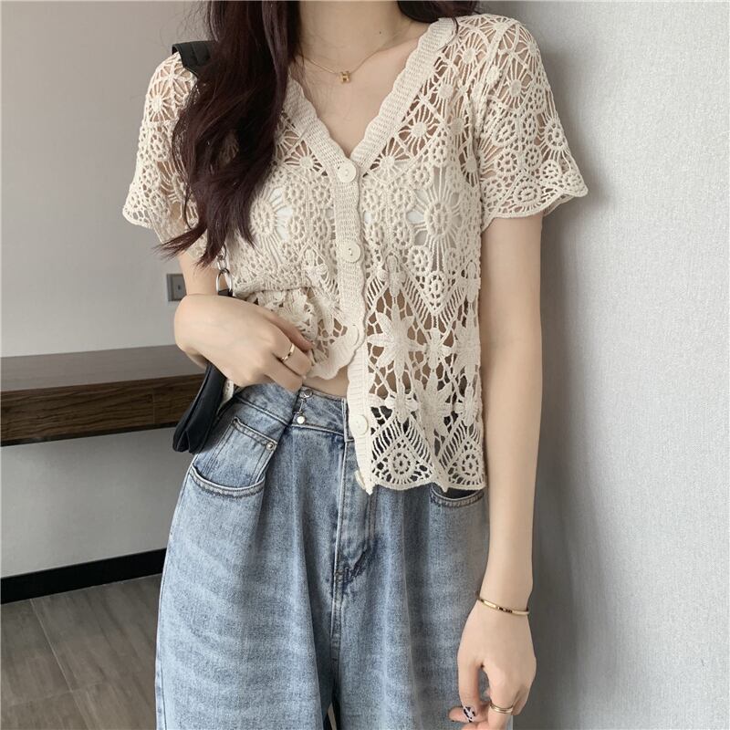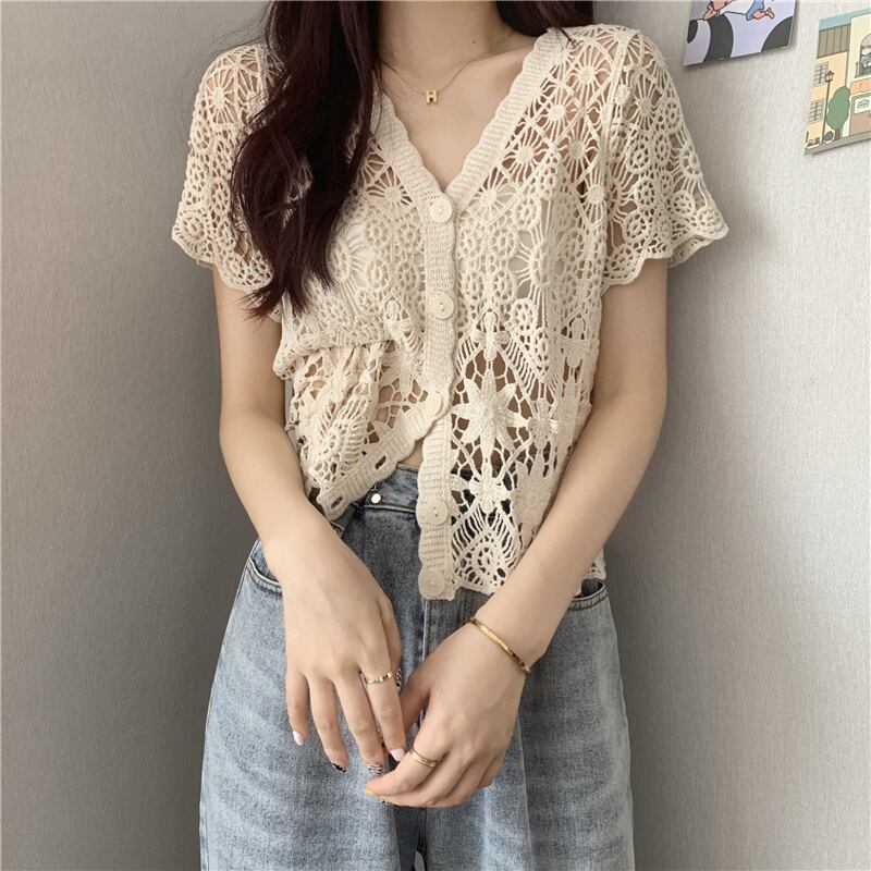 アイスシルク 日焼け止め カーディガン レディース 薄手 小さめ ショール 中空 デザインセンス ニッチ 半袖 夏 サスペンダー付き スカート ブラウス サマー 夏物 746001300968390 | framboise21