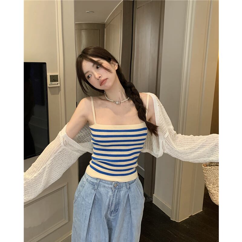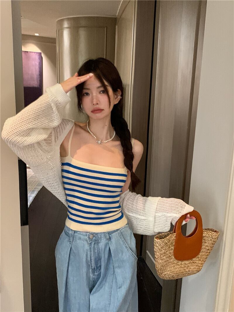 スーパー ストライプ 小さめ キャミソール レディース インナー 夏 甘い スリム 薄手 短め アウター ノースリーブ トップス トレンド ショート 大人ガーリー スウィート キュート カジュアル サマー 夏物 7460032256578671 | framboise21