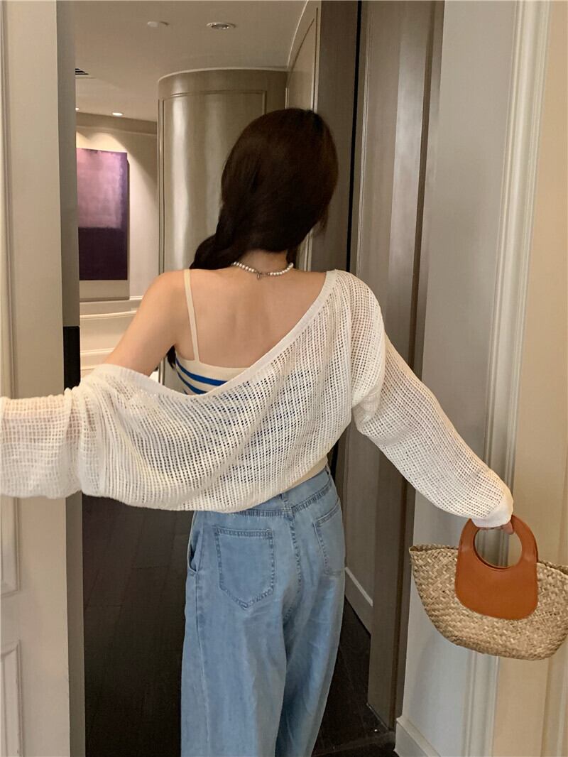 色:白いカーディガン,青いスリング