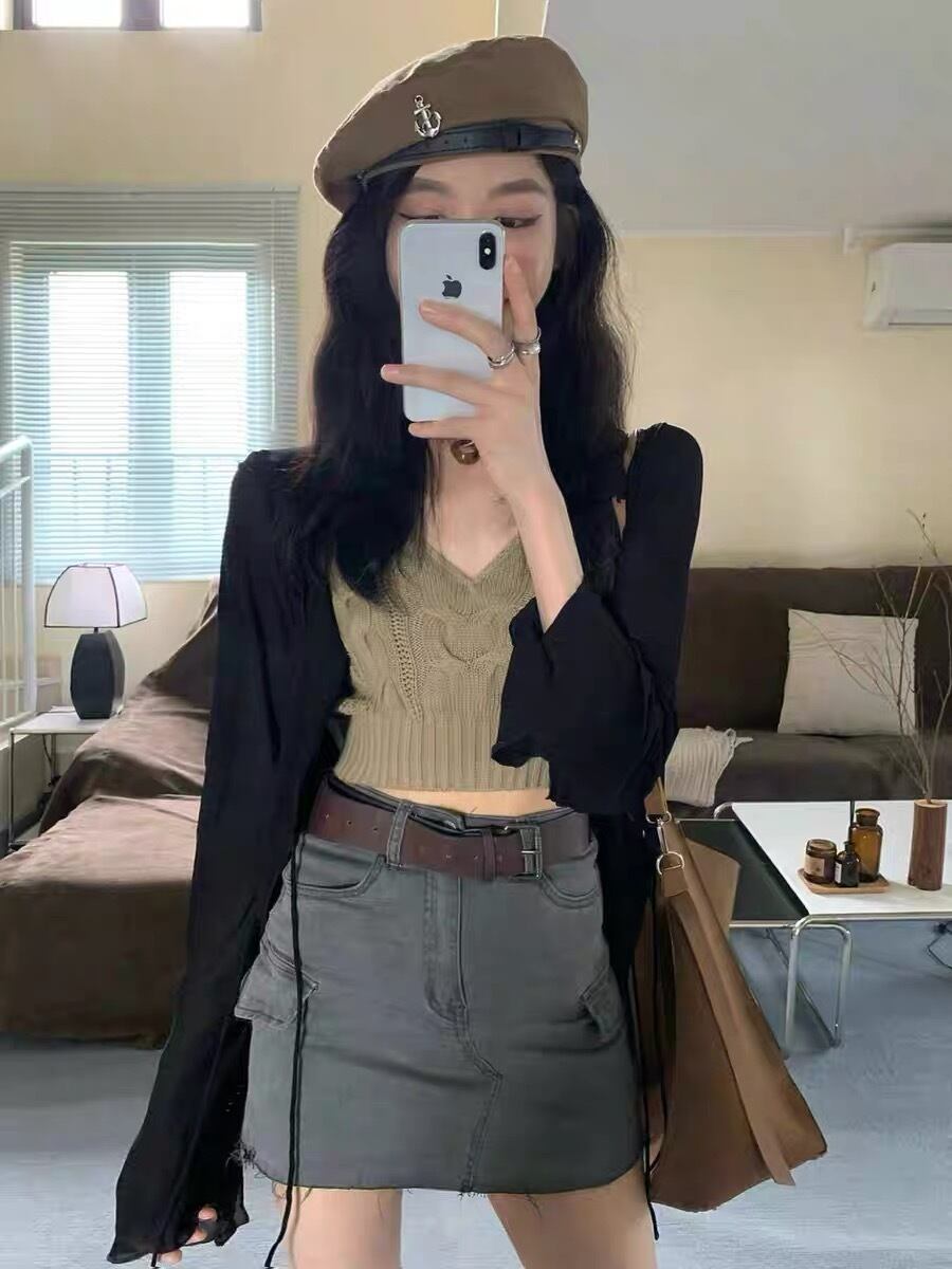 年齢を抑えたスリーピーススーツ、塩ベースの揚げストリートウェア、カーディガンスカート、甘辛スカート 大人ガーリー スウィート キュート カジュアル 7460093677691017 | framboise21