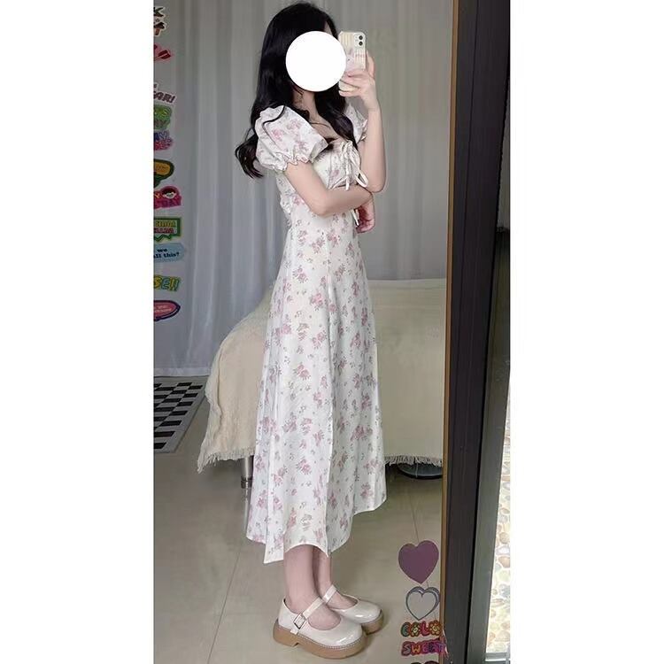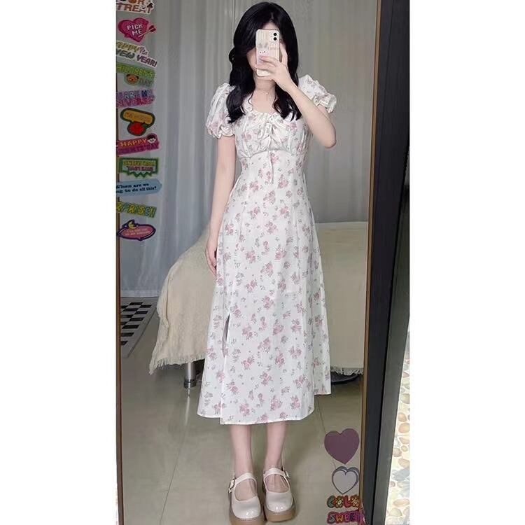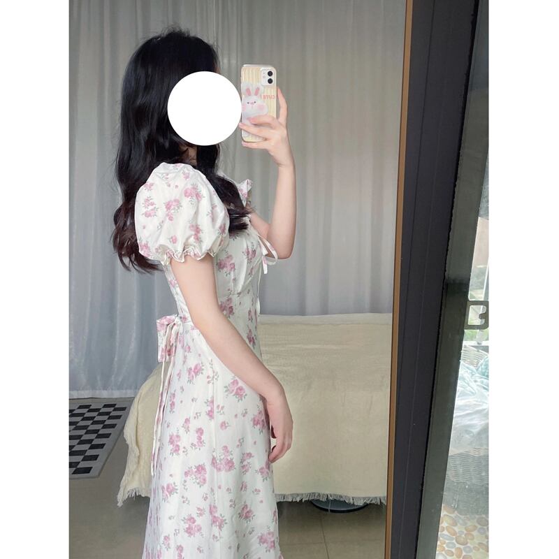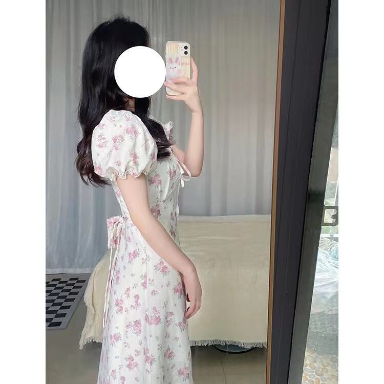 ピュアでスウィートなドレスの女性の新しいピンクのバラの花柄のY感のある優しい気質のウエストスカートの夏 大人ガーリー キュート カジュアル サマー 夏物 7460049992534808 | framboise21