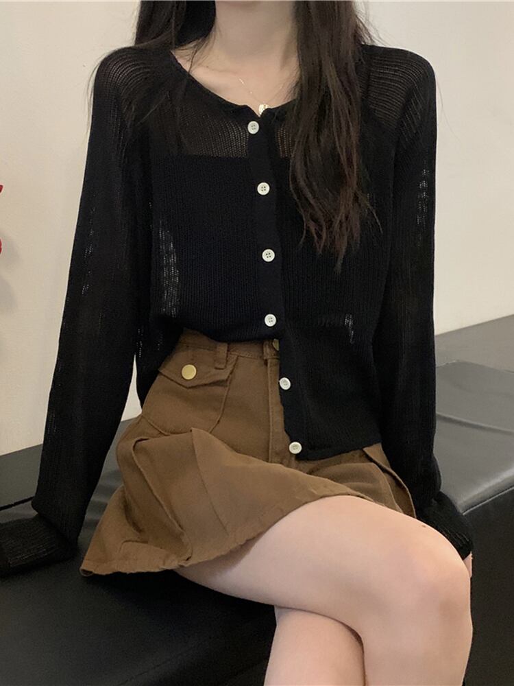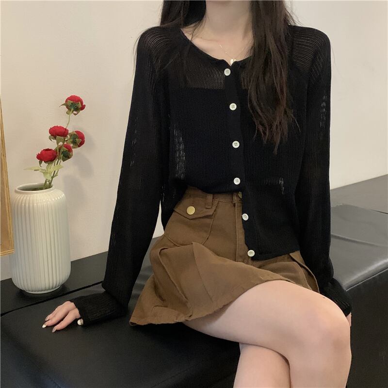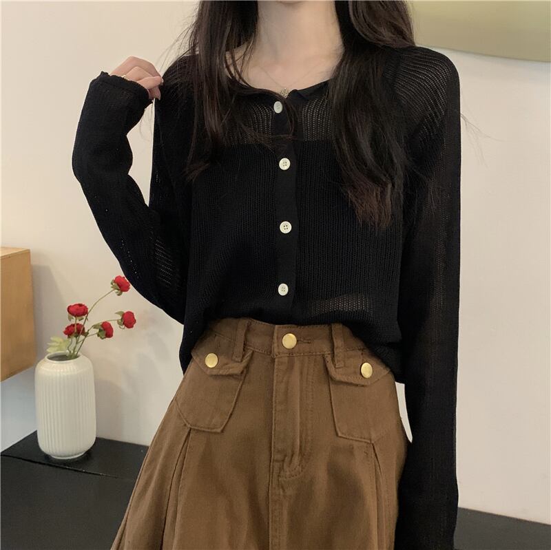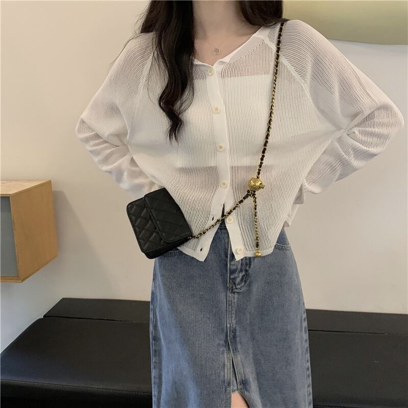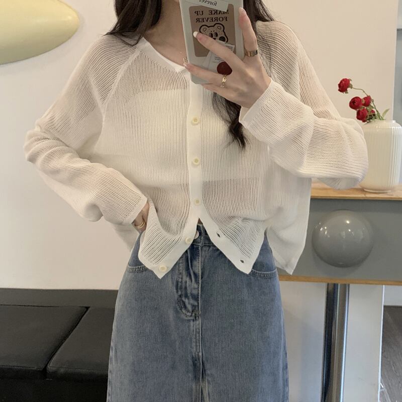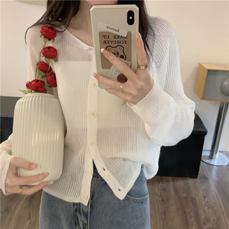 白い日焼け止めカーディガン女性の夏の薄い中空ブラウス ジャケット外サスペンダー付き妖精ニット ショール エアコン シャツ ホワイト サマー 夏物 7460054775862260 | framboise21