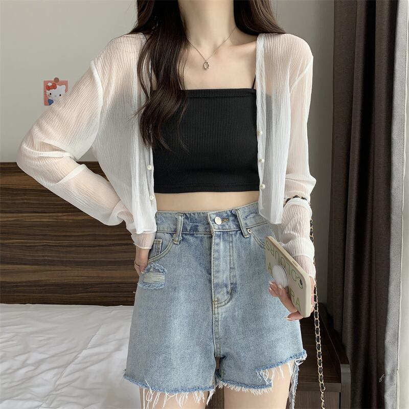 アイスシルク シフォン 日焼け止め カーディガン レディース 薄手 小さめ ベスト ジャケット 夏 サスペンダー付き スカート ショール 外 スモック トレンド サマー 夏物 7460091260507969 | framboise21