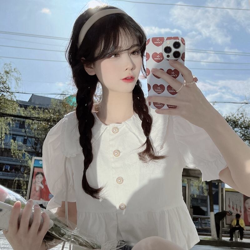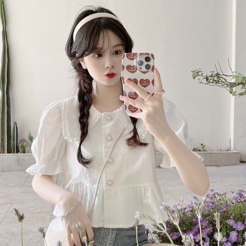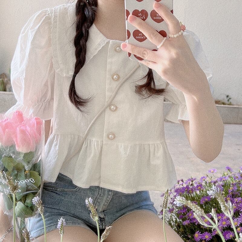 ドールカラー 半袖シャツ レディース 夏 フレンチ ショートパフスリーブシャツ 甘め 優しい シック 薄手 トップス 夏 ハーフスリーブ 大人ガーリー スウィート キュート カジュアル サマー 夏物 7460081913829142 | framboise21