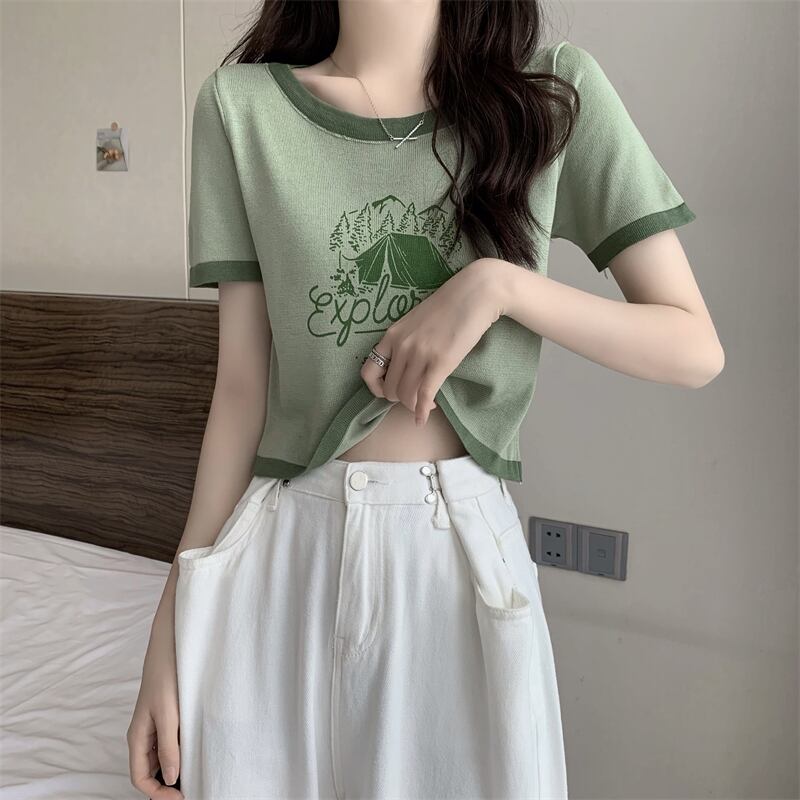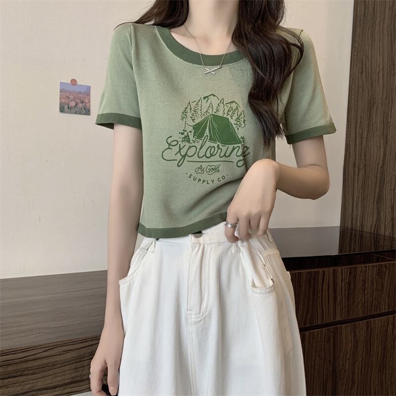 センスニッチ ローネック アイスシルク セーター レディース 半袖 Tシャツ 夏ならでは ショルダー シック ショート トップス イン サマー 夏物 7460041998567218 | framboise21