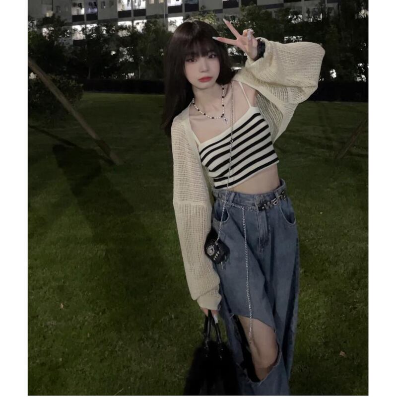 日焼け止め カーディガン レディース 薄手 夏 ホロートップ ショール アイスシルク 小チョッキ ブラウス サスペンダー アウター 2点セット サマー 夏物 746009005762024 | framboise21
