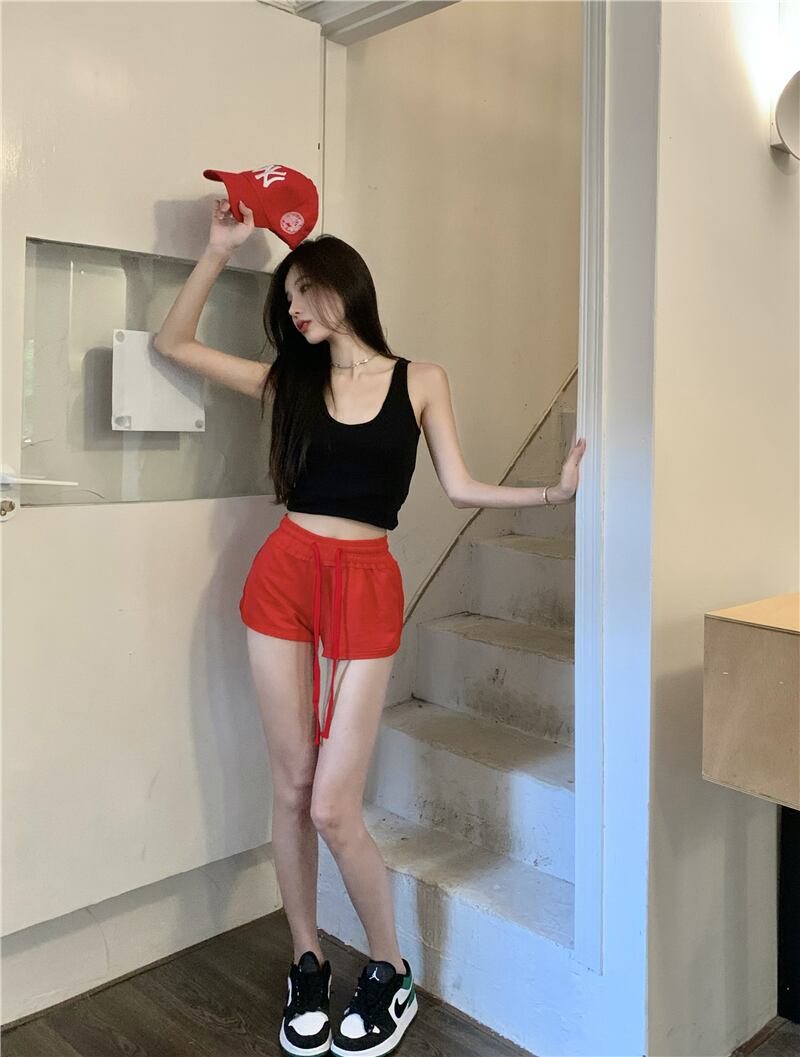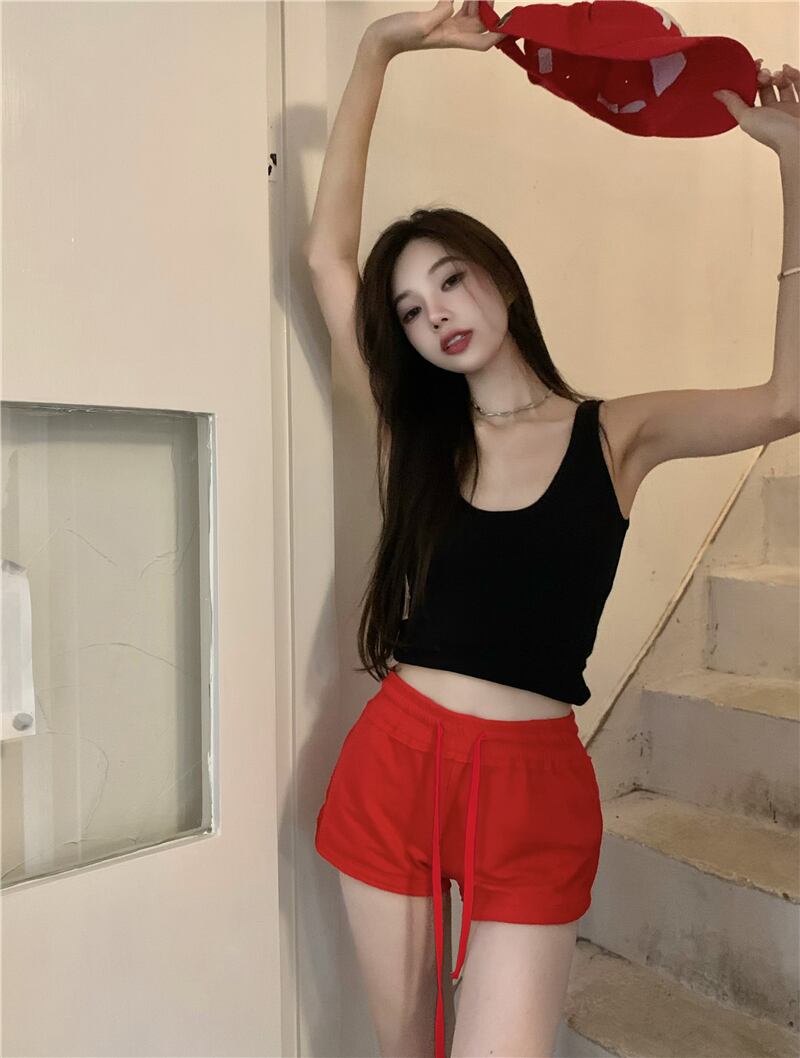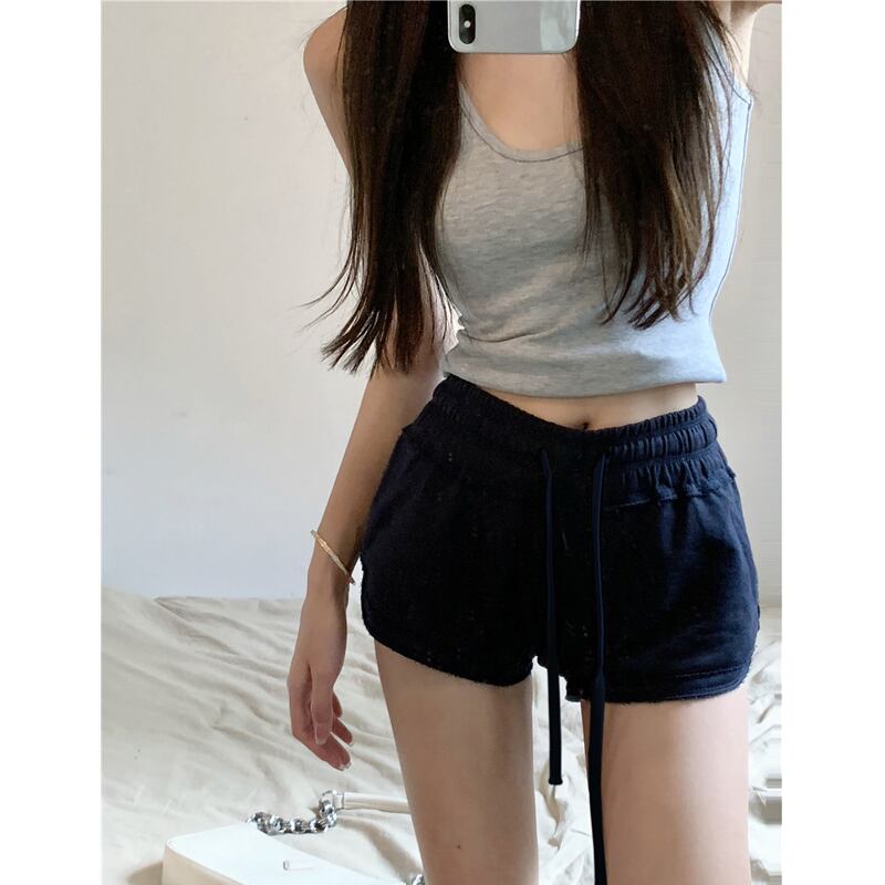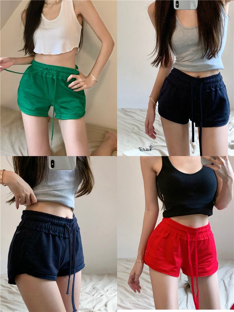 黒の巾着カジュアル スポーツ ショーツ女性の夏の薄いセクション小さな緩いフィットネス弾性ウエスト ヨガ パンツ ブラック エラスティック 伸縮 サマー 夏物 ブルマー 7460049186216050 | framboise21