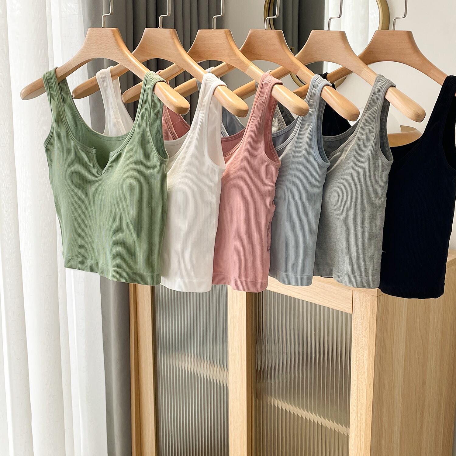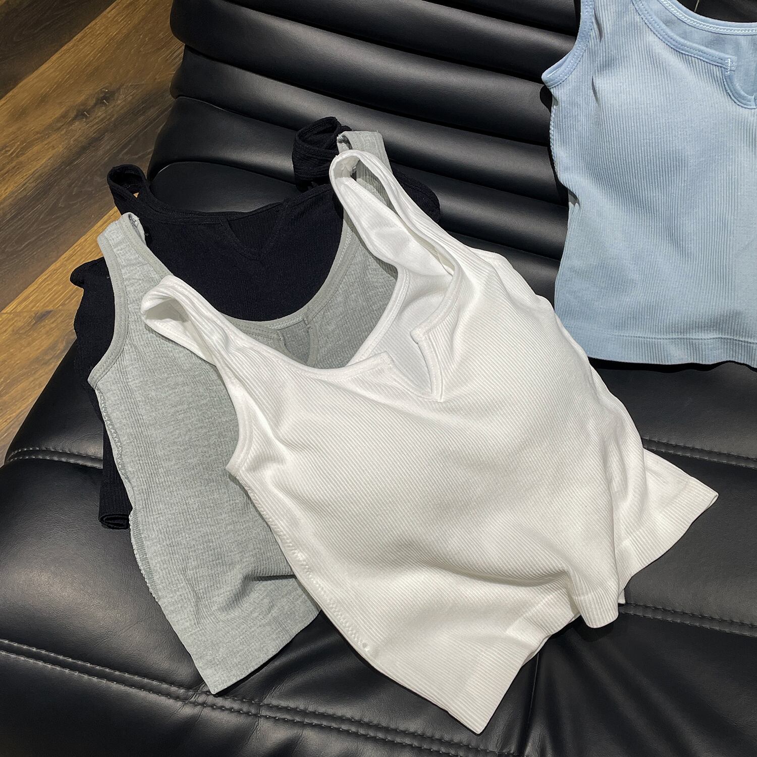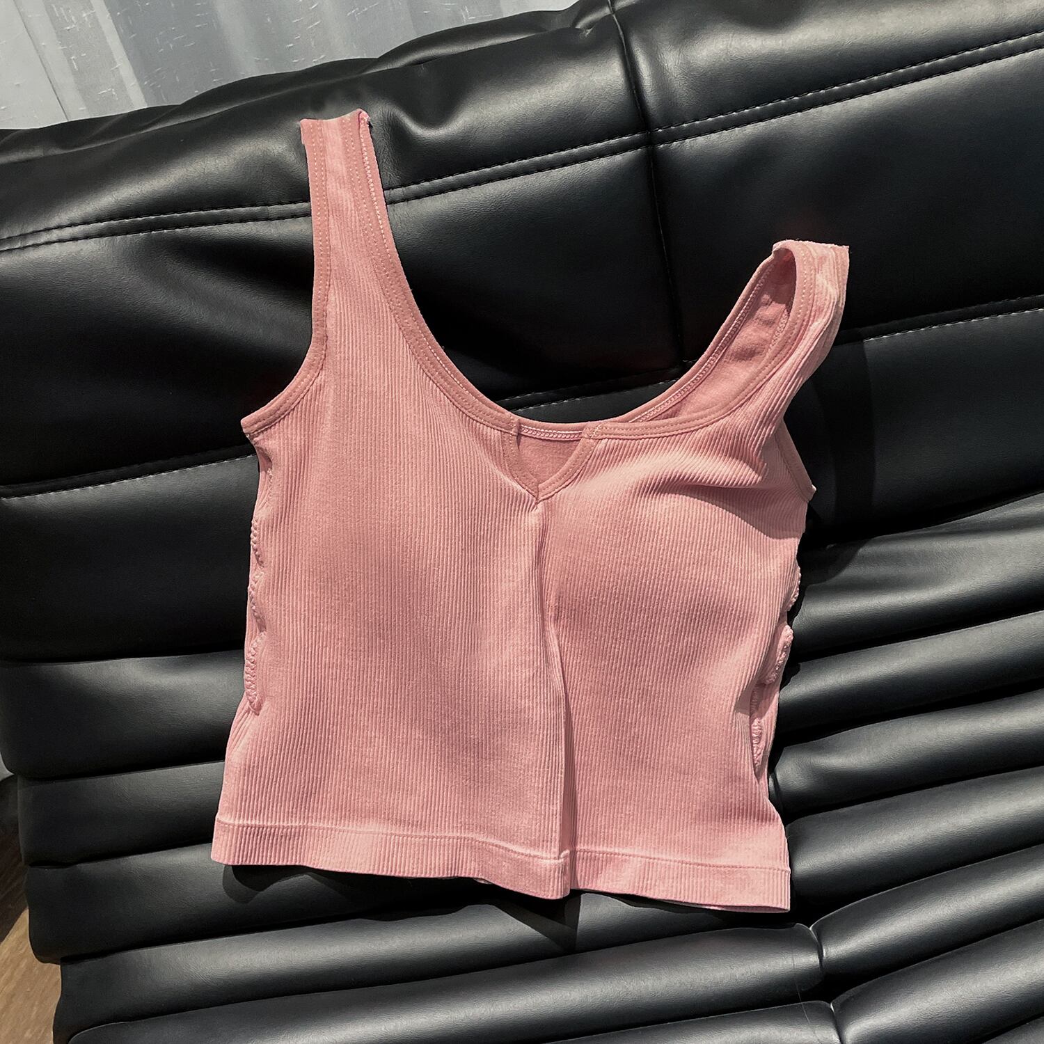 小さめバージョンのVネックベスト サスペンダー レディース インナーストラップ チェストパッド 夏の新デザイン 小さめの外着感 ノースリーブトップス サマー 夏物 7460043510630301 | framboise21