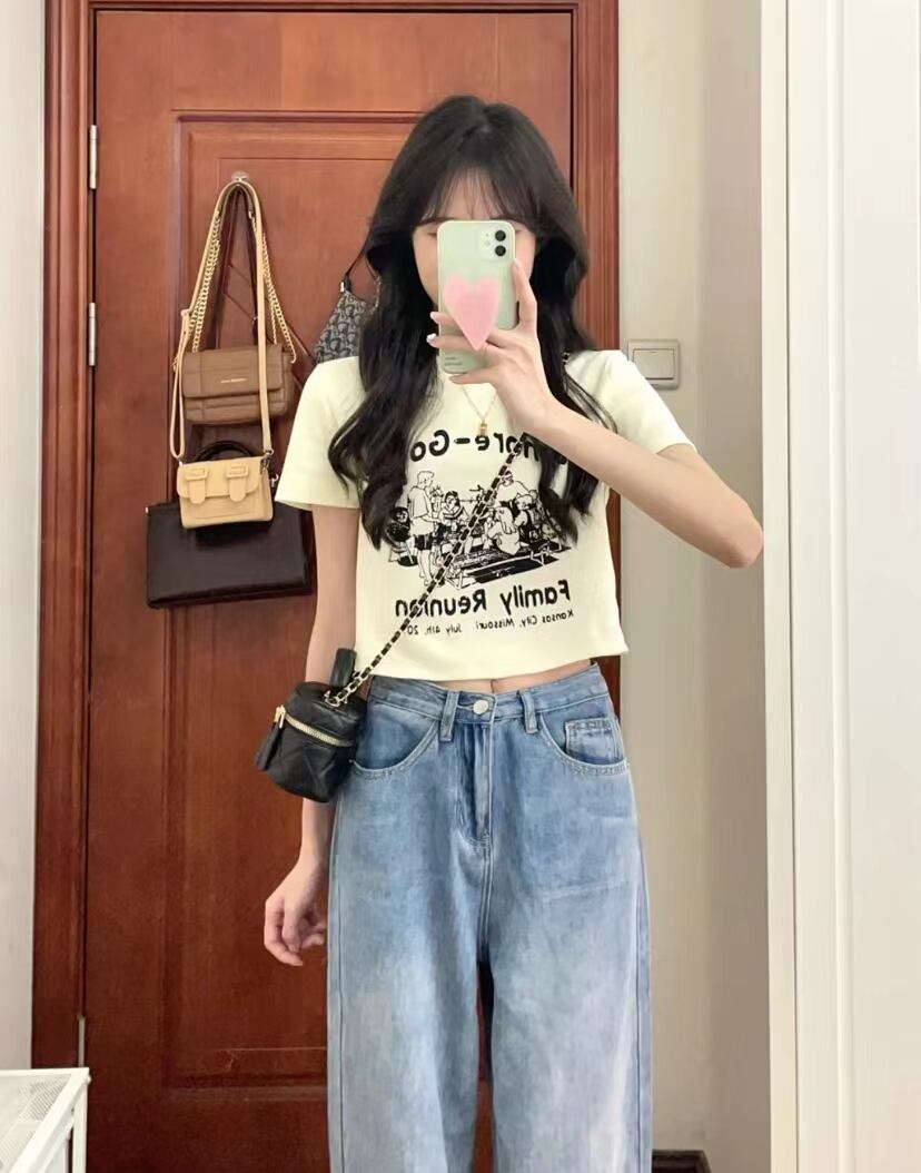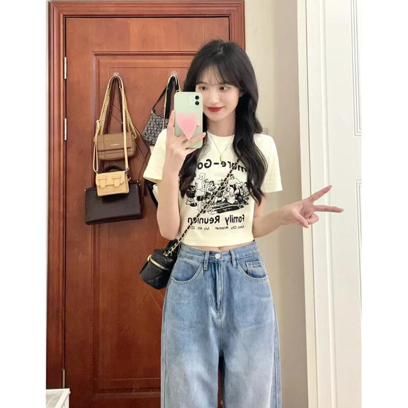 レトロなショルダー t シャツ女性の半袖イン潮 2022 夏の新しいスリム フィットと薄い綿ハイウエスト ショート トップ コットン サマー 夏物 Tシャツ 7460052010780795 | framboise21