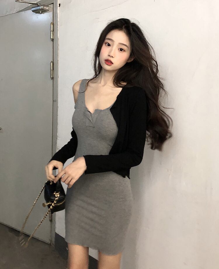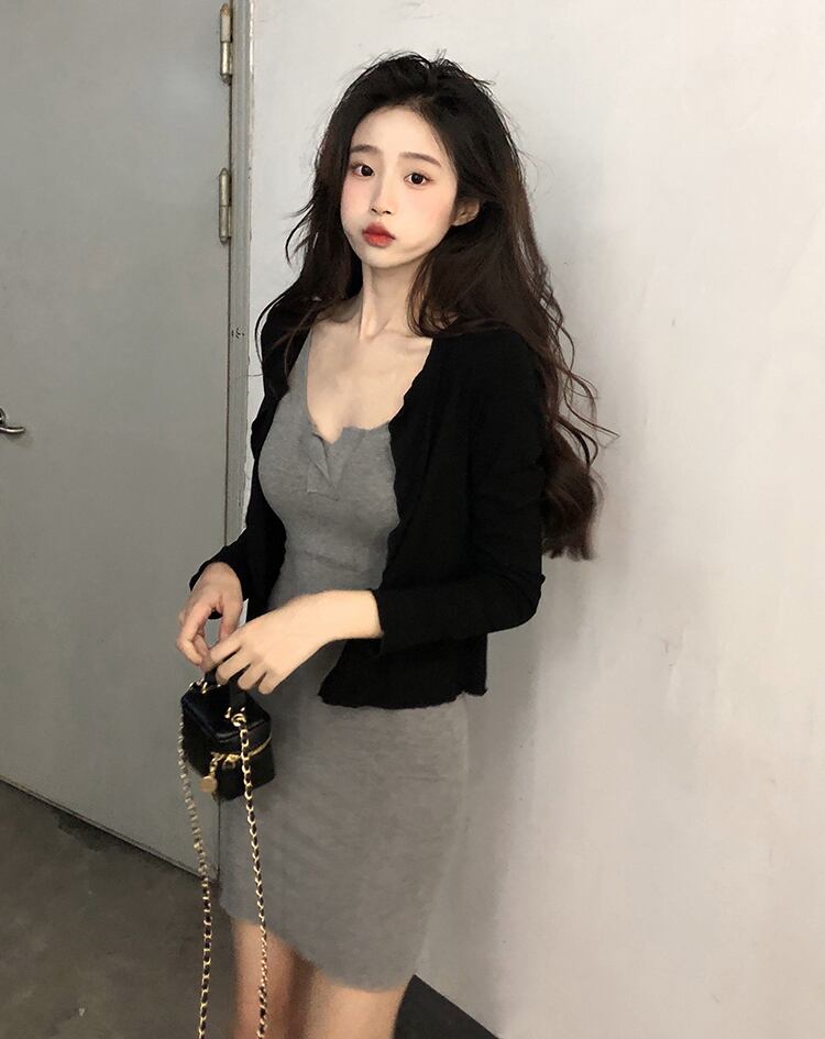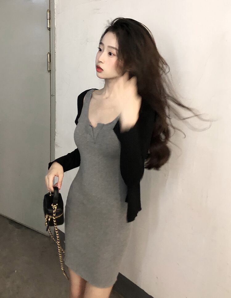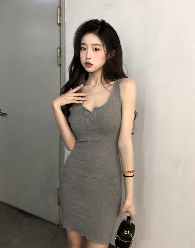 純粋な欲望風グレー ノースリーブ サスペンダー ドレス女性の夏のセクシーなタイト フィットと薄い内側弾性バッグ ヒップ スカート エラスティック 伸縮 サマー 夏物 7460091312012466 | framboise21