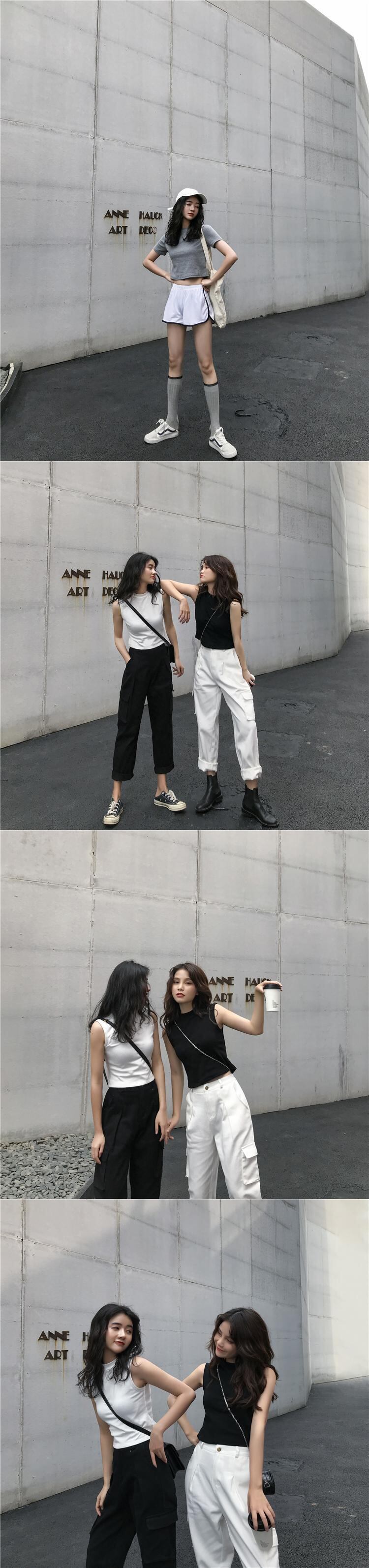 色:黒いTシャツ,白いTシャツ,グレーのTシャツ,オレンジ色のtシャツ,黒のベスト,白いベスト,グレーのベスト