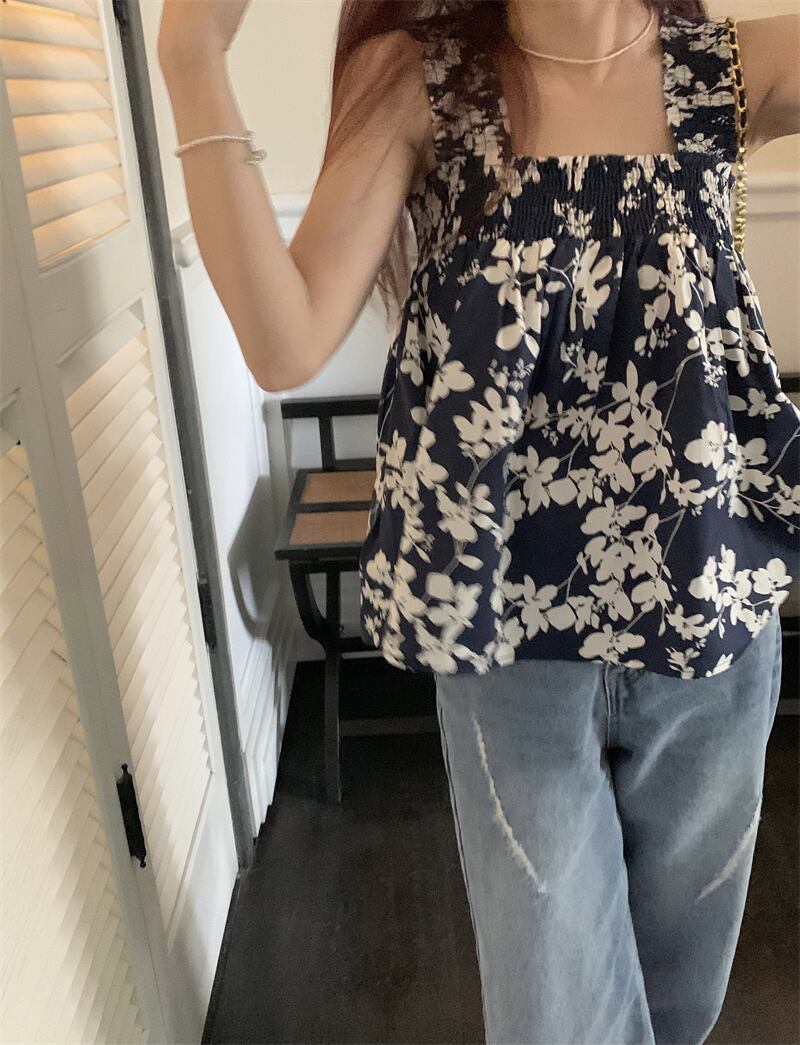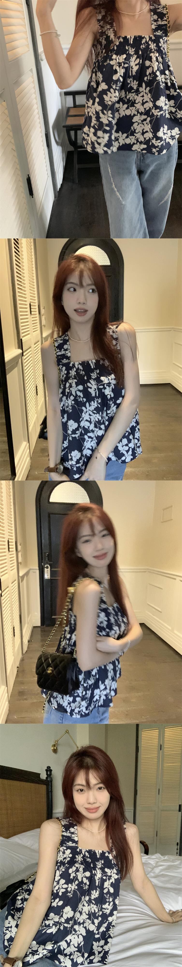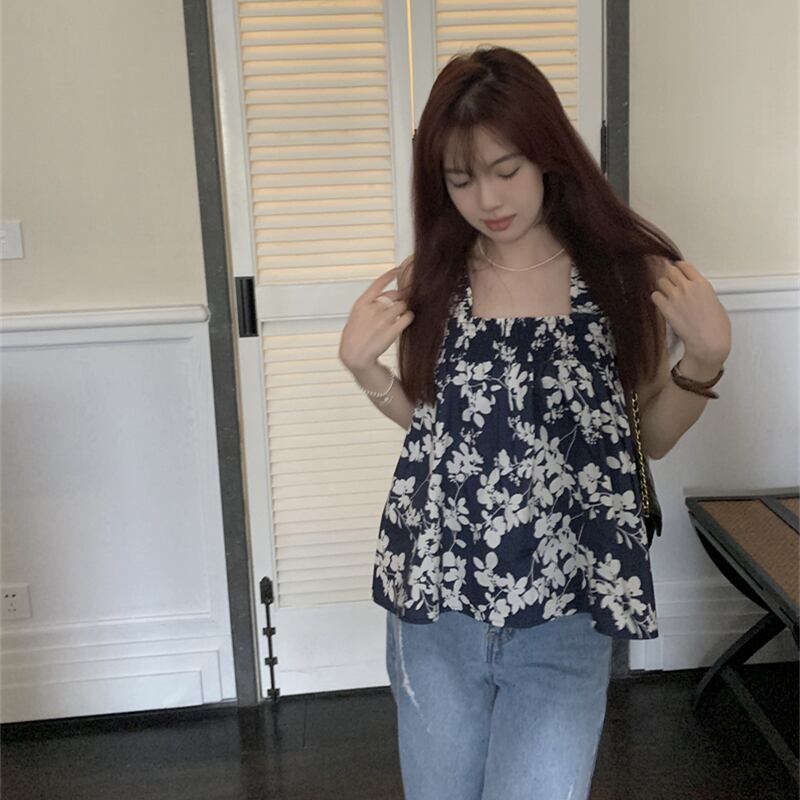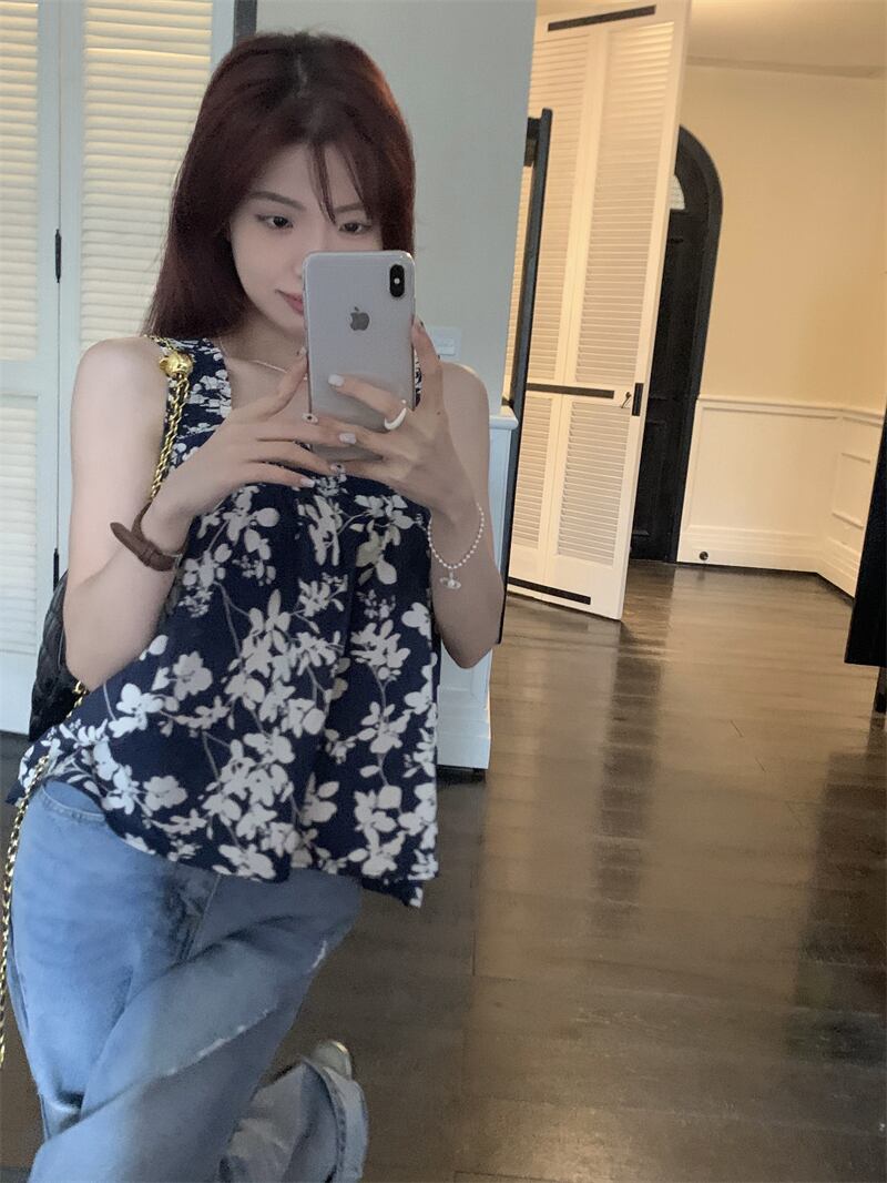 フレンチシックな華やかな花柄キャミソール レディース サマーアウター ゆったり 薄手 ショートドール シャツ ノースリーブ トップス 夏物 7460032784478394 | framboise21