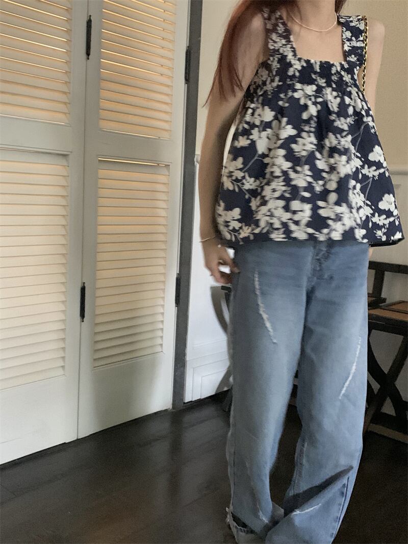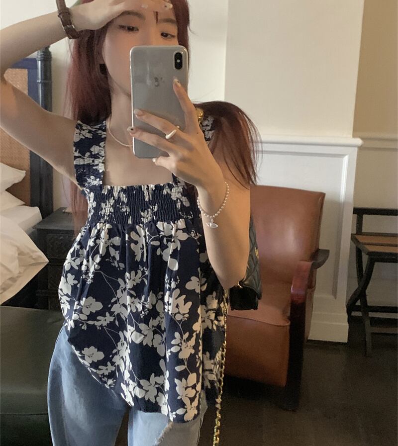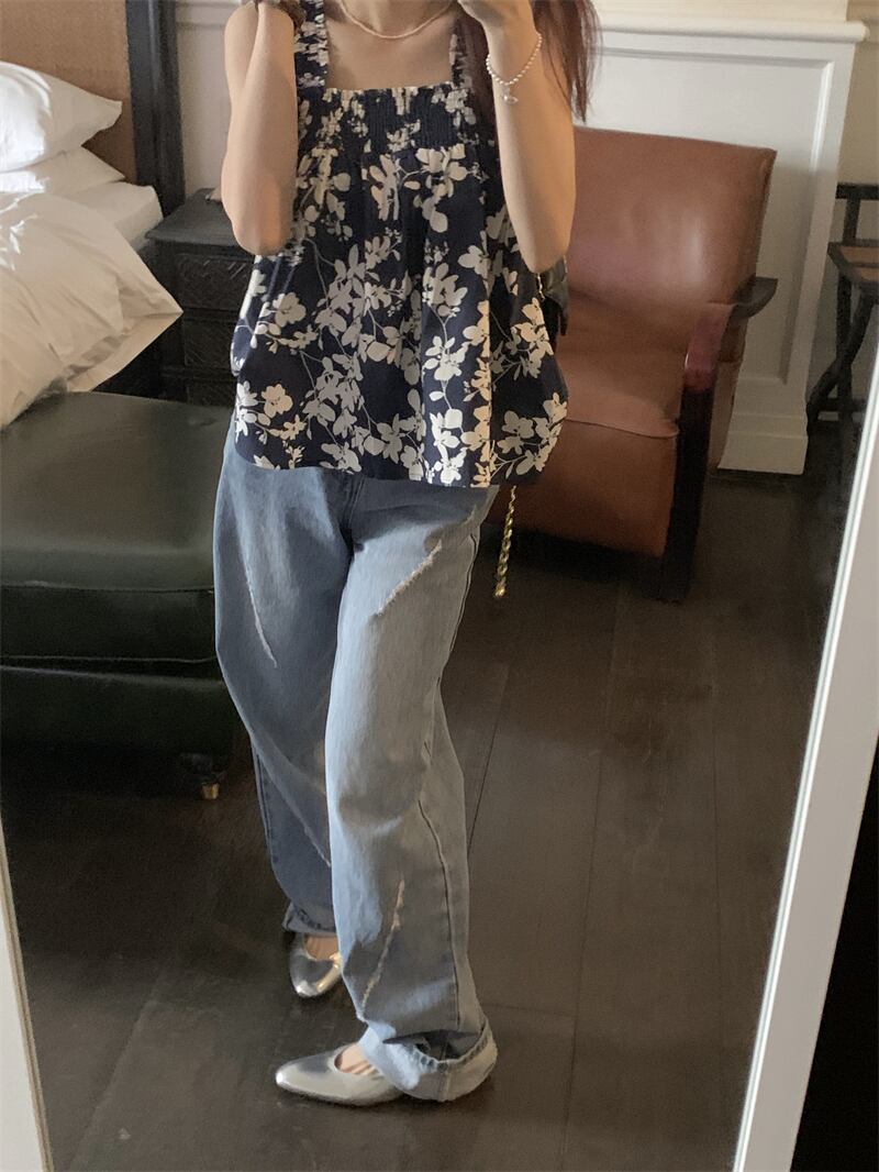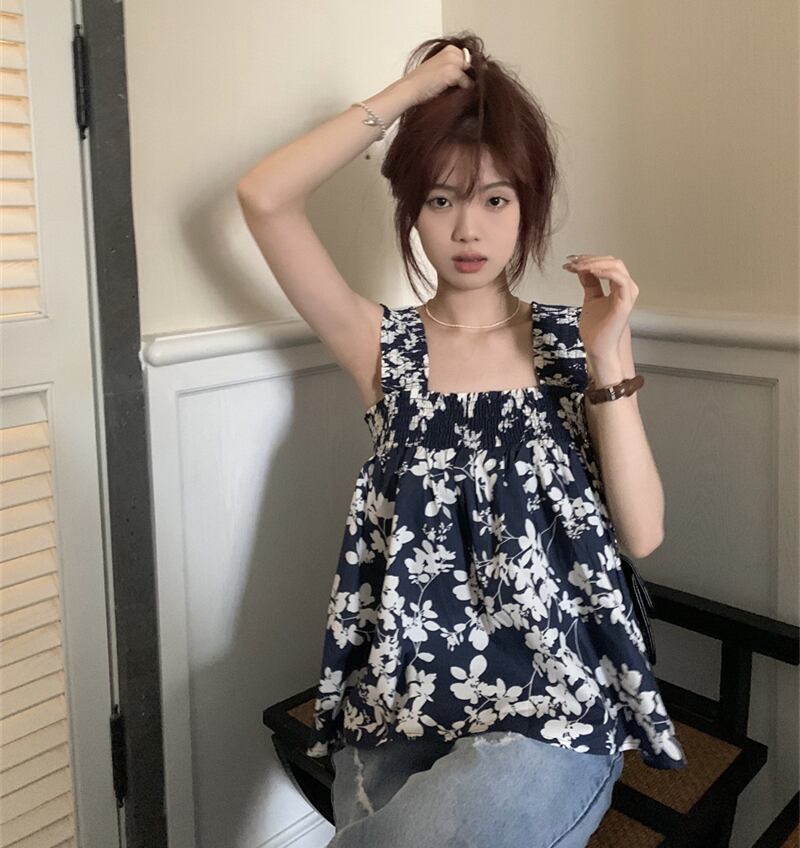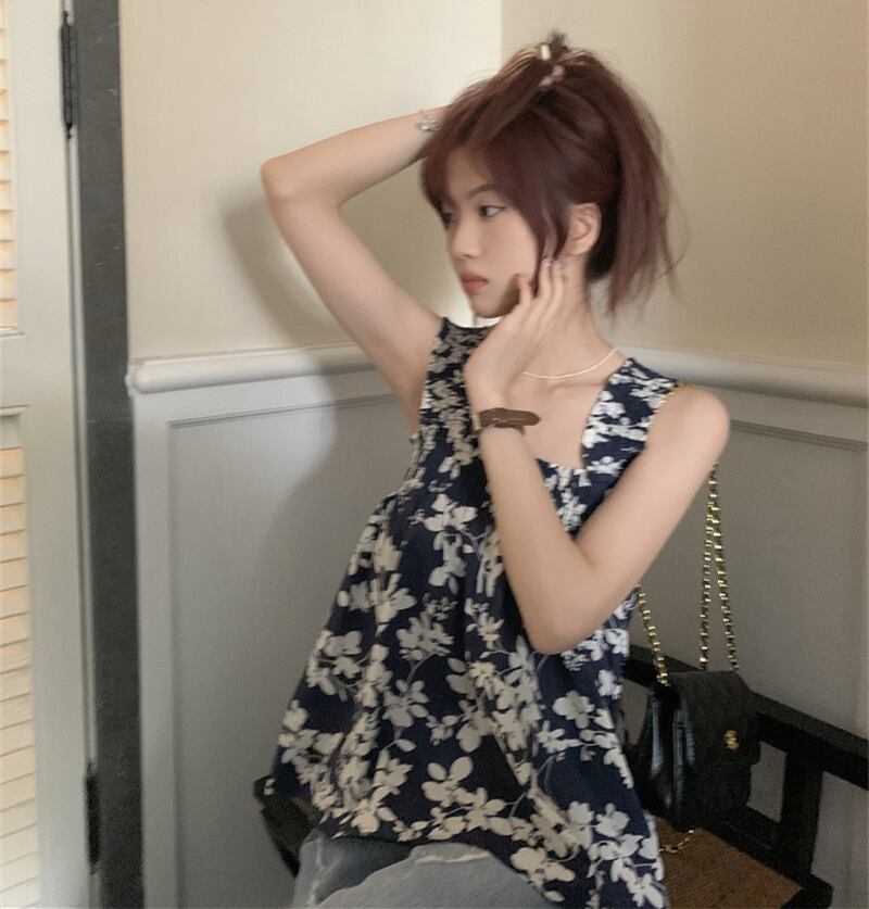 フレンチシックな華やかな花柄キャミソール レディース サマーアウター ゆったり 薄手 ショートドール シャツ ノースリーブ トップス 夏物 7460032784478394 | framboise21
