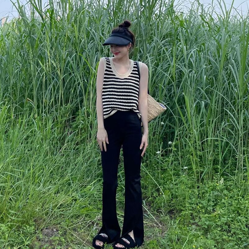 黒と白のストライプ中空ニット ベスト女性の 2022 夏新しいルーズ アウターウェア インナー サスペンダー ノースリーブ ベスト ホワイト ブラック サマー 夏物 7460094314240565 | framboise21