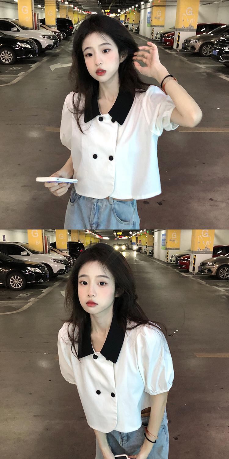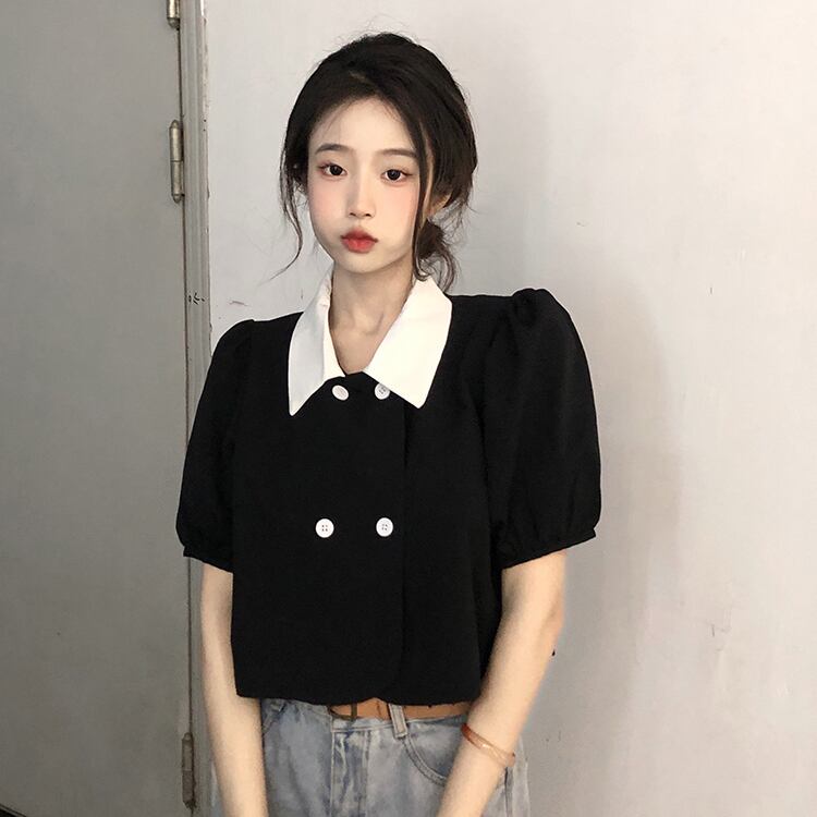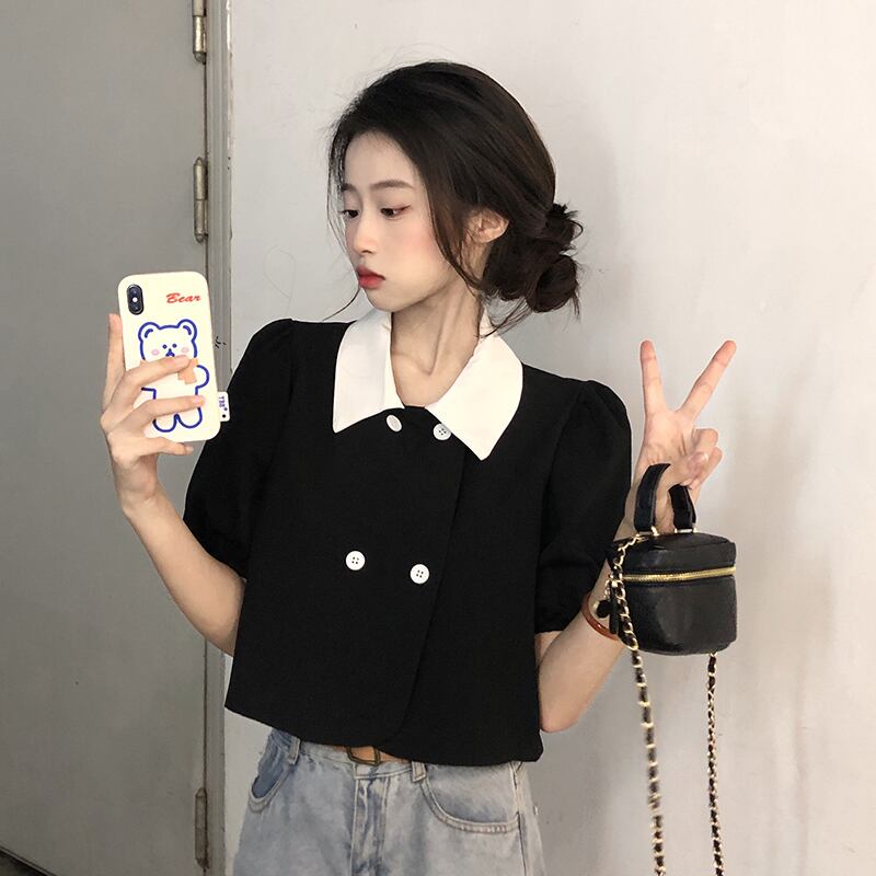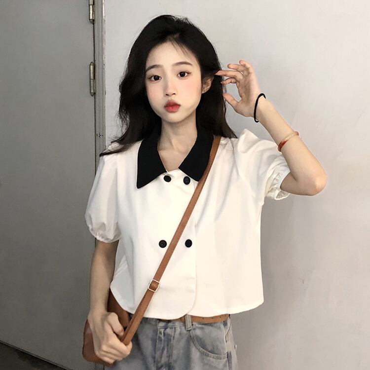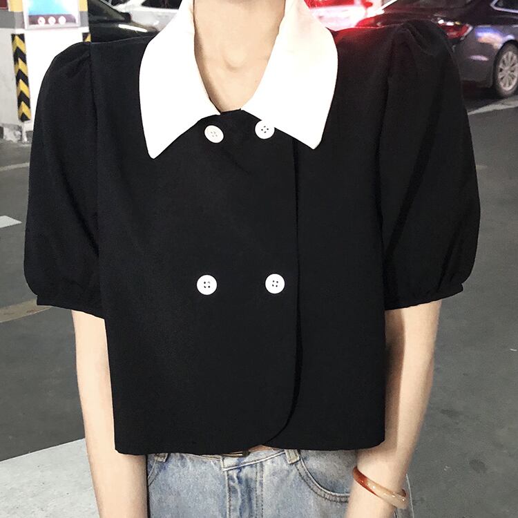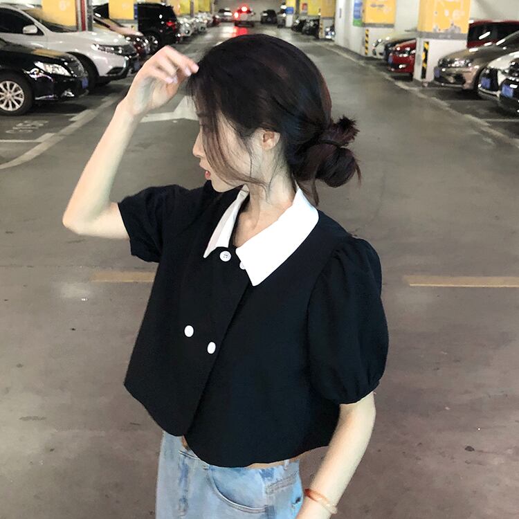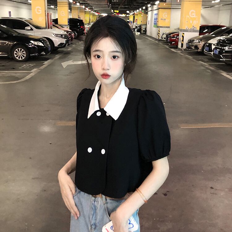 Xiaoxiangfeng 半袖シャツ女性の夏フレンチ不規則なパフスリーブラペルカーディガン気質 eign スタイルショートトップ サマー 夏物 7460099219314126 | framboise21