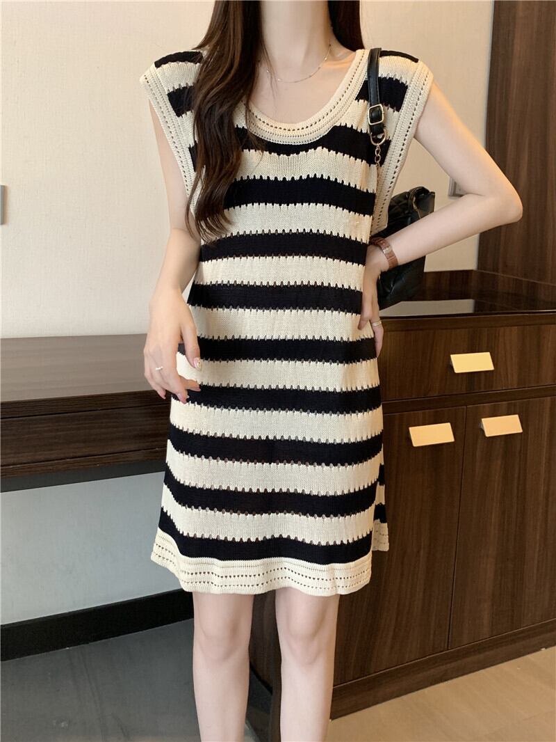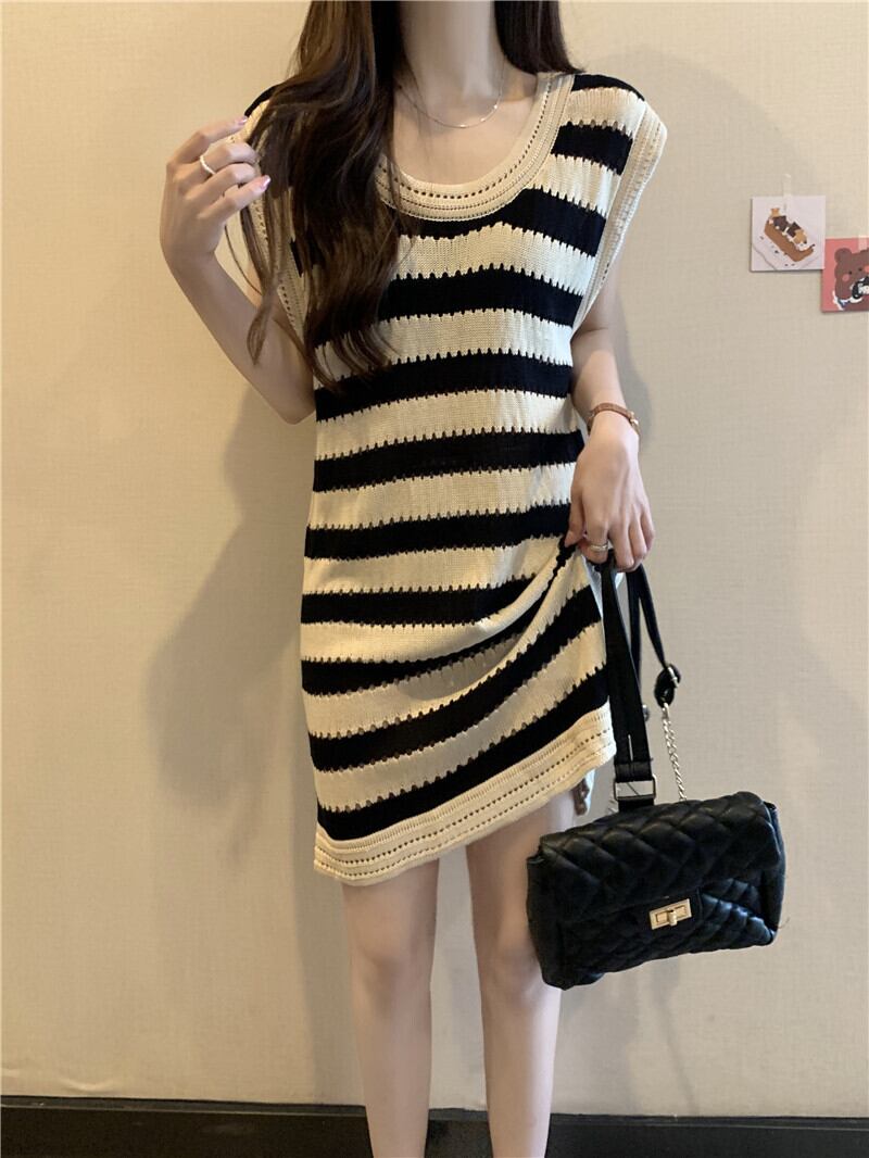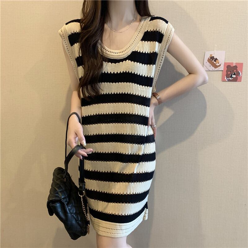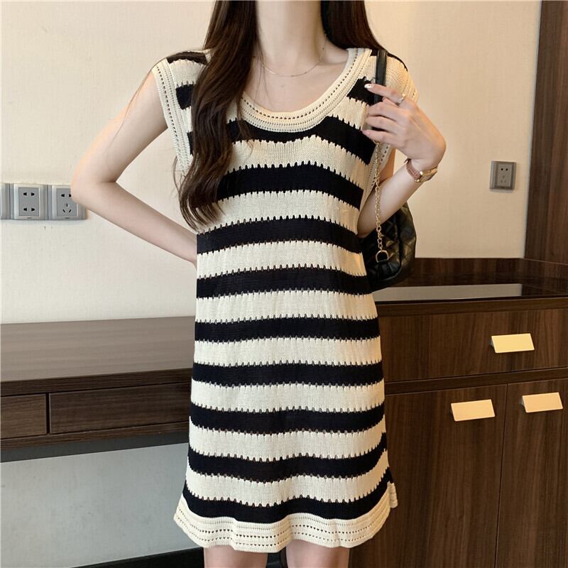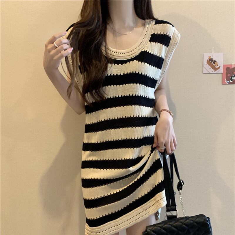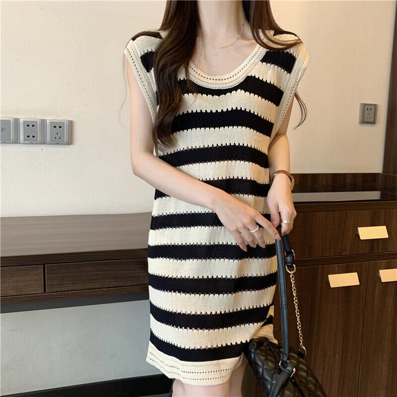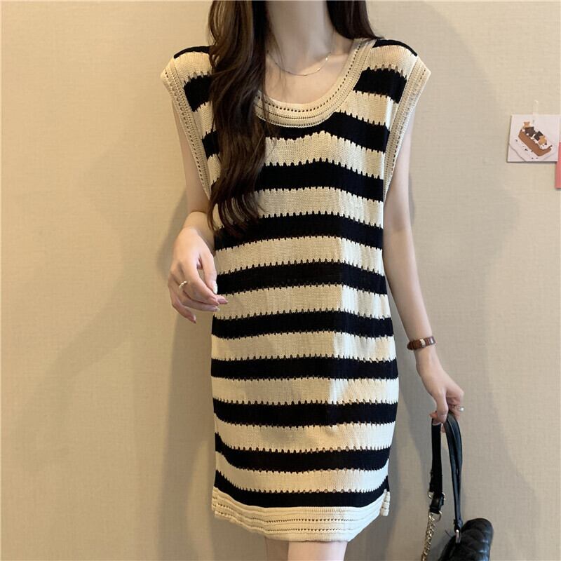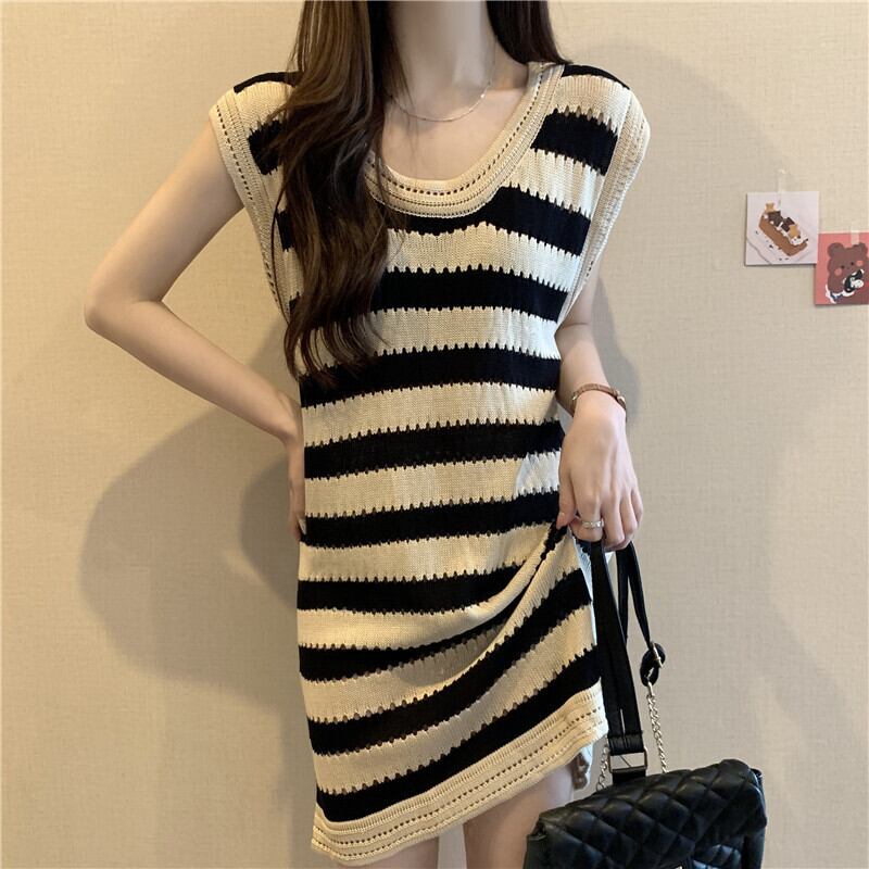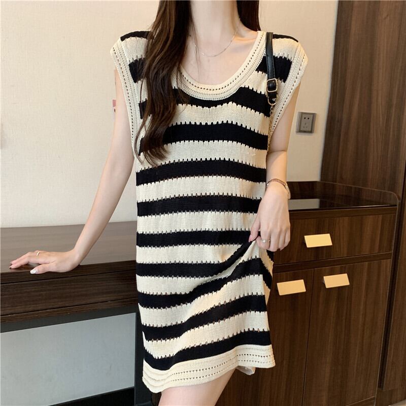 ノースリーブ ベスト ニット中空スモール ドレス女性の 2022 年夏新しいルーズ カジュアル t シャツ スカート サマー 夏物 Tシャツ 7460091058509215 | framboise21