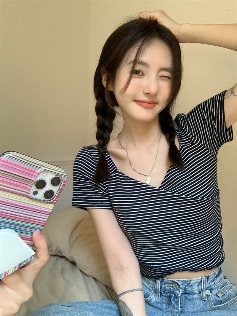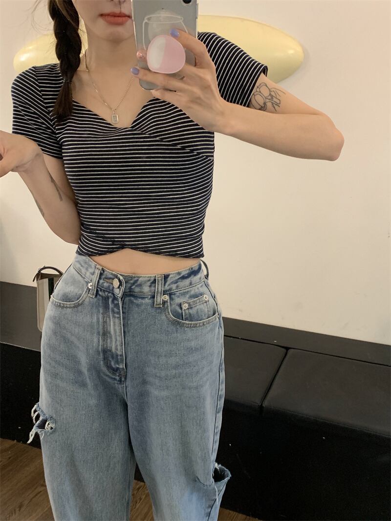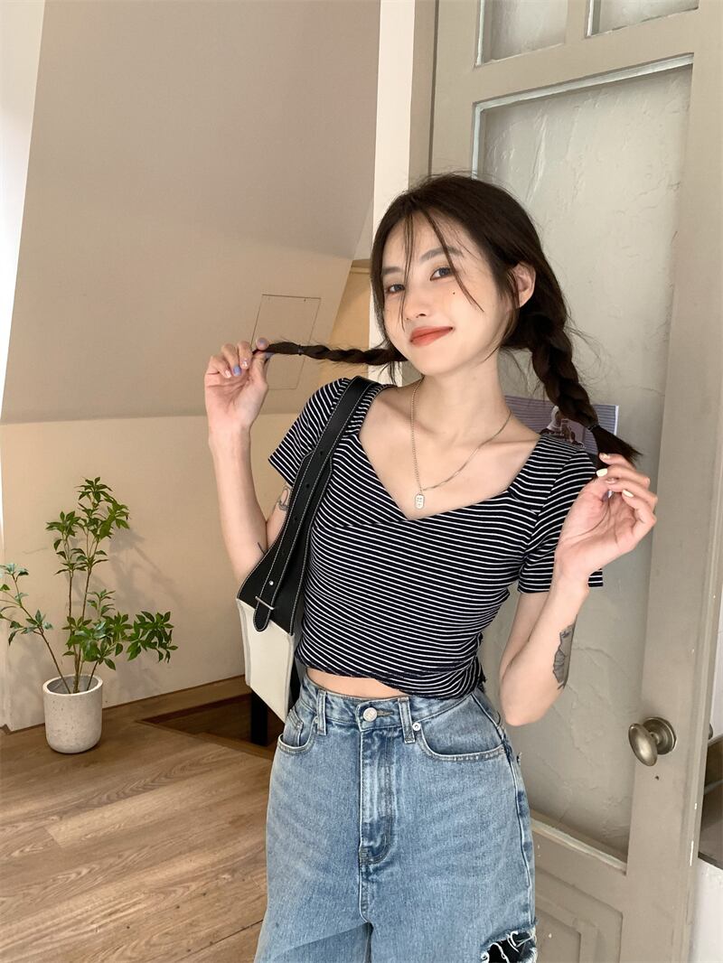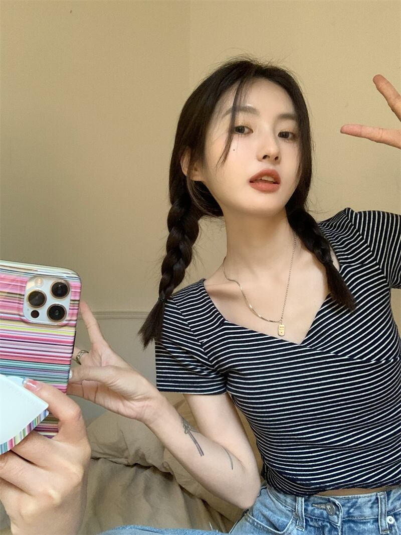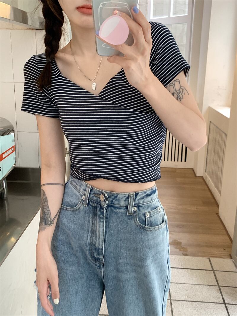 ホワイト Vネック フロントショルダー 半袖 Tシャツ レディース 夏 ハイウエスト ショート 甘辛 個性的 甘美 スモールトップ 夏 ハイウェスト 大人ガーリー スウィート キュート カジュアル サマー 夏物 7460017685544050 | framboise21
