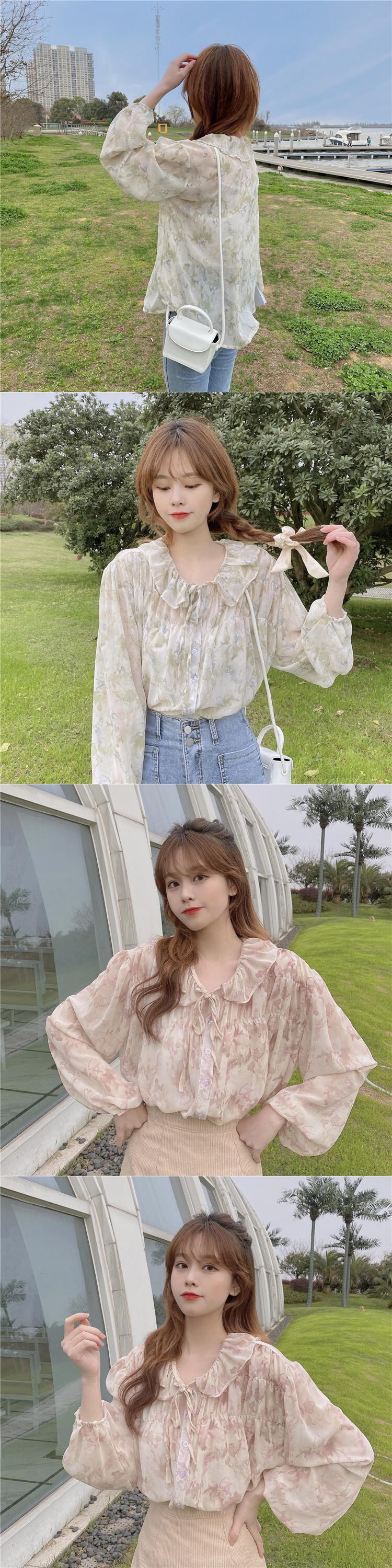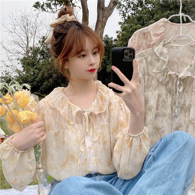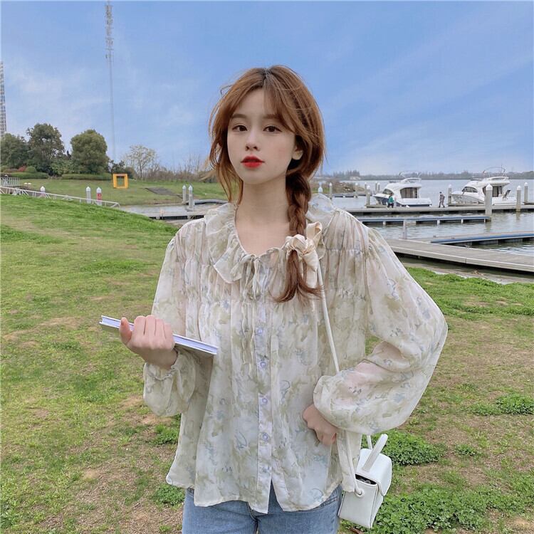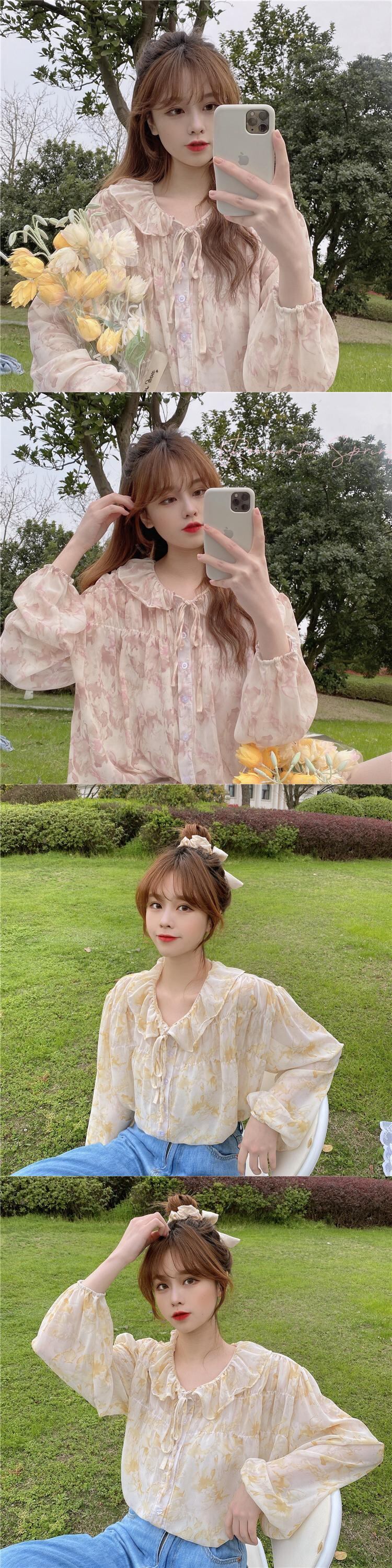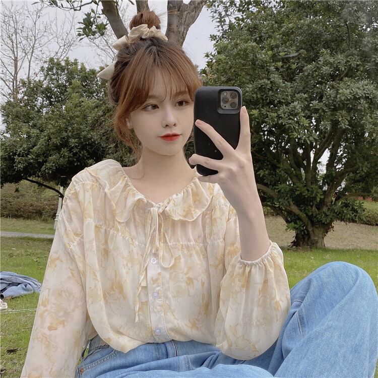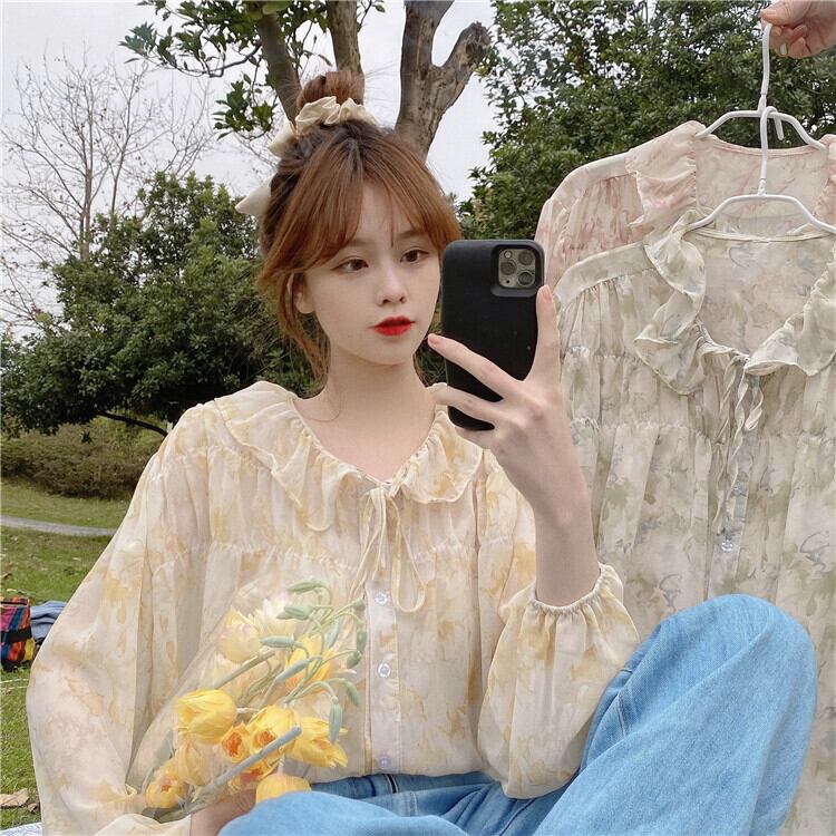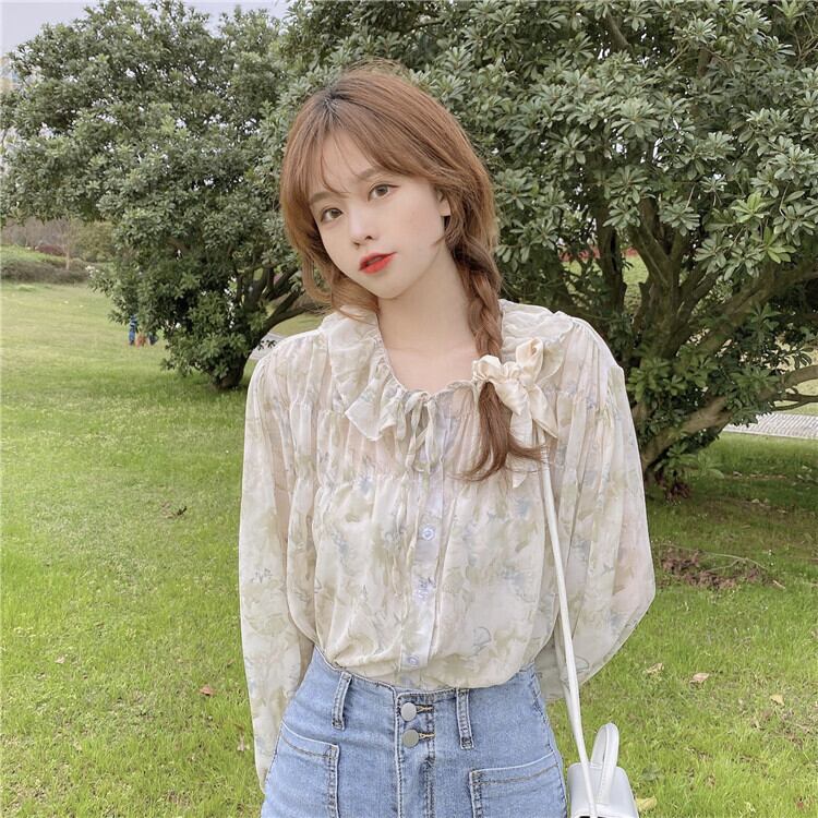 シフォンドールカラーシャツレディースハイエンドセンススモールドレープパフスリーブ日焼け止めシャツスモールフレッシュ&スウィートトップ 大人ガーリー キュート カジュアル 7460017560166543 | framboise21