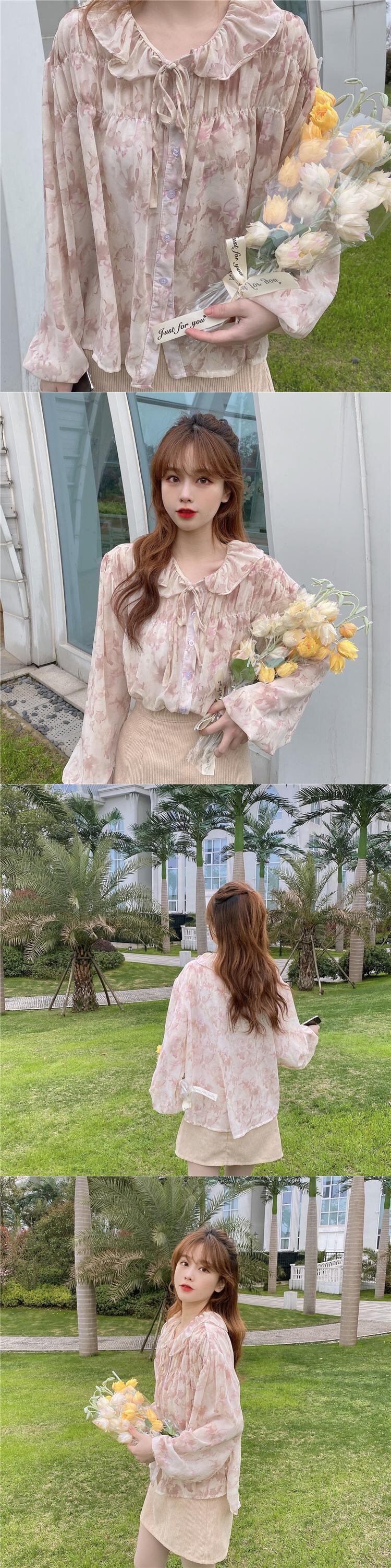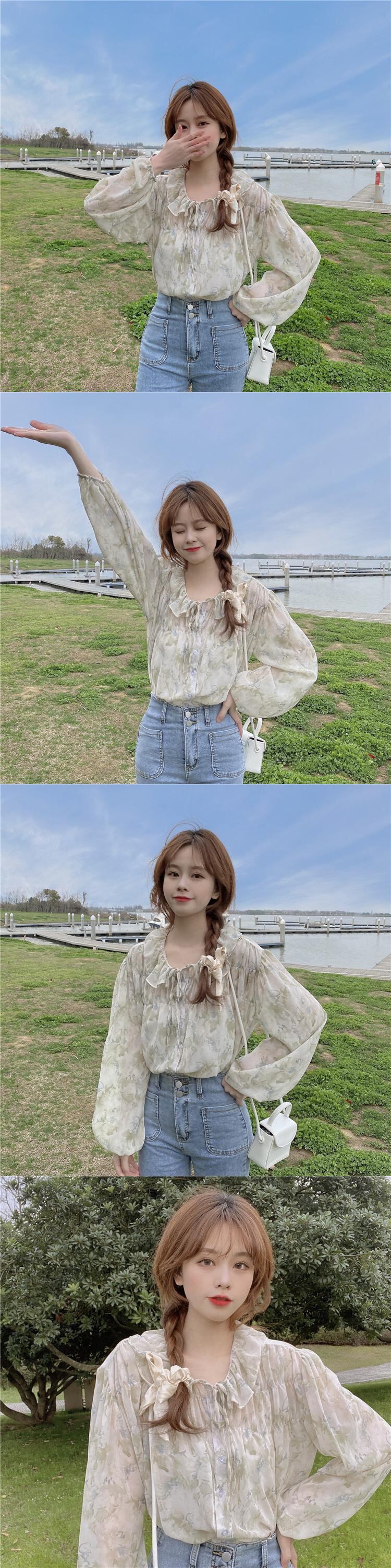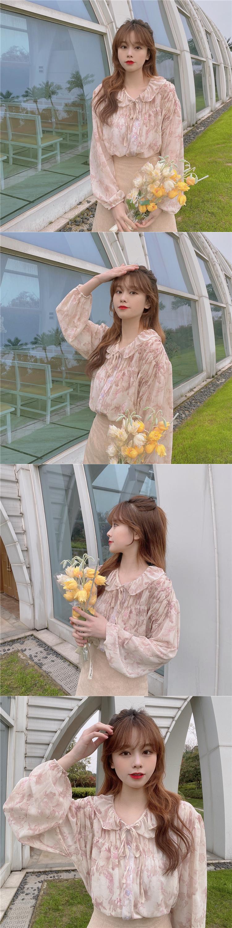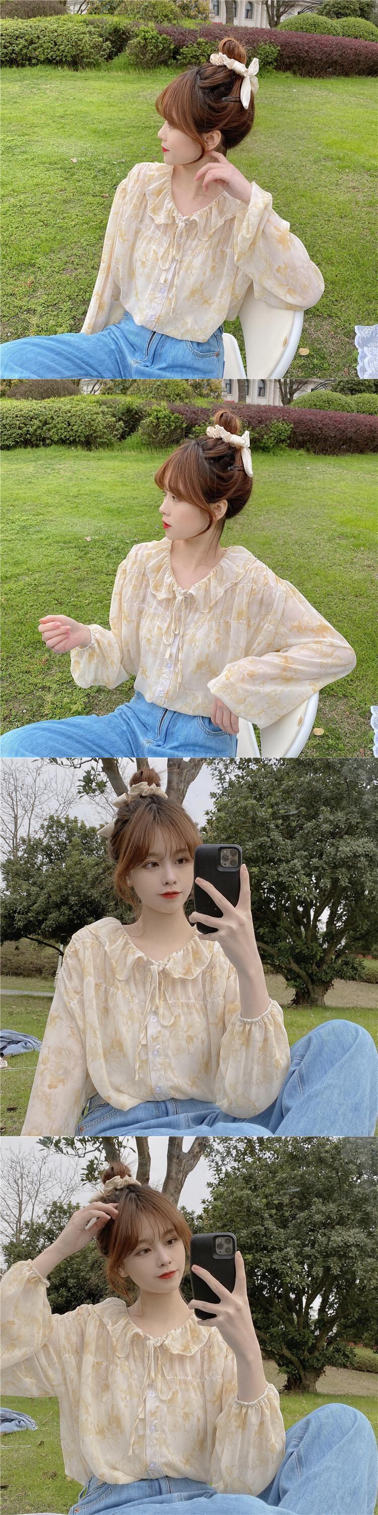 シフォンドールカラーシャツレディースハイエンドセンススモールドレープパフスリーブ日焼け止めシャツスモールフレッシュ&スウィートトップ 大人ガーリー キュート カジュアル 7460017560166543 | framboise21
