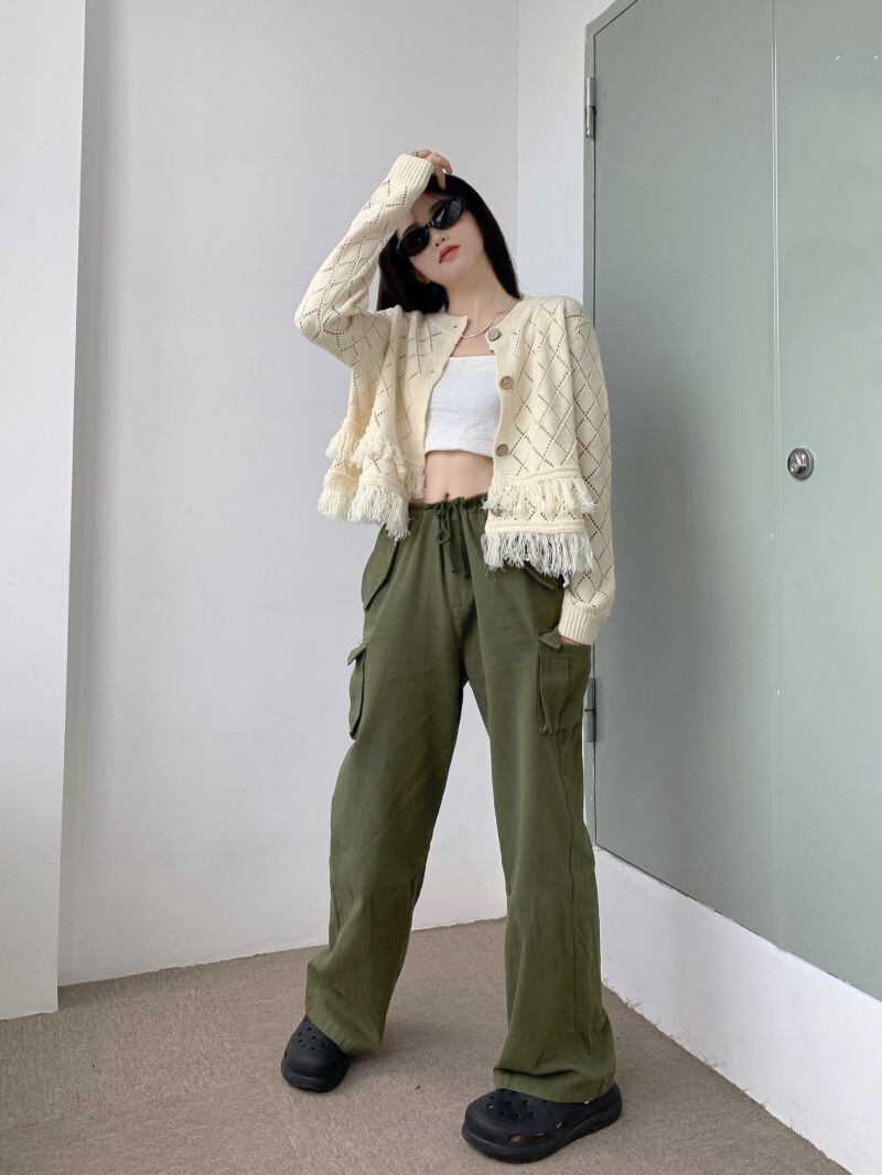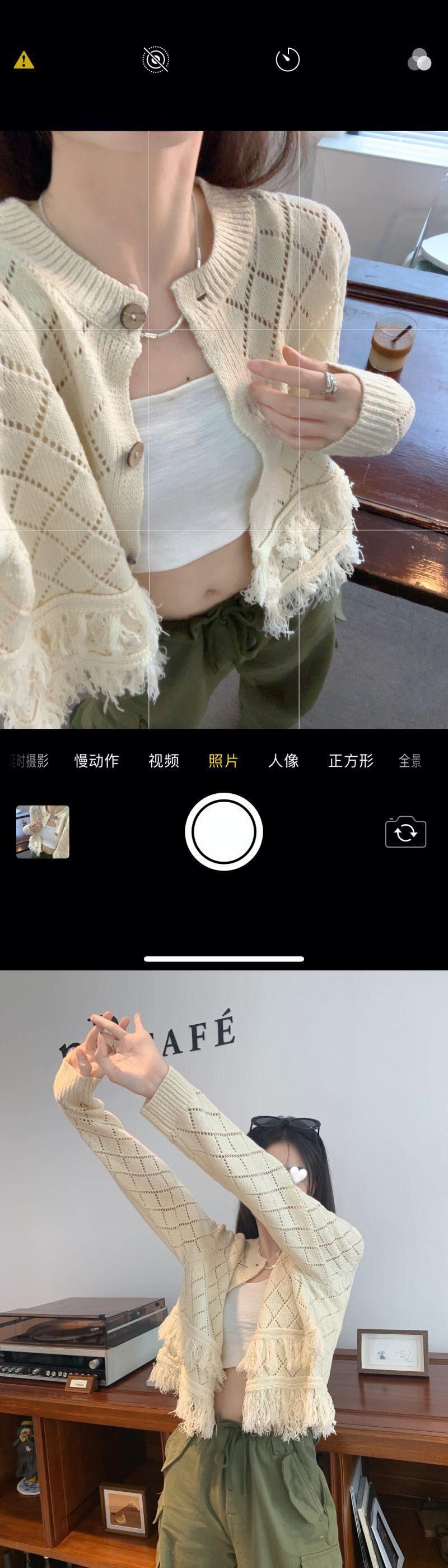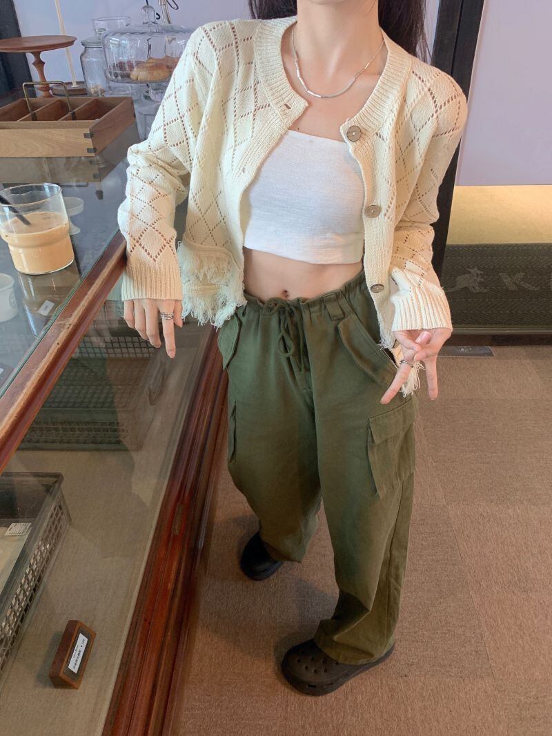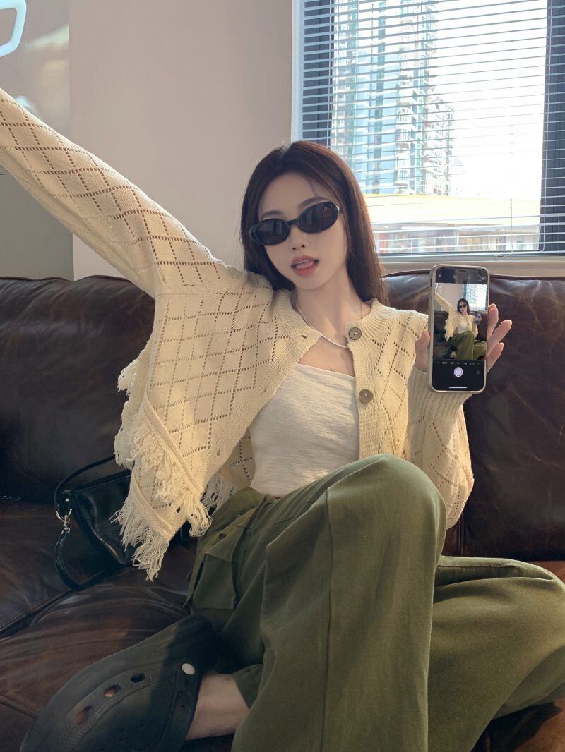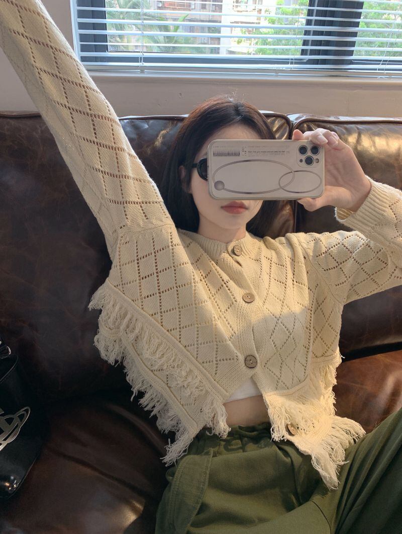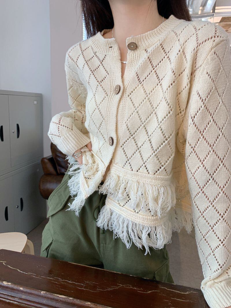 ニットセーターカーディガンレディース秋冬2022新作ルーズアウターウェア中空レイヤードフリンジコートショートトップ レッド オータム 秋物 ウィンター 冬物 746002010833413 | framboise21