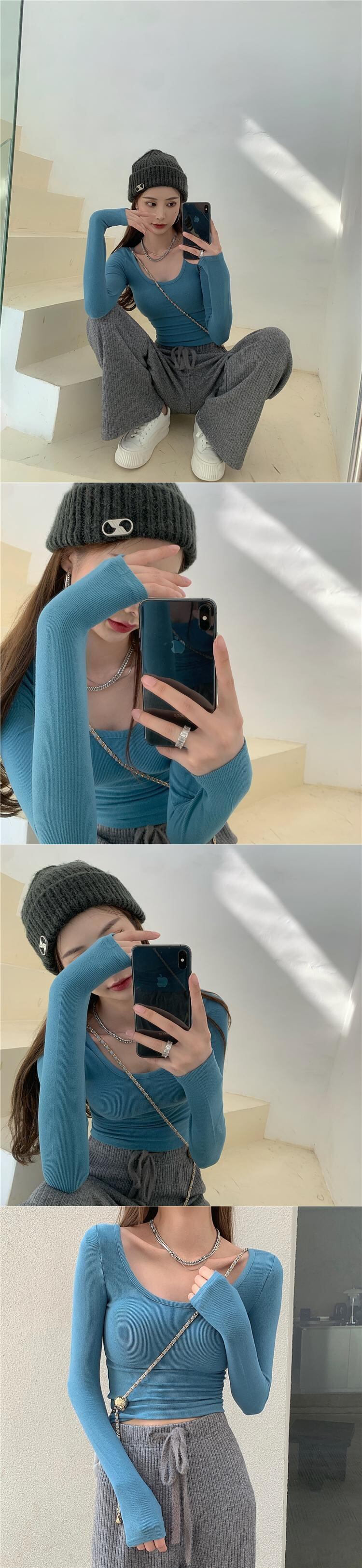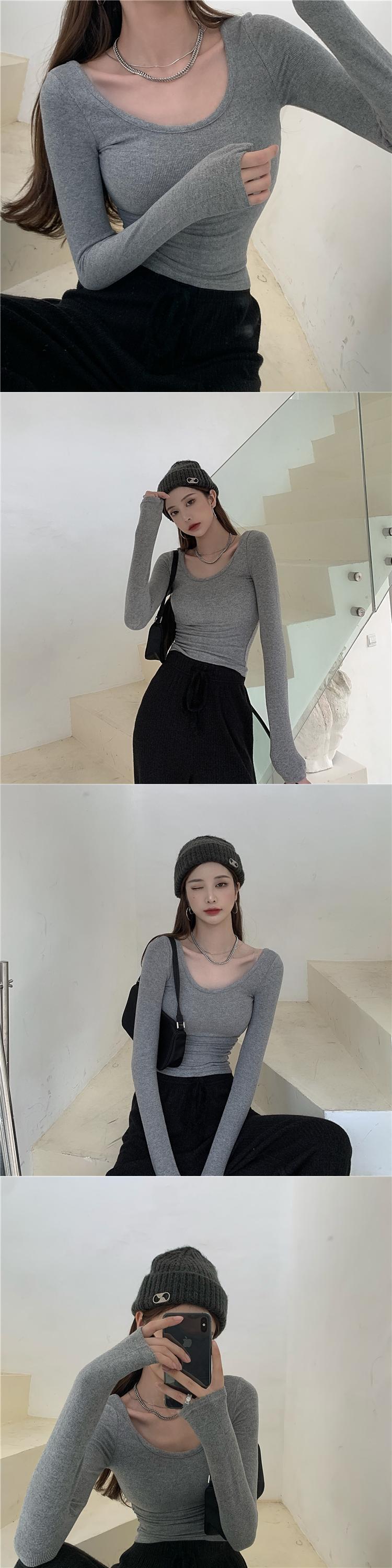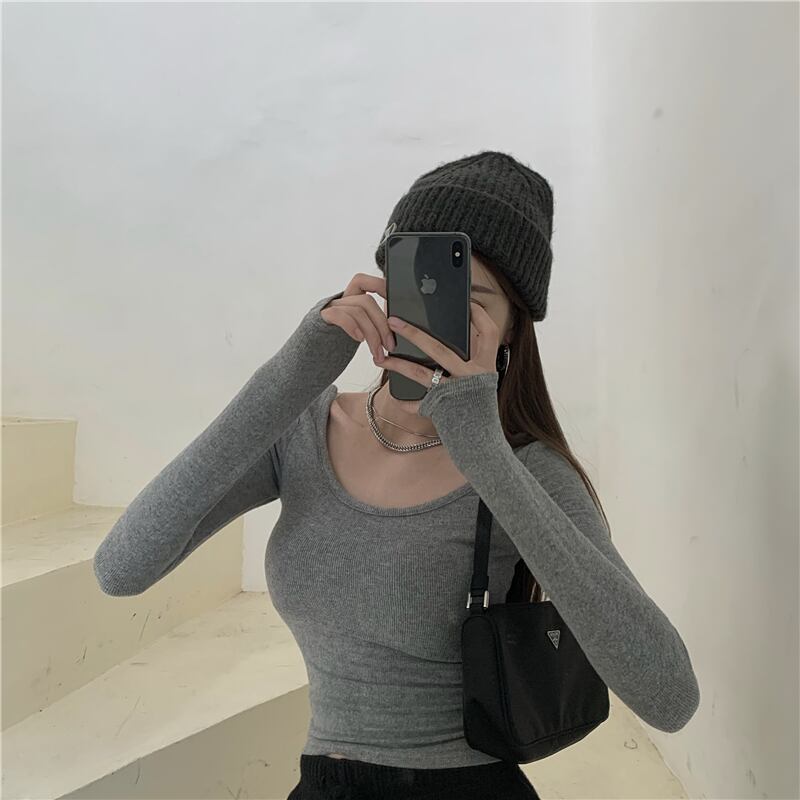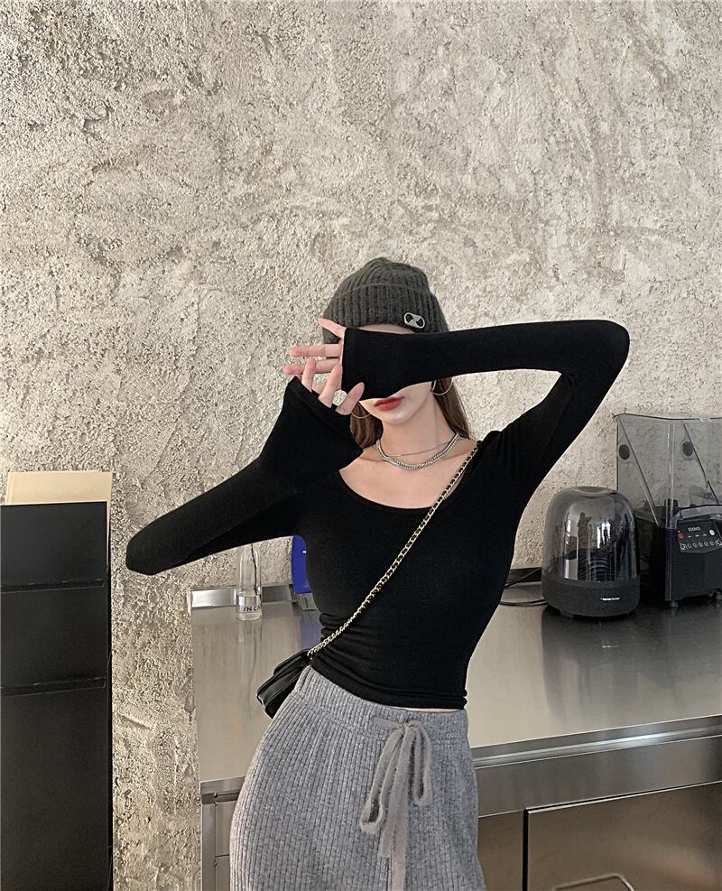 純粋な欲望ローネックボトムスシャツ女性のインナー自己修養 2022 初秋の新しいタイトフィット長袖 tシャツ eign スタイルトップ ロング オータム 秋物 7460045233679613 | framboise21