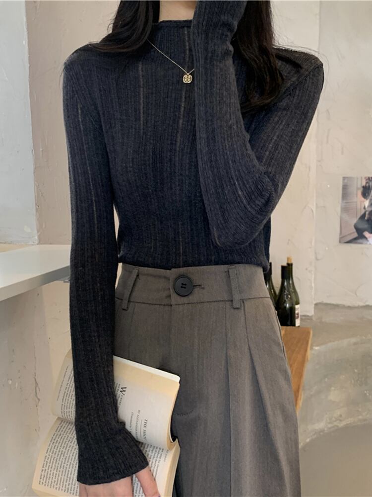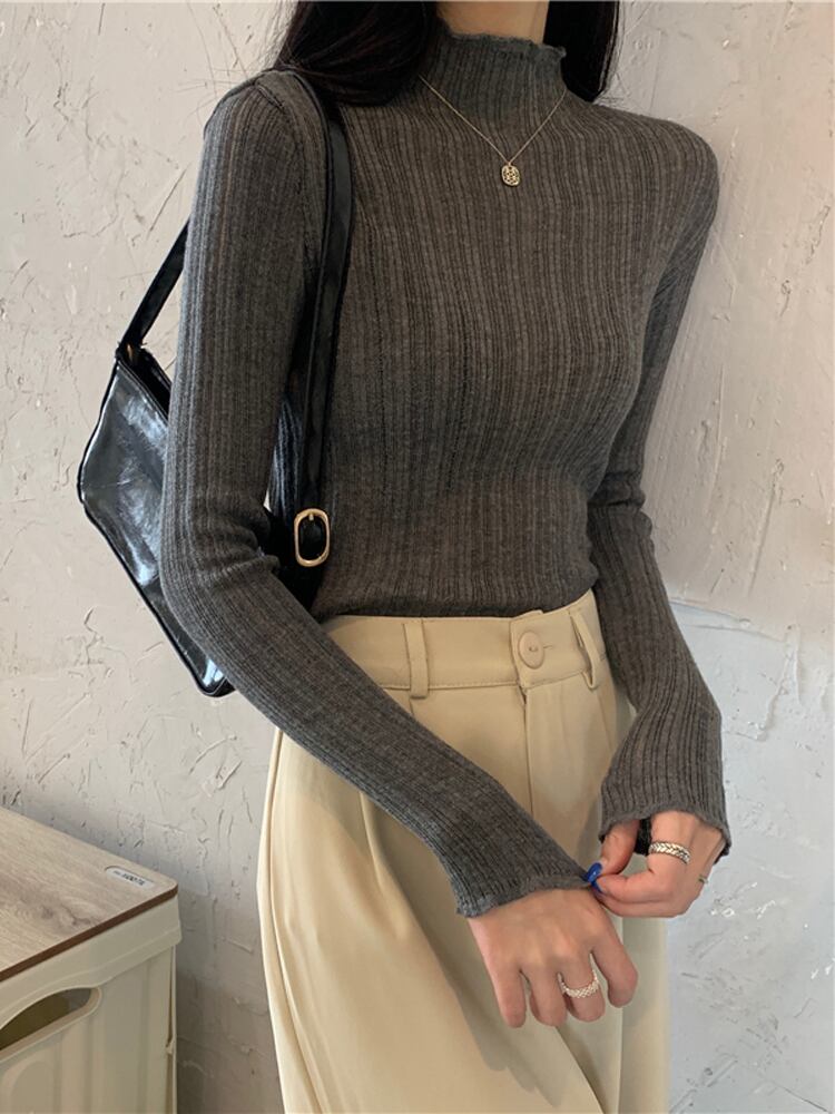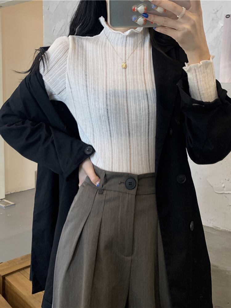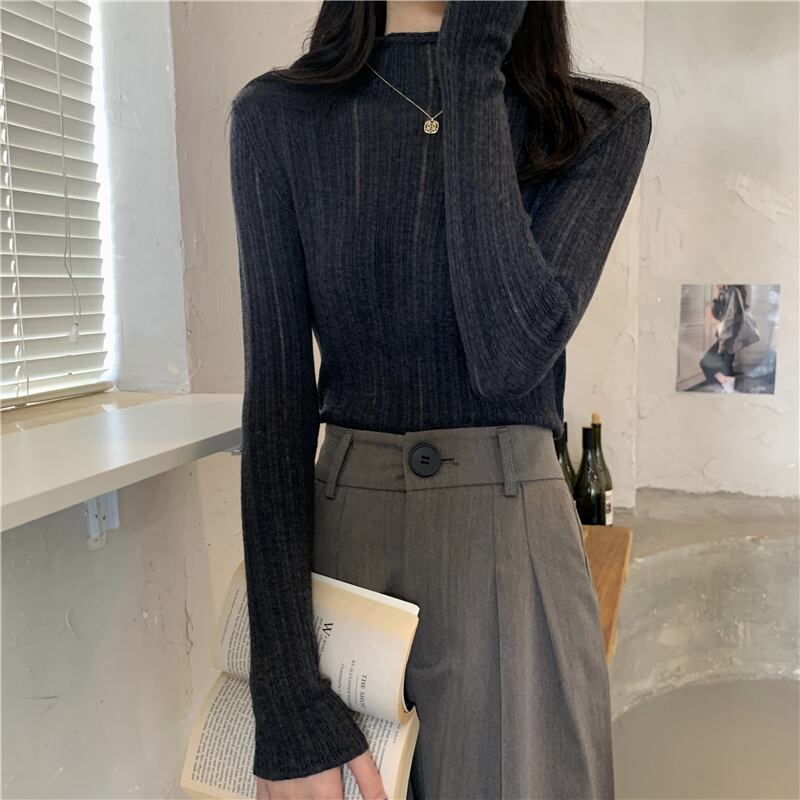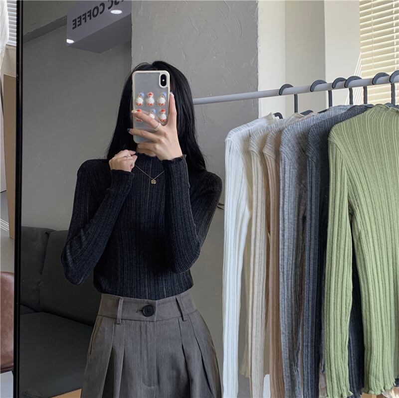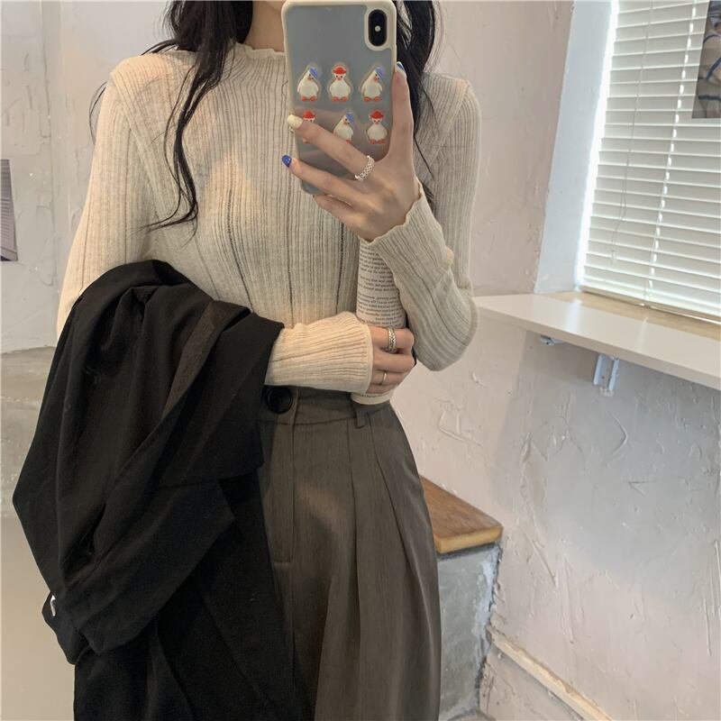 ハーフタートルネック ボトムス シャツ レディース 秋冬着 ニットセーター スリムスタイル ファッション オールマッチ ミッドネック 長袖 トップス アプリコット ロング オータム 秋物 ウィンター 冬物 7460094226160461 | framboise21