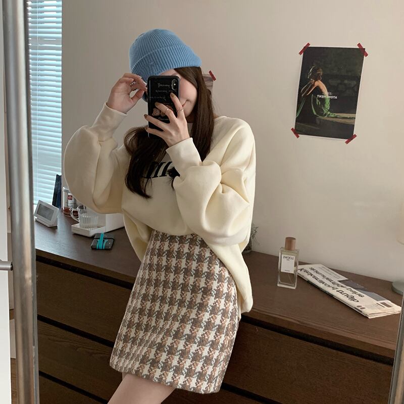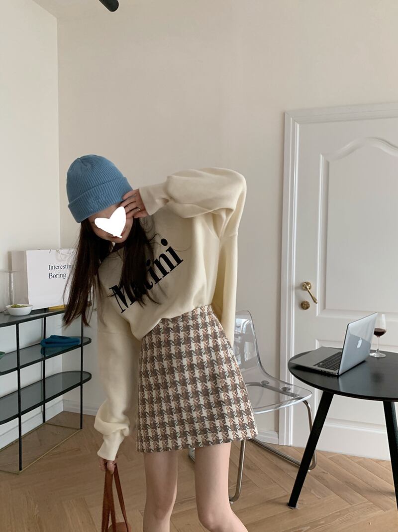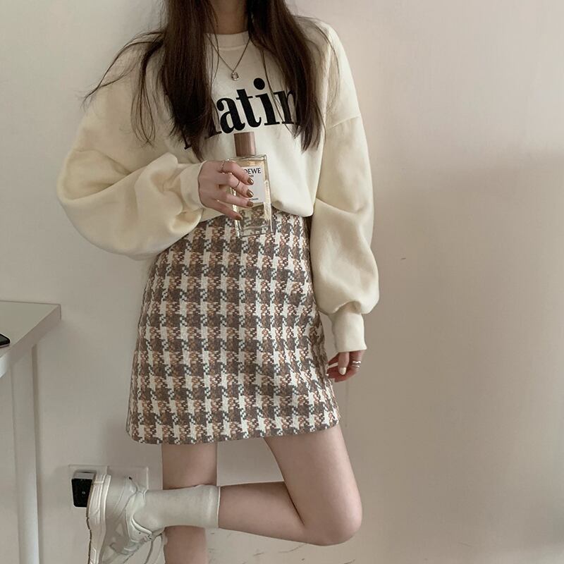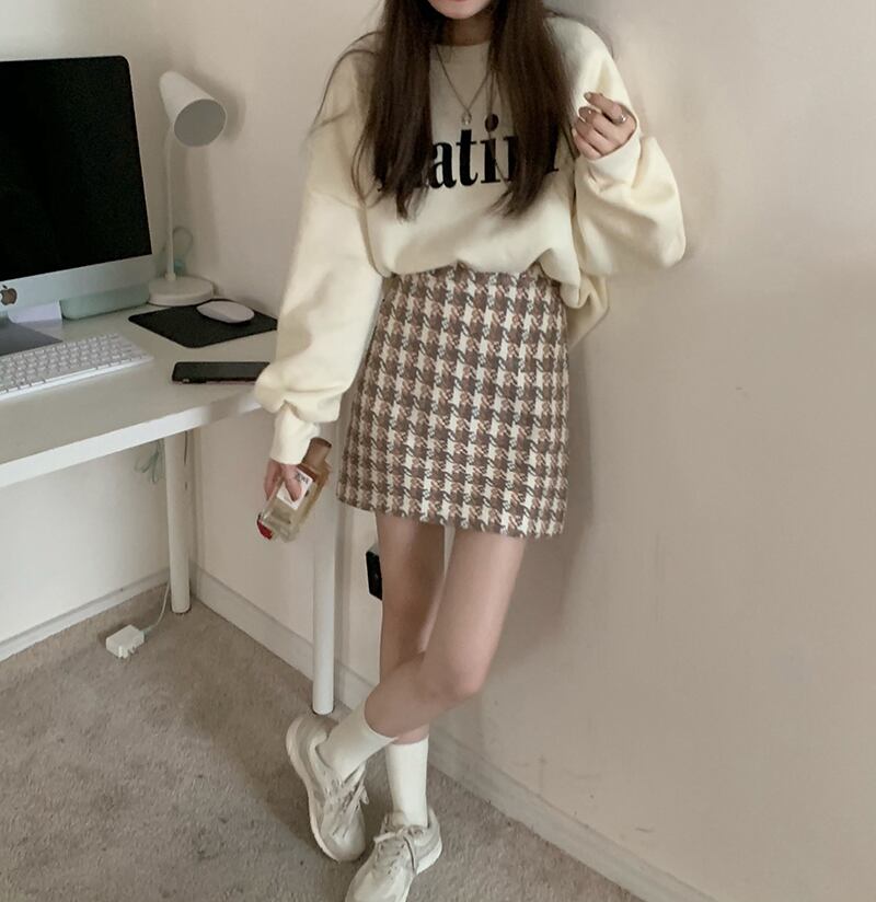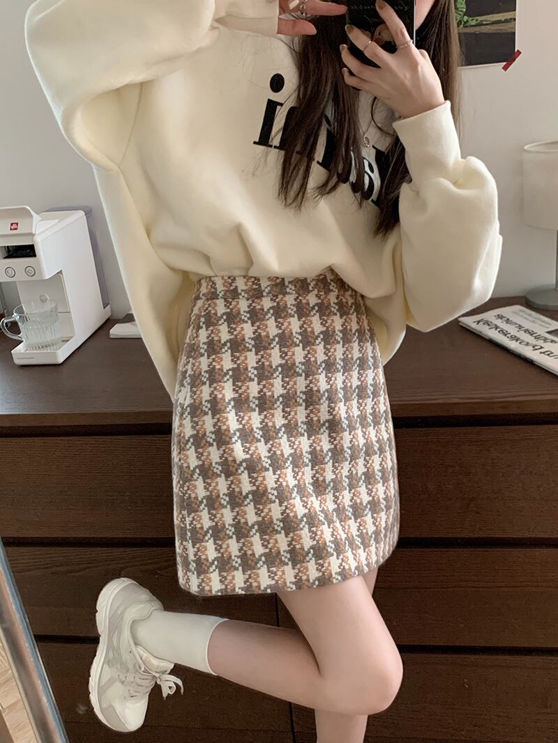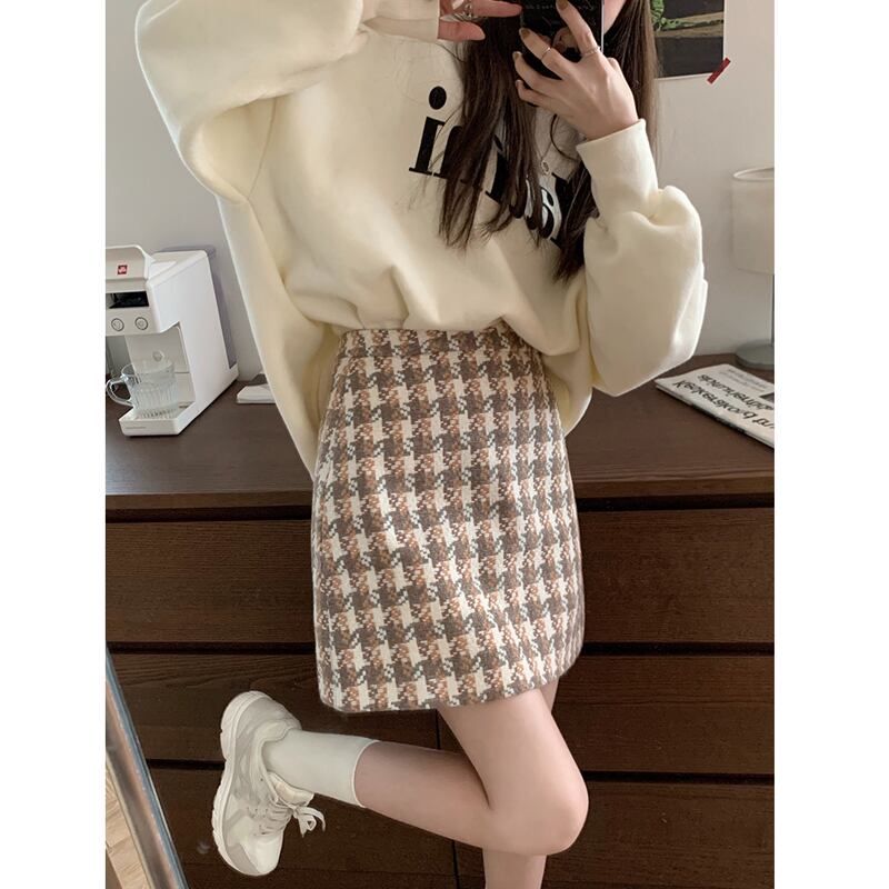 千鳥格子柄のウールのスカートの女性の秋と冬のパッケージ ヒップ A ライン ショート スカート セーター スカート冬小さな冬 オータム 秋物 ウィンター 冬物 Aライン 7460056650769559 | framboise21