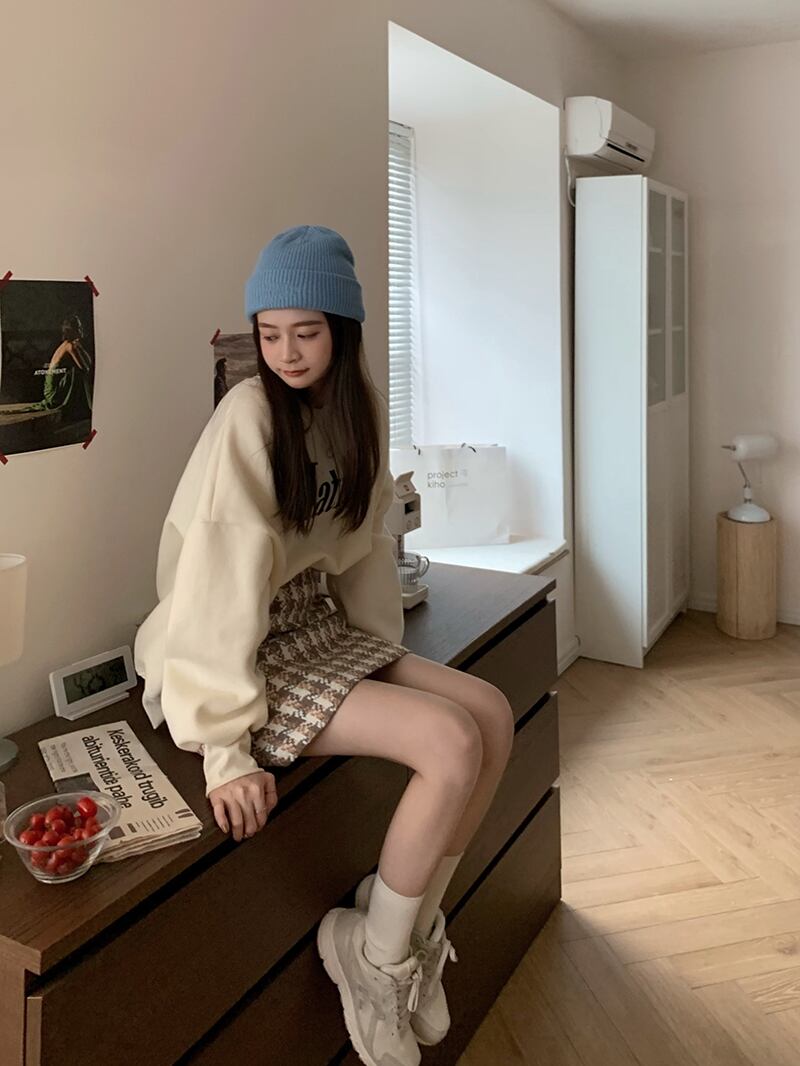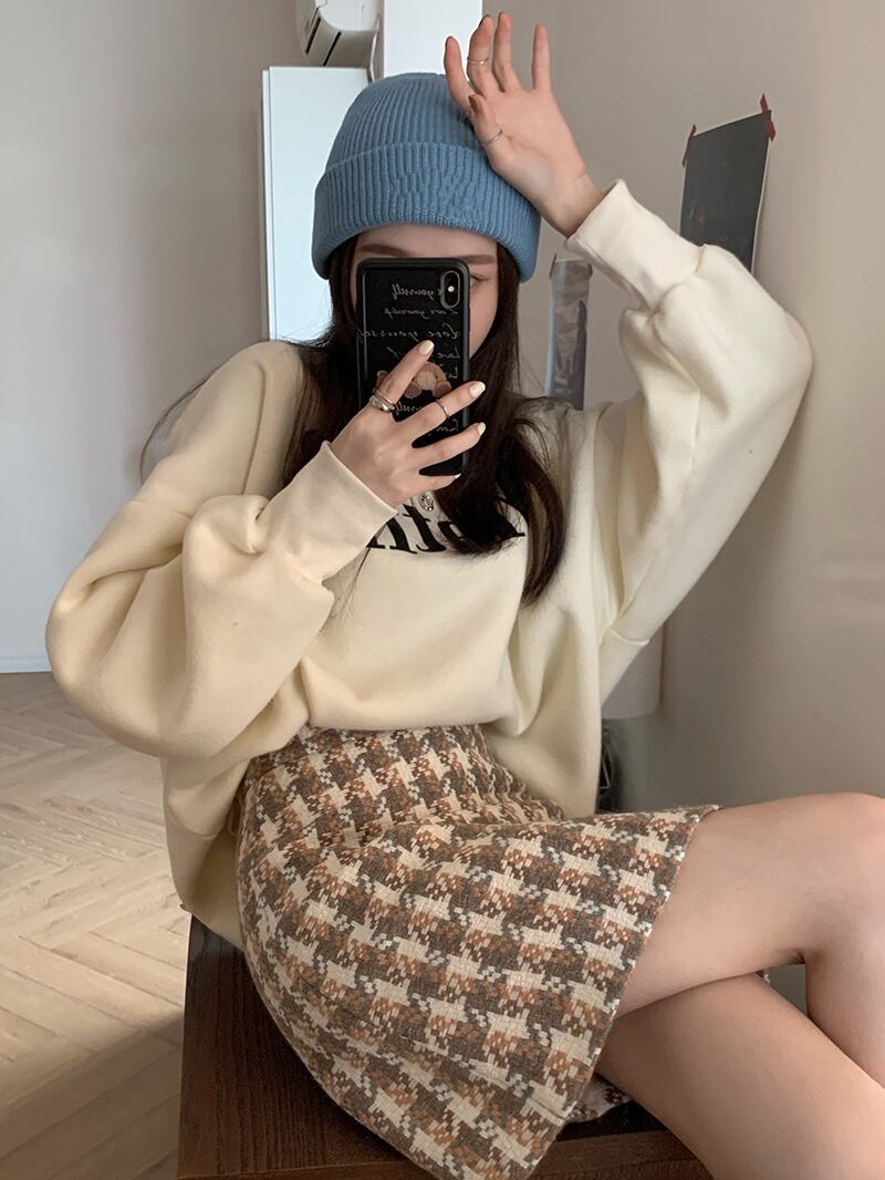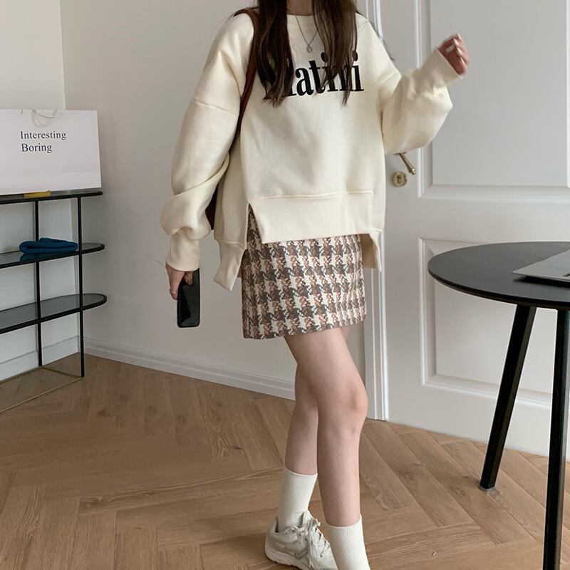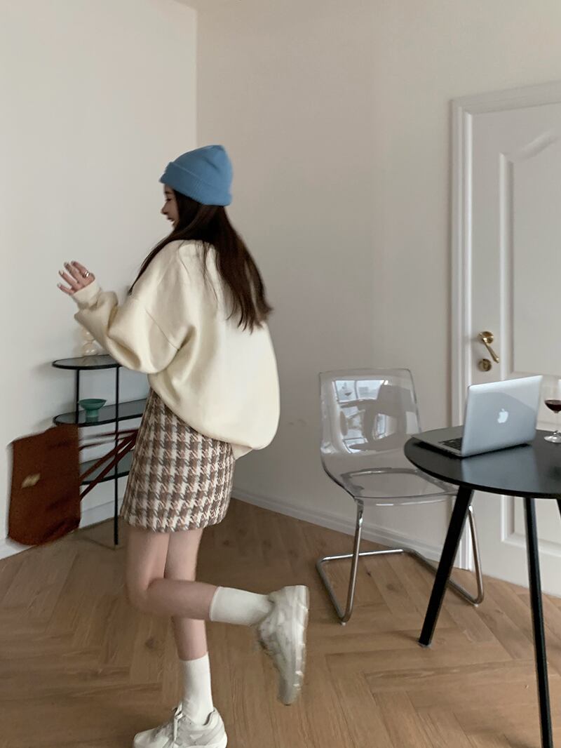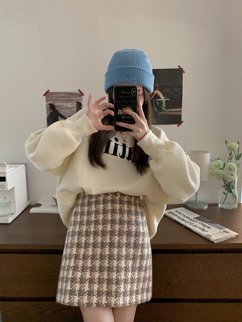 千鳥格子柄のウールのスカートの女性の秋と冬のパッケージ ヒップ A ライン ショート スカート セーター スカート冬小さな冬 オータム 秋物 ウィンター 冬物 Aライン 7460056650769559 | framboise21